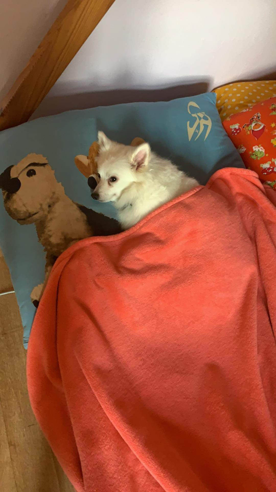 Mauglí je asi roční kříženec špice. Váží 5 kg. Mauglí je jeden z pejsků, které jsme odchytili v lese, kde se pár týdnů pohybovali. Mauglí je od první chvíle, kdy se vyndal ze sklopce, velmi tulivý, mazlivý, vděčný a kontaktní. Zkušenosti s člověkem má určitě špatné, při manipulaci se moc bojí, počůrává se, krčí, někdy hystericky štěká a kňučí strachy a čeká co bude. Ale zároveň chce být se svým člověkem, mazlit se, chovat a být milovaný. Rychle pochopil, že na vodítku a na procházce je to moc fajn a už to zvládá na jedničku. Také se snaží být čistotný. Mauglí může být jako jedináček, kontakt se psy příliš nevyžaduje. Chce hlavně svého páníčka. S domácími psy je přátelský, svého malého bratříčka ale peskuje velmi často. Když zůstane sám je potichu – vyhovuje mu malý a uzavřený prostor, z otevřeného domu šílí, neví coby, vyvádí, po všem skáče, shazuje věci, naráží do oken. Od člověka se nechá uklidnit. Mauglí je pravděpodobně z klecové množírny, se svým bratrem tráví celé hodiny zcela dobrovolně v otevřené kleci a jsou takto spokojení. Potřebuje čas, aby si navykl na běžný život, ale se správným, trpělivým páníčkem to jistě velmi rychle zvládne.