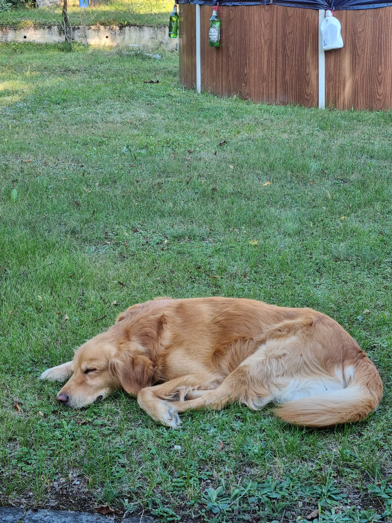 Slippy je asi 5 letý kříženec, zmenšenina zlatého retrívra – výškou dosahuje ke kolenům. Váží asi 18 kg, ale je velmi pohublý. Slippy je pes, který vyjde s každým. Je zvyklý na přítomnost psů a v novém domově by to jistě ocenil. Hezky chodí na vodítku, ale ani na volno nemá tendence se vzdalovat, naopak si velmi dobře hlídá pána, aby se mu někam neztratil. Ke člověku je hodný, velmi mazlivý a poslušný. Bude dobrým parťákem jak pro mladou rodinu s dětmi, tak třeba i pro seniory. Do bytu nebo do domečku s přístupem dovnitř.