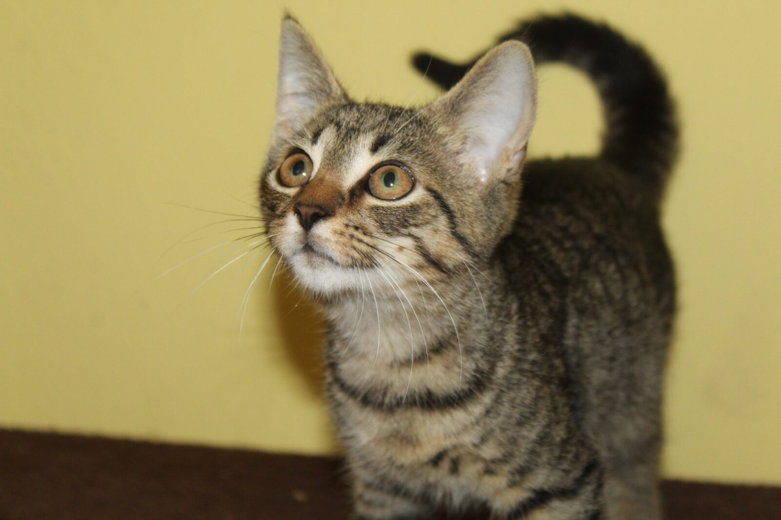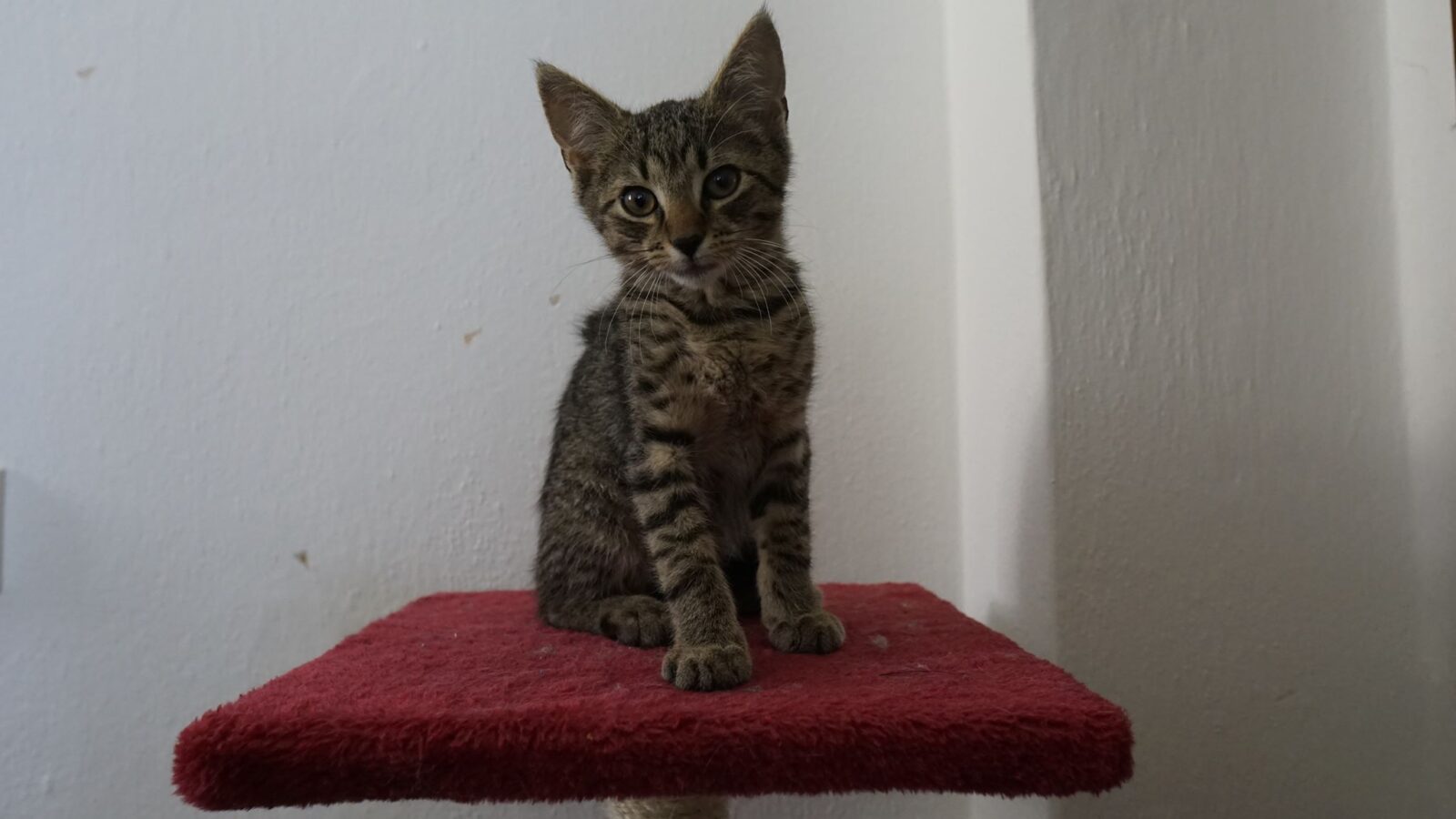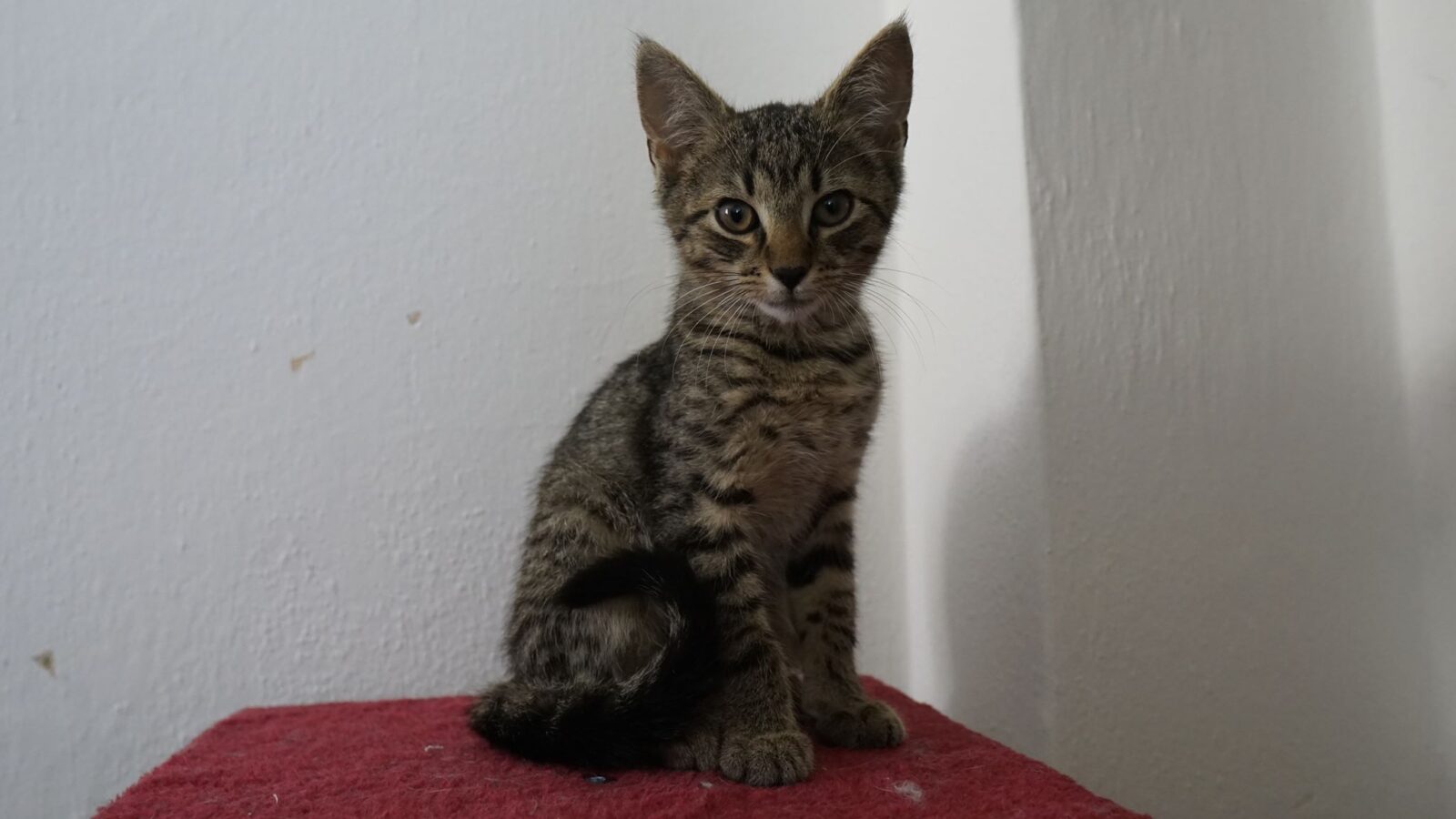 Žulík je 2,5 měsíční kocourek. Dostal se k nám před krátkou dobou s kočičkou Želvičkou, kdy byl nalezen ve Strměchách. I Žulík se ze začátku velmi bál, ale po pár dnech již hlasitě vrněl, jen co uviděl člověka. Je vymazlený, zvyklý doma, naučený na kočičí záchod.