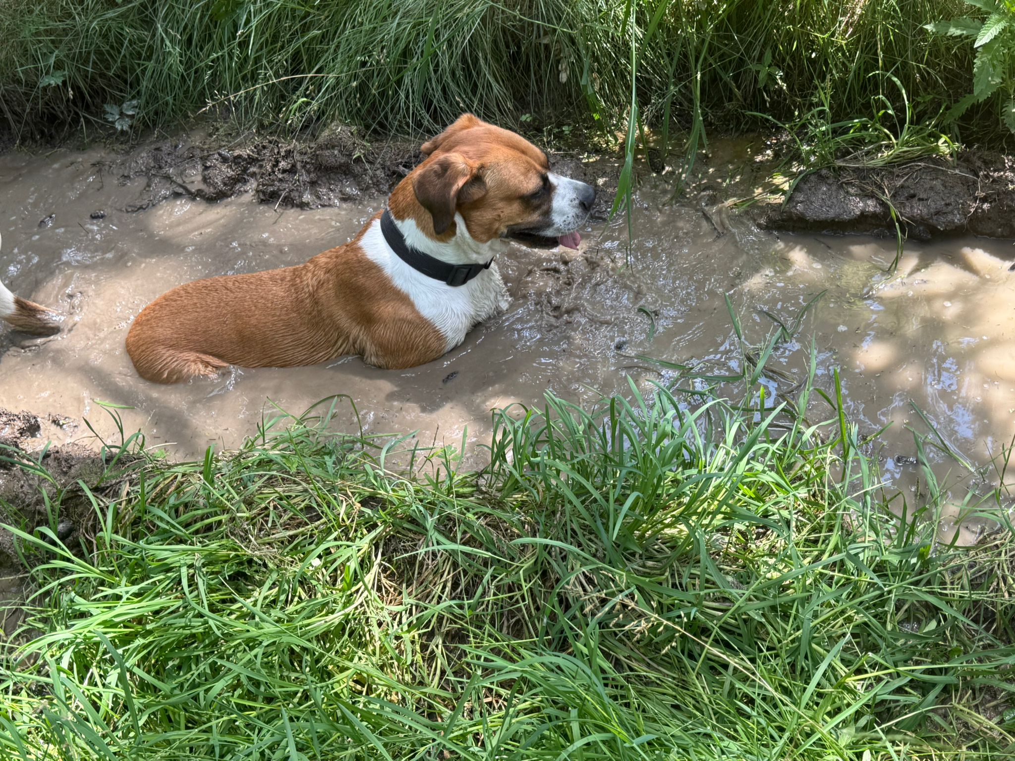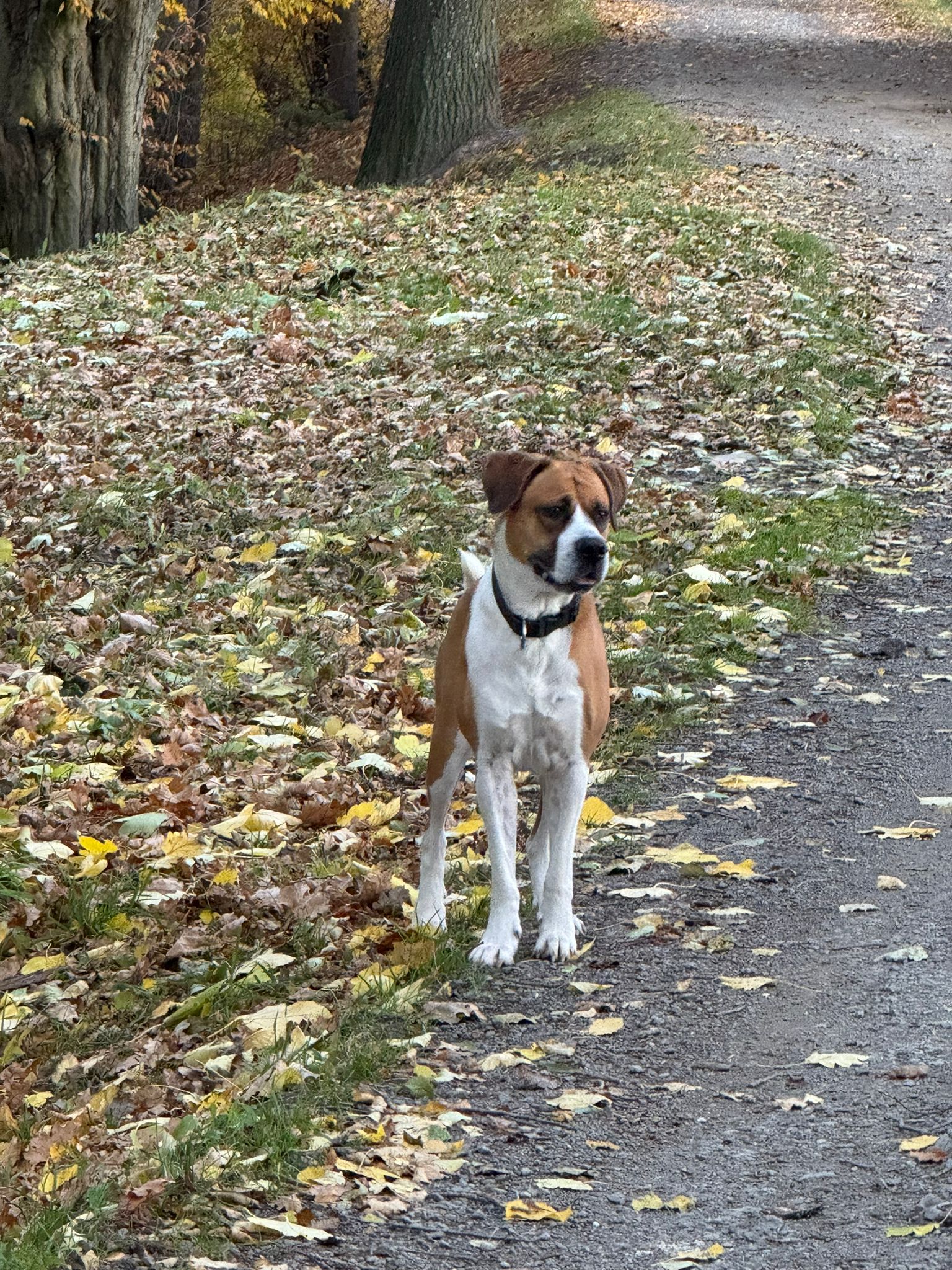Any je asi půlroční kříženka, pravděpodobně bulla a pastevce. Aktuálně váží 19 kg, v dospělosti bude většího vzrůstu. Dostala se k nám jako nalezenec z Jihlavy, kde se několik týdnů toulala. Byla odchycená do sklopce. Zpočátku byla Any velmi plachá, neznala manipulaci, mazlení ani vodítko. Všeho se bála a vše se musela postupně naučit. Any je nyní veselá, aktivní a přátelská. Na vodítku chodí velmi způsobně. Stále v ní přetrvává plachost, ale velice se zlepšila a je na čase, aby odjela do nového domova, kde se jí budou noví majitelé hodně věnovat. Bez problému se snese s jinými psy, malá zvířata neloví, u nás vychází i s kočičkami, drůbeží, kozami. Vhodná i k dětem, vzhledem k její velikosti a časové náročnosti však doporučujeme pouze ke starším. Any hledá domov, kde se jí budou opravdu věnovat, dopřejí ji výcvik, dostatek pohybu, pozornosti, lásky, kvalitního papání a nenechají ji růst jako kůl v plotě. Any půjde do nového domova s podmínkou kastrace a nové majitele budeme velmi pečlivě vybírat.