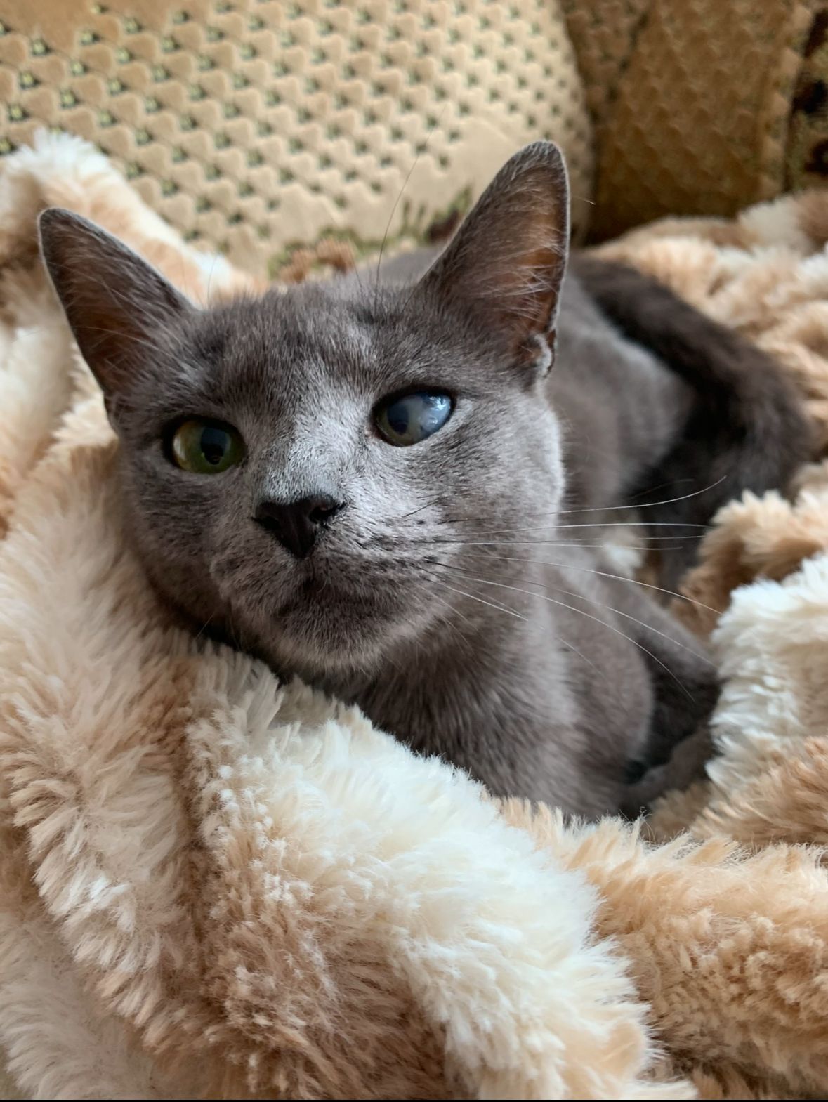 Blunda je koťátko narozeno v květnu 2020. Byla k nám přijata koncem června se svou maminkou Blůďou a se svými sestrami Blankou a Blaženkou. Blunda je mazlivá a přátelská kočička, ráda dovádí se svými sestrami. Baští granulky, je hravá a čistotná, chodí na kočičí záchůdek. Bohužel má po prodělané herpes viróze nemocné jedno oko (mažeme mastičkou), dle veterináře je zde velká šance, že bude po léčbě zcela v pořádku a nebude trvale poškozené. Hledá domov uvnitř, v klidných lokalitách možno s přístupem ven. Podmínkou adopce je kastrace.