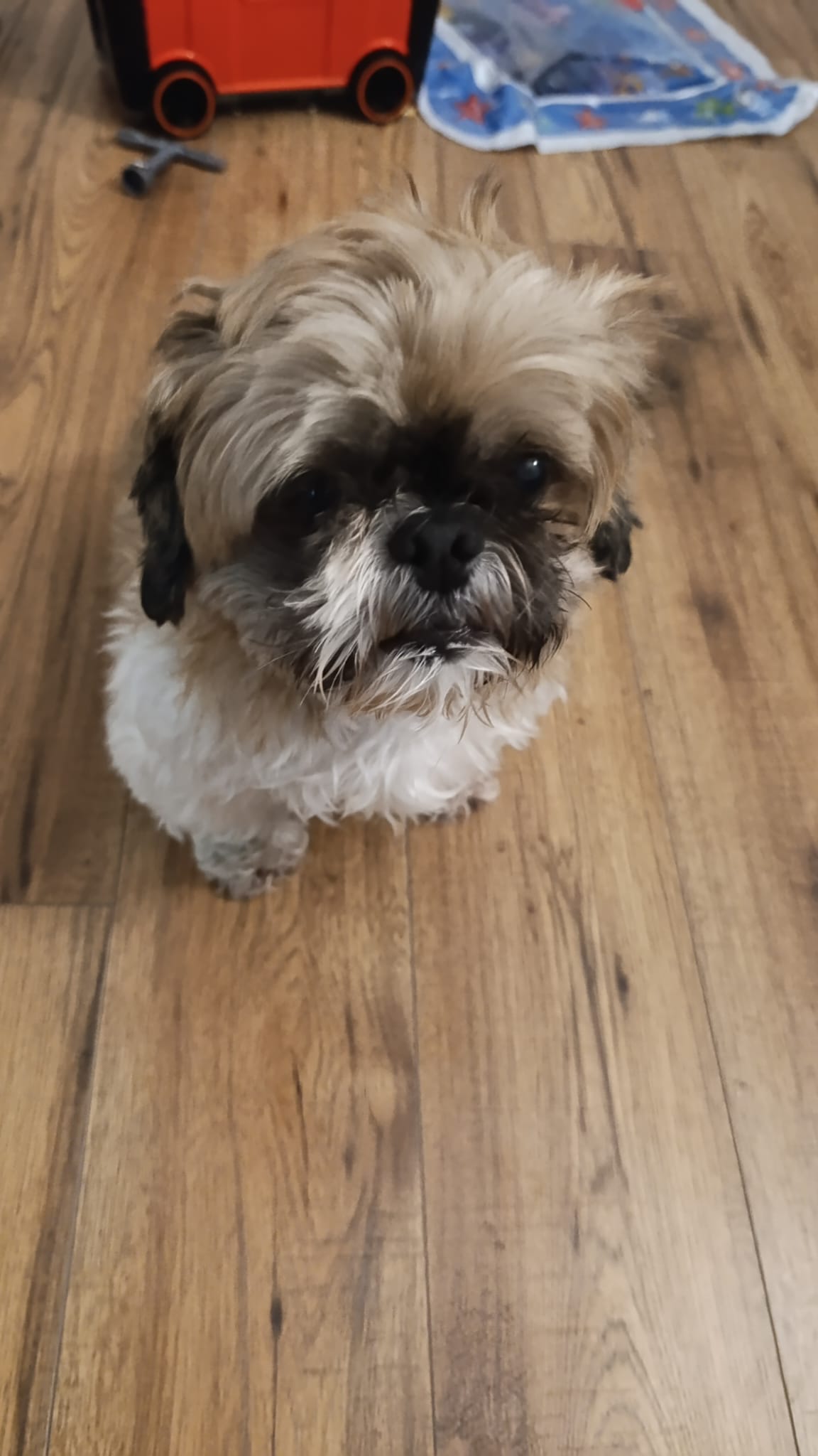 Čip je 4 letý kříženec shih-tzu. Váží cca 4 kg a měří 20 cm v kohoutku. Čip se k nám dostal jako nalezenec – byl přijat velmi zanedbaný, se zánětem v očích, srst v hrozném stavu, bojácný, neznajíc vodítko. Vzhledem k jeho psychickému i fyzickému stavu je možné, že pochází z množírny. Momentálně se u nás dává pomalu do pořádku. Co se týče psů, snese pouze feny, na jiné psy má tendenci vyjíždět. Vodítko zatím nezvládá. Nemá hygienické návyky, nezvládá samotu. Je potřeba jej vše s trpělivostí naučit. Čipa čeká další návštěva veterináře a psího salónu, aby se mu ulevilo a byl za fešáka…