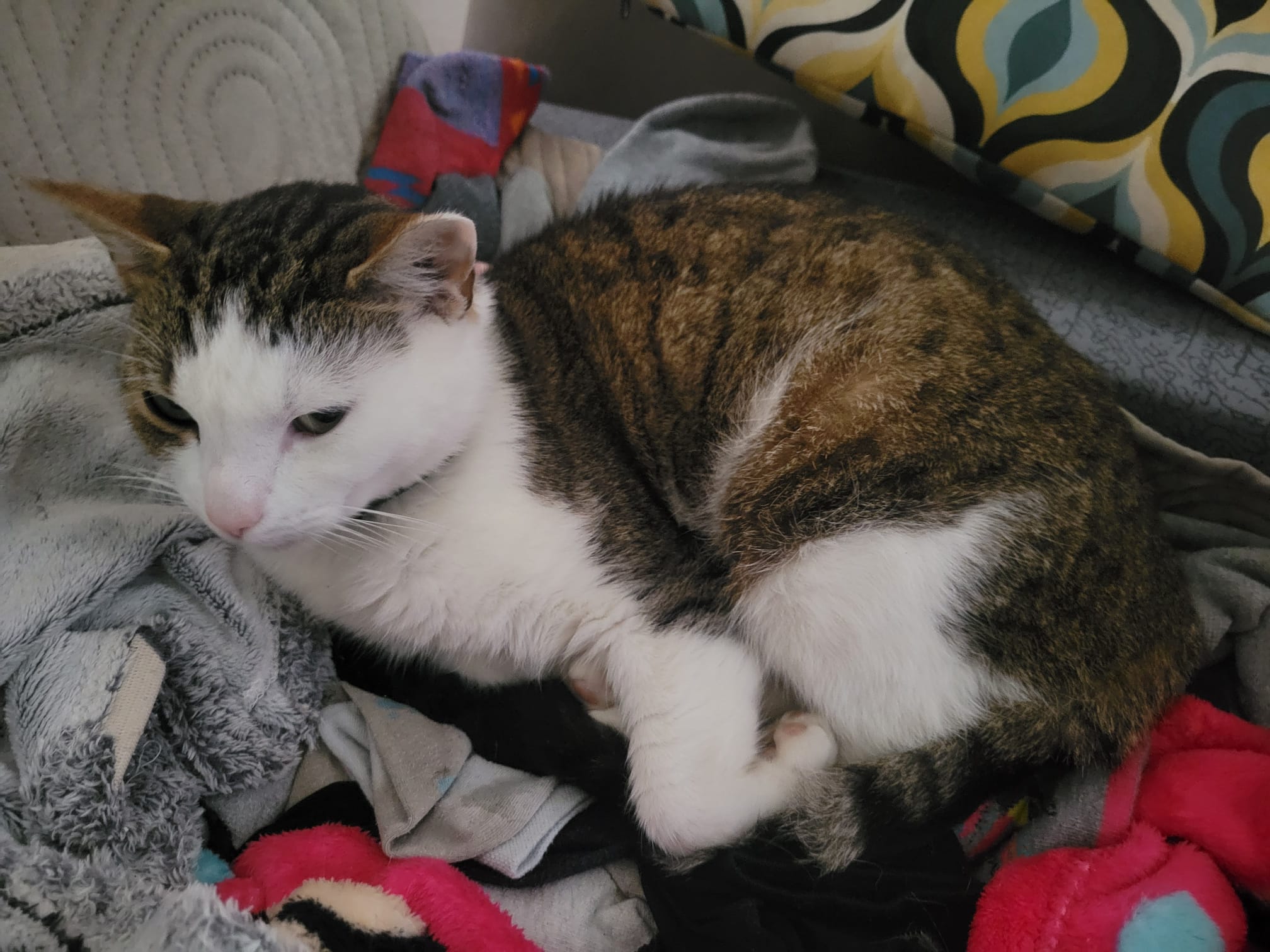 Eliot našel nový domov v Boreči, kde mu říkají Mikeš. Je to prý největší mazel a každý večer usíná s paničkou. Panička nám píše: Nejradši spí zalezlý v dekách, případně čerstvě vypraném prádle… 😊 Je to miláček a nejlíp vychovaný ze všech, co tu máme.