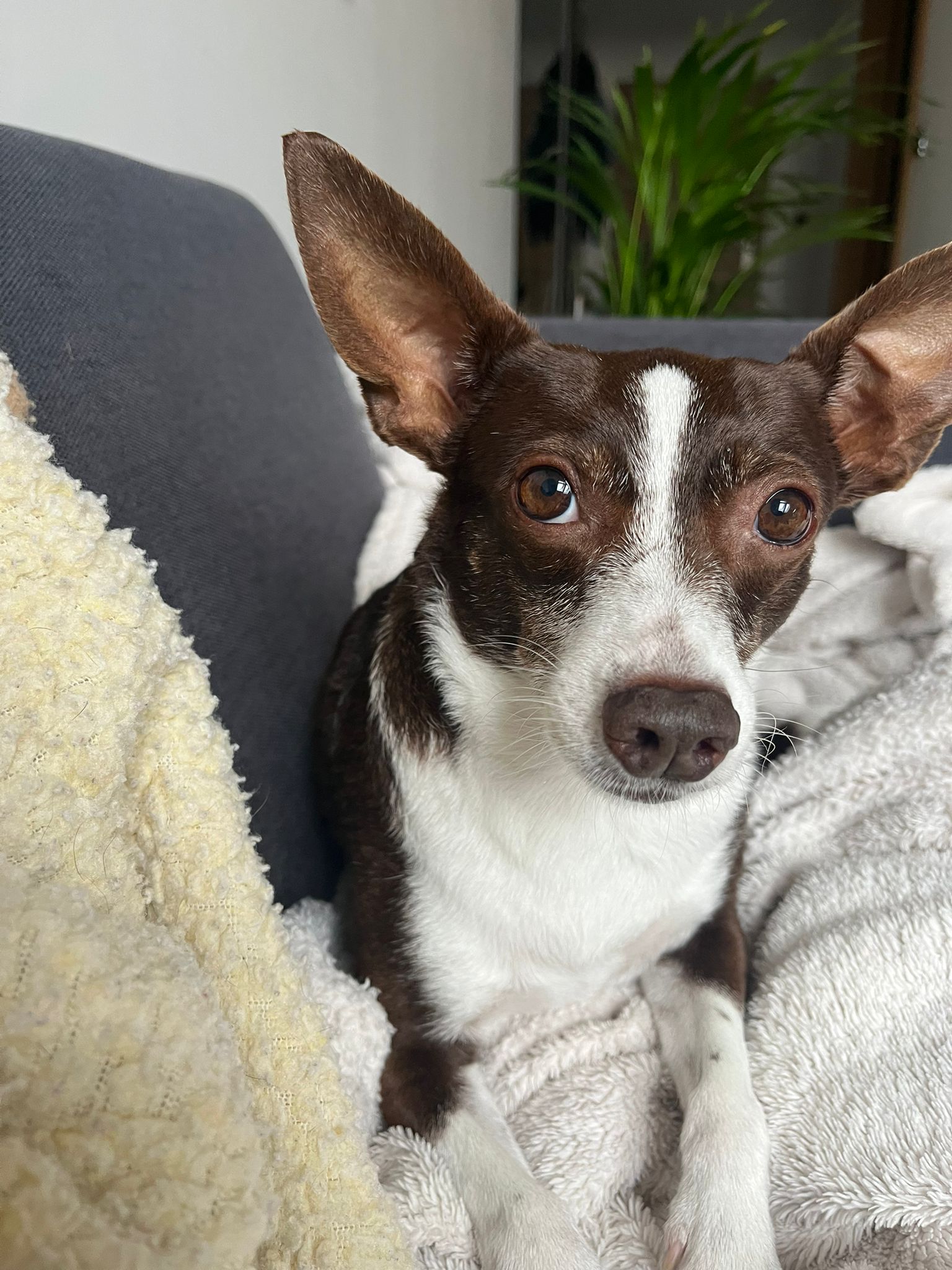 Jumika je asi tříletá fenka, váží 4 kg. V předcích má původně údajně rasu podenco. Jumička k nám přišla z přemnožené smečky, která si žila vlastním životem v jedné obci, kde nás požádali o jejich přijetí. Jumika byla z celé smečky nejvíce plachá a bojácná. Velmi dlouho jí trvalo, než překonala svoje největší strachy a nechala k sobě přiblížit člověka. Nyní je z nejhoršího venku, ale stále se bojí různých situací a manipulací. Při některých situacích může vrčet, ohánět se a také ji ze strachu povolují svěrače a močí a kálí. Těchto situací ubývá, ale v novém domově bude určitě potřeba ji věnovat spoustu času a trpělivosti. Jiné psy má moc ráda, kočičky také zvládá, ale je k nim obezřetná. Klidný a vyrovnaný psí společník v novém domově bude výhodou. Noví majitelé by měli mít ideálně zkušenosti s plachými psy a nečekat, že Jumika bude od začátku ihned spolupracovat. Jumika je jinak velmi veselý a skotačivý psík, jen je třeba ji nechat dostatek času. Moc ráda se nechává hladit a mazlit. Není vhodná k malým dětem, potřebuje klidný domov. Když je sama je hodná, není hlučná, snaží se být čistotná. Odejít do nového domova může začátkem listopadu. Jumika si už prošla kastrací, nechali jsme jí ostříhat drápky a aplikovat čip. Všechno proběhlo v pořádku během narkózy.