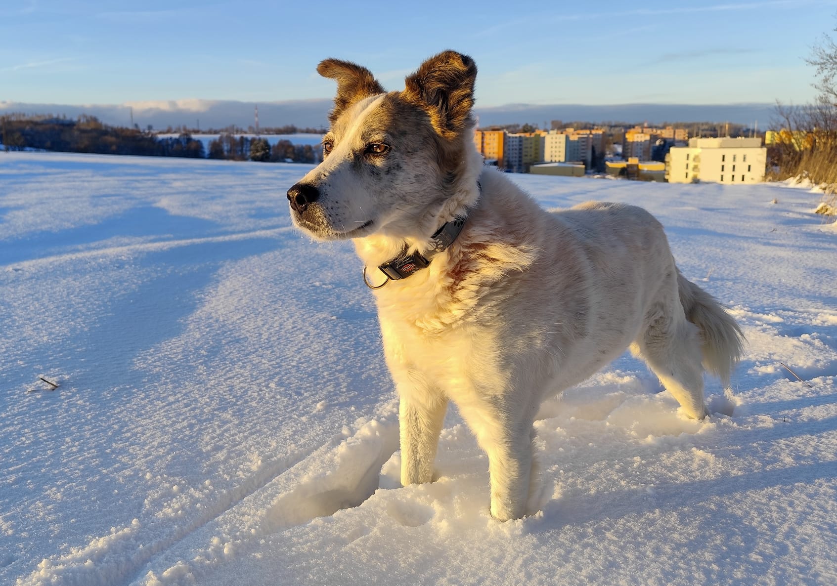 Rumík je 5 letý kříženec. Váží 23 kg a měří 60 cm v kohoutku. Dostal se k nám ze špatných podmínek spolu se svým kamarádem, možná bráškou – Harrym. Za celý život nepoznal nic než jeden dvůr, téměř bez kontaktu s lidmi, zato je zvyklý na soužití se psy. Lidem nevěří…pouze se drží ostatních psů a snaží se chovat podle nich. Mnohem více důvěryhodnější se mu zdají děti, ochotně si od nich bere pamlsky, jako ovečka se nechá vodit na vodítku, snese i pohlazení. Na volném prostoru se nenechá připnout na vodítko, ale nevadí mu zajít s ostatními psy na verandu, přestože ví, že tam ho zvolna zatlačím do rohu a připnu si ho. Bere to jako bezpečný vzorec pro odchod na procházku. Na vodítku strpí česání, vyndavání klíšťat, hlazení apod., jen neustále kouká, jakoby chtěl říct: „Začne to určitě strašně bolet, že?“ Přesto je znát velký pokrok – oproti plachému stínu při přijetí, který proklouzával jak ryba při sebemenším doteku lidské ruky, už je z něj zvědavý loudil. Už před námi neprchá na 5 m bezpečnou vzdálenost, když si k němu sednu na zem v kuchyni, sice ještě tuhne, ale nevystřelí a neletí se schovat na opačný konec místnosti.
