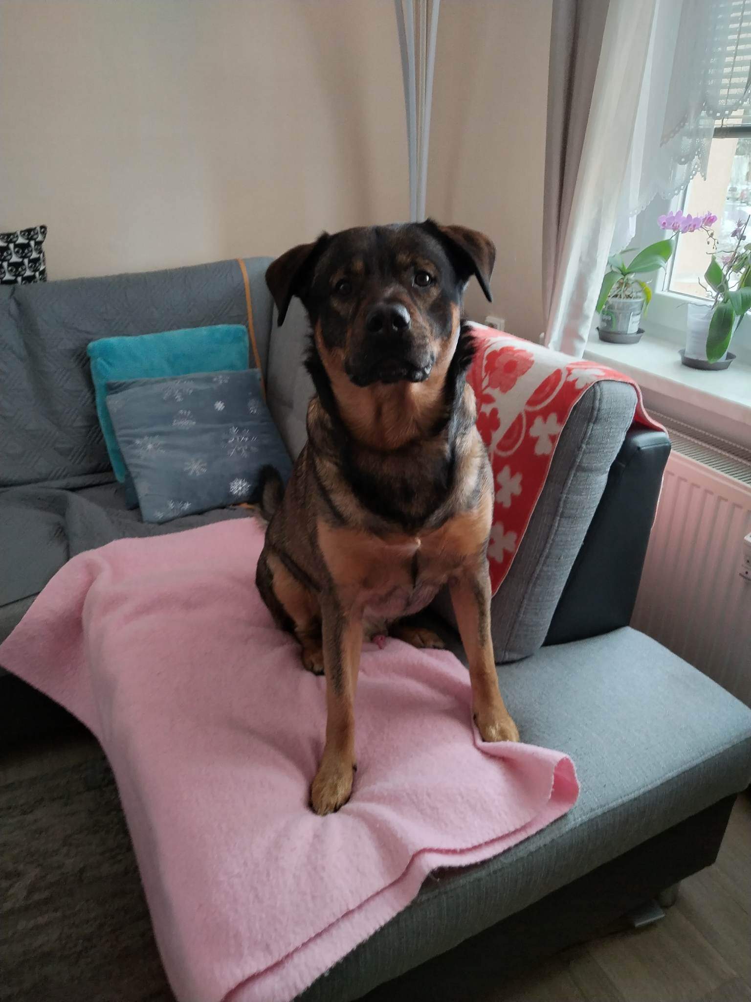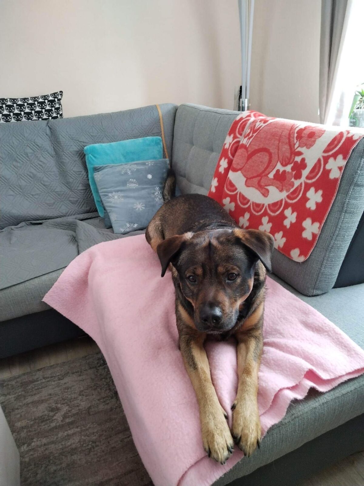 Benda je dvouletý kříženec labradora s německým ovčákem, k nám byl přijat 28.11.2020. Váží 25 kg a měří 45 cm v kohoutku. Benda je hrozně hodný pes. Miluje děti, je radostný a vítací. Na vodítku chodí hezky, když se něco děje, tak trochu zatáhne. Dobře vychází se psy.