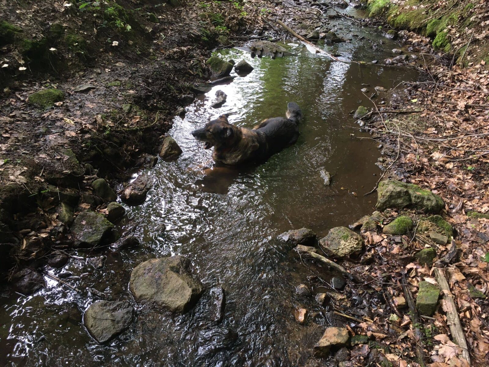Cess je 12 letá fenka německého ovčáka s PP. Je hodná, milá a nenáročná. Miluje lidi a děti, není to žádná stará nervóza – juchající a pobíhající děti jí nijak nevyvedou z rovnováhy. Ani s většinou psů nemá problém, i když někteří jí zlobí a to má snahu je umravňovat. Je zvyklá bydlet doma v teple, perfektně zvládá samotu, prostě si lehne a spí. Venku má o všechno starost, na procházkách je na svůj věk velmi aktivní. Přijata s chronickým neléčeným zánětem uší, do konce života bude nutné čistit, nyní dostává dlouhodobě antibiotické kapky. Se svou kamarádkou (možná dcerou) Dolly byla zanechána majitelem v domě, kde žily na dvoře a nechodily nikam jinam ven.