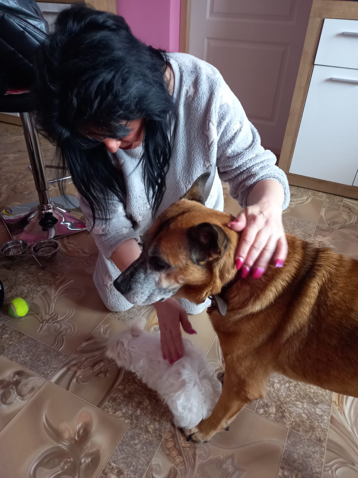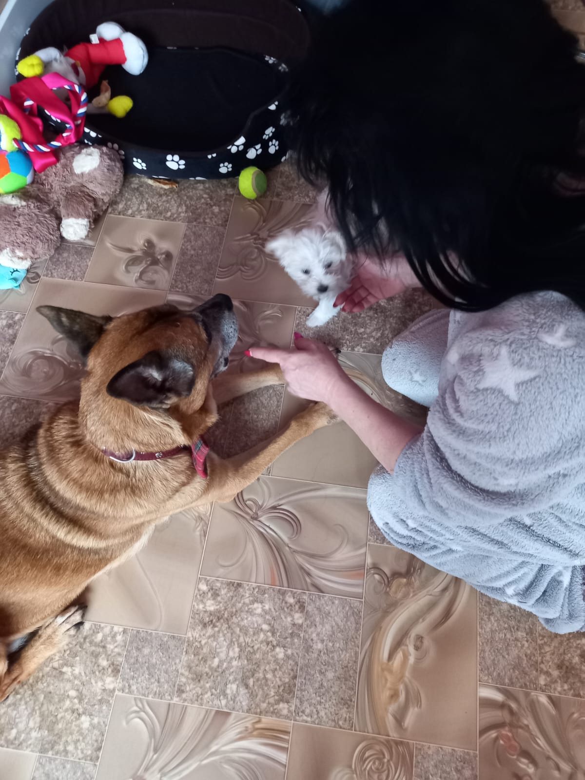 Na sonografickém vyšetření bylo zjištěno, že je Dolly březí. Porodila u nás 6 krásných štěňátek (3 kluky a 3 holky).