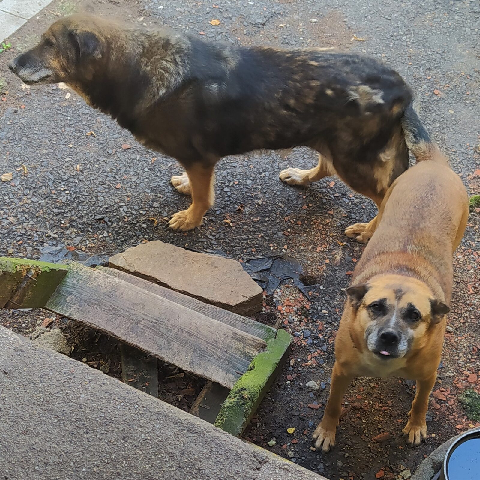 Dolly je 6 letá kříženka německého ovčáka a staforda. Váží 25 kg (má nadváhu) a měří 50 cm v kohoutku. Dolly prožila celý život bez kontaktu se světem se svoji kamarádkou (možná maminkou) Cess. Všeho nového se bojí, na vodítku zatím prakticky neumí chodit – zalehne a nebo se kousek plazí. Jinak je hodná, milá, ale musí se prvně trošku seznámit s běžnými psími záležitostmi. Fenky byly zanechány majitelem v domě, kde žily na dvoře a nechodily nikam jinam ven.