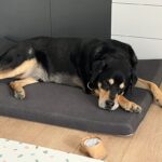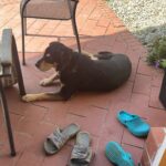 Fanda je 8 letý kříženec labradorského retrívra a německého ovčáka, váží skoro 30 kg, ale má zatím velkou nadváhu. Fanda u nás velmi ožil, je hravý, mazlivý, zcela bezproblémový. Hezky chodí na vodítku, procházky má rád. S jinými psy a fenami se snese, je k nim přátelský a chtěl by si s každým hrát. S kočičkami by si chtěl také hrát, ale zároveň se jich bojí; neví, co od nich čekat.