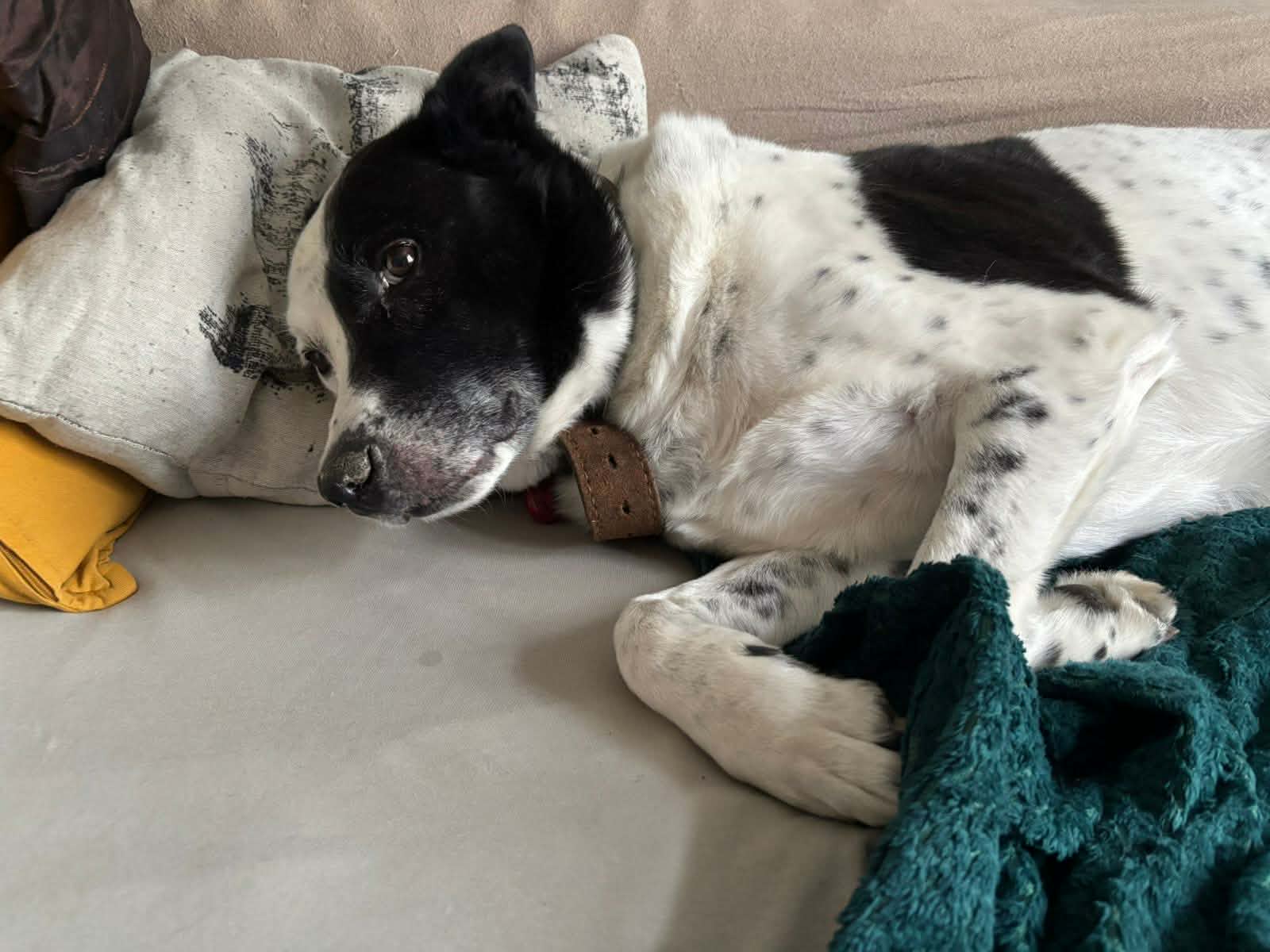 Flek našel nový domov v Praze. Pánečci s ním neustále pracují na odbourávání jeho neduh, navštěvují mimo jiné psychologickou kynologii.