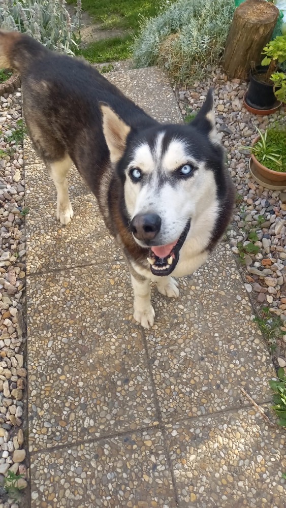 Katun je 3 letý kříženec plemene sibiřský husky, váží 28 kg. Je velmi chytrý a učenlivý. Má spoustu energie, ale na vodítku chodí hezky, netahá. Umí několik povelů a za pamlsek se jich spoustu rád naučí. Velmi dobře reaguje na přivolání. Bude potřebovat spoustu pohybu, aktivit a také dobré zabezpečení v případě, že by byl na zahradě. Lidi miluje bez rozdílu, ale není vhodný k malým dětem. Byl k nám odložen dne 24.12.2020 z důvodu kousnutí dítěte.