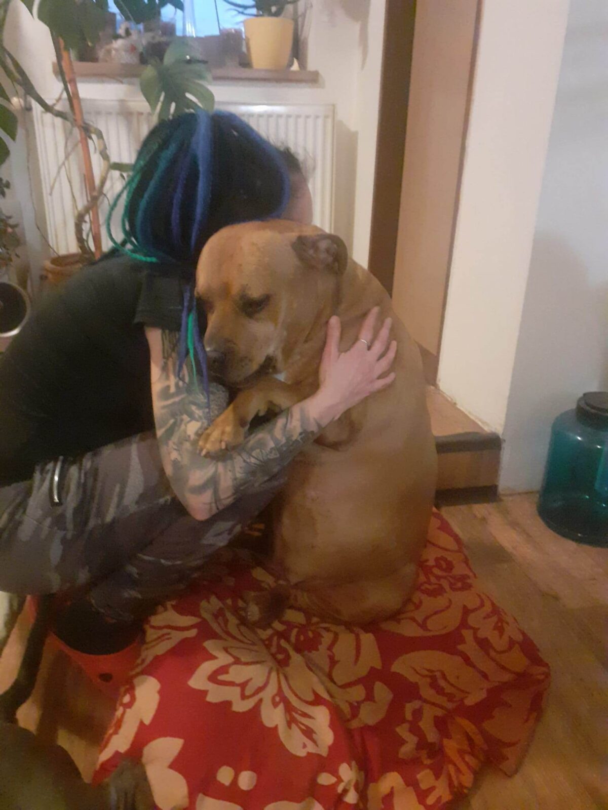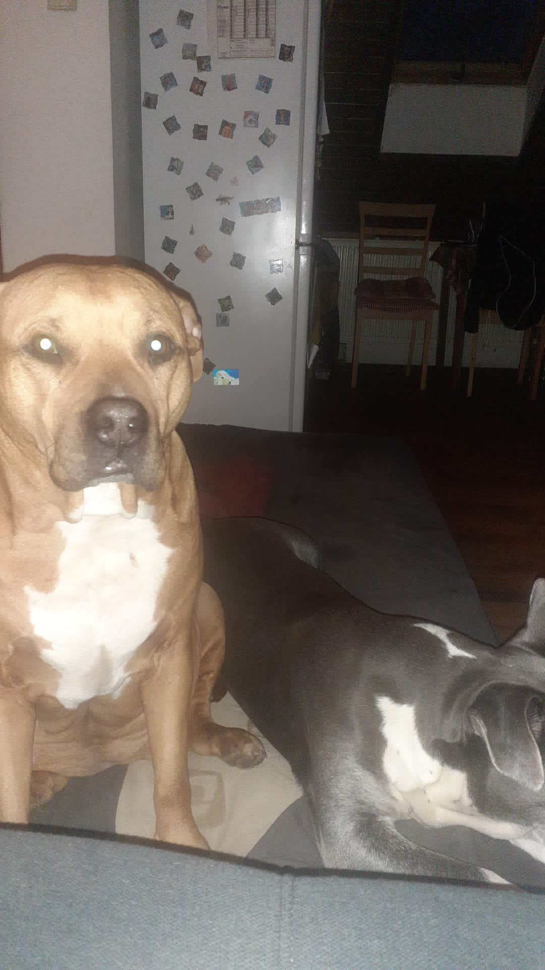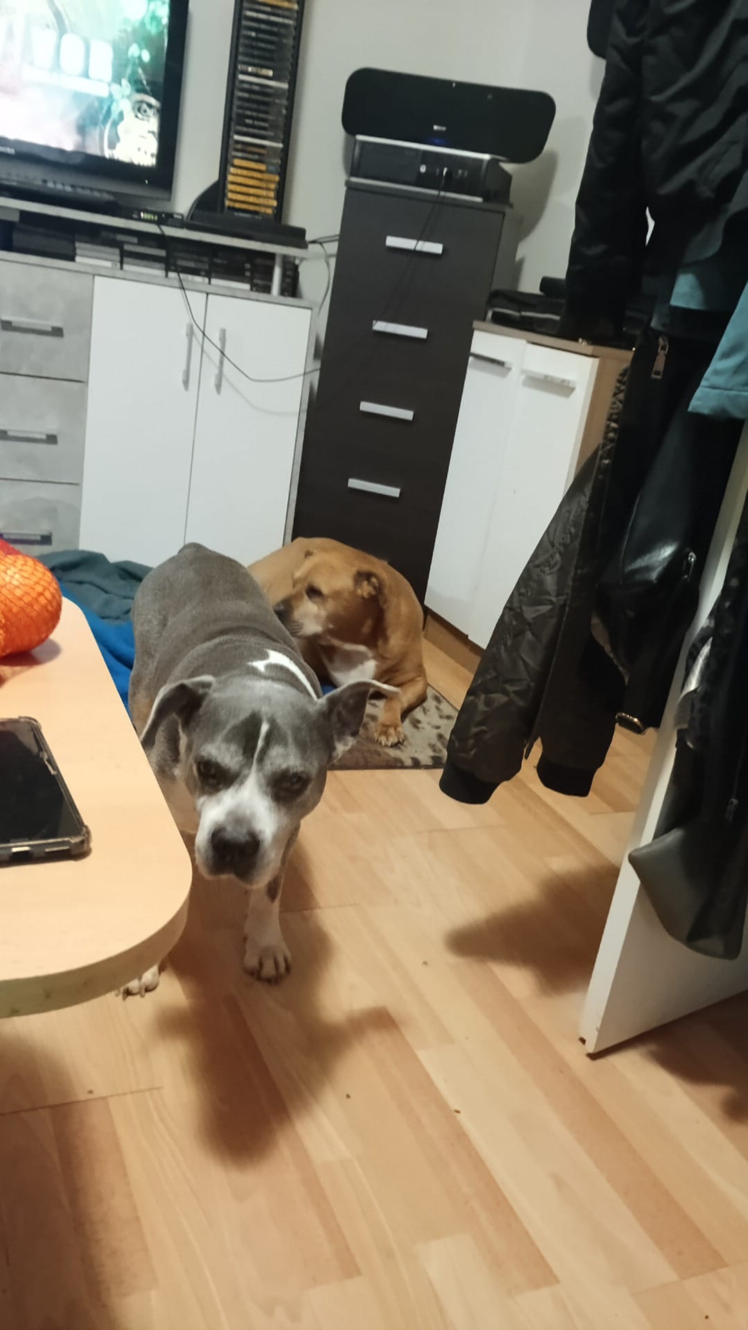 Sophia je 5 letá kříženka staforda. Váží 37 kg a měří 46 cm v kohoutku. Sofinka miluje lidi a obzvlášť děti. Byla zvyklá spát přitulená k člověčímu miminku. Je to mladá, aktivní psí holka, zvyklá v bytě a na dlouhé procházky nebo proběhnutí s pánem. Má ráda domácí kočičky, dokonce je ochraňuje, bez problémů je soužití s drobnými domácími mazlíčky jako morče atd. Sofí má bohužel velký problém s fenkami, začala velmi agresivně napadat spolužijící fenku a proto ji majitelé odložili k nám. Psy si vybírá, většinou problém nemá.