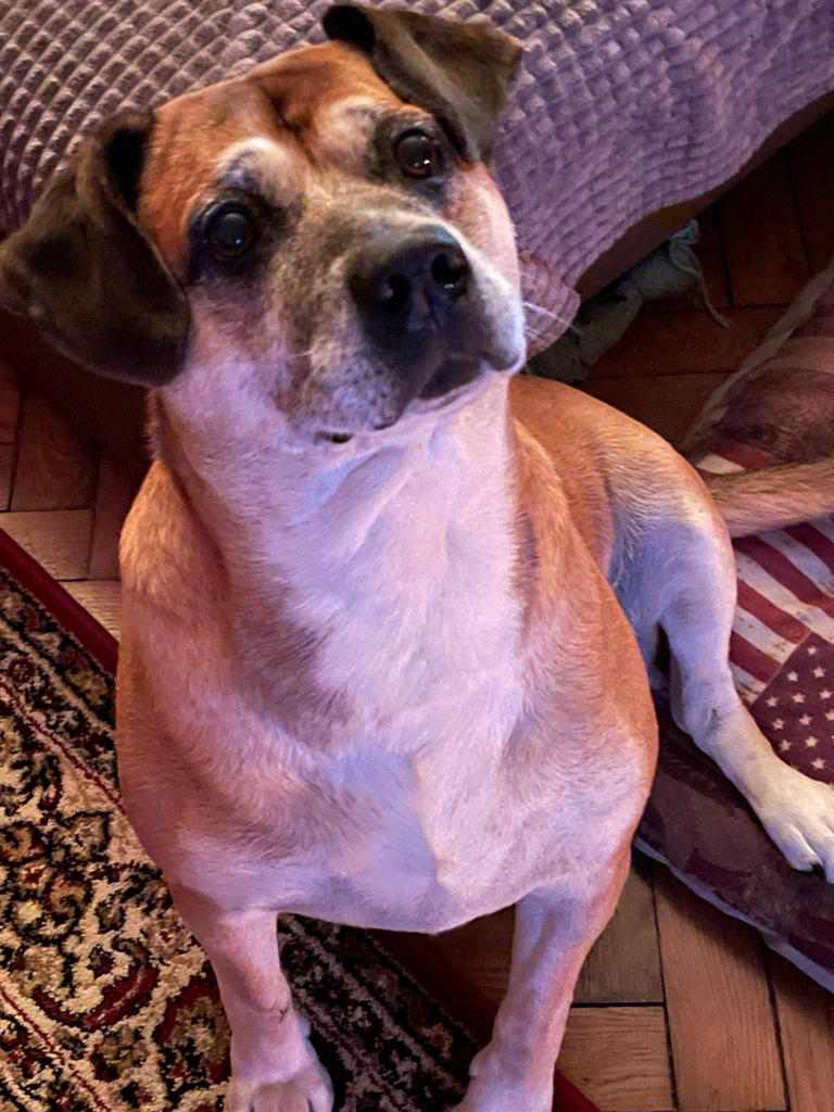 Tofík je 7 letý kříženec. Váží 20 kg a měří 50 cm v kohoutku. Tofík bydlel se svojí paničkou v penzionu, kde rozdával radost mezi hosty. Ale jen do té doby, než majitelka penzion prodala a Tofíkova přítomnost nebyla dále žádoucí, a tak měl být utracený. Tofík je veselý a optimistický pejsek, doslova miláček venčitelů. Má rád lidi a děti, miluje tenisáky a aport všeho druhu, přetahováky a vůbec je velmi hravý. Fenky má moc rád, pejsky si vybírá. Miluje procházky, na volno ho ovšem nepouštíme, protože má silné lovecké pudy, hospodářská zvířata loví. Ani s kočičkou se nebude kamarádit.
