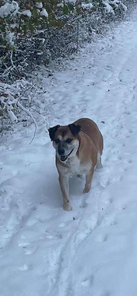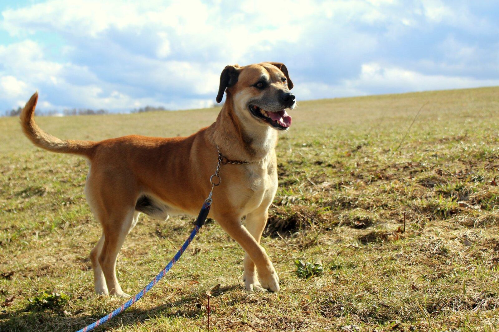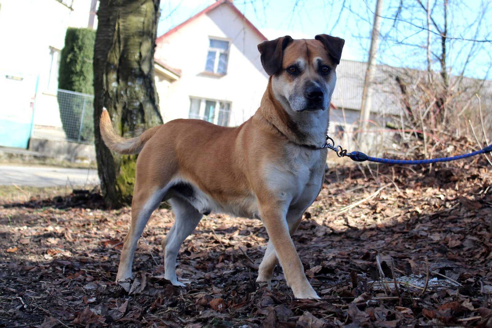 Tofík našel nový domov v Dlouhopolsku. Několikrát týdně chodí na 5-10 km procházky, chová se prý naprosto vzorně, dokonce paničku často lidé zastavují a ptají se, jak se to dělá.