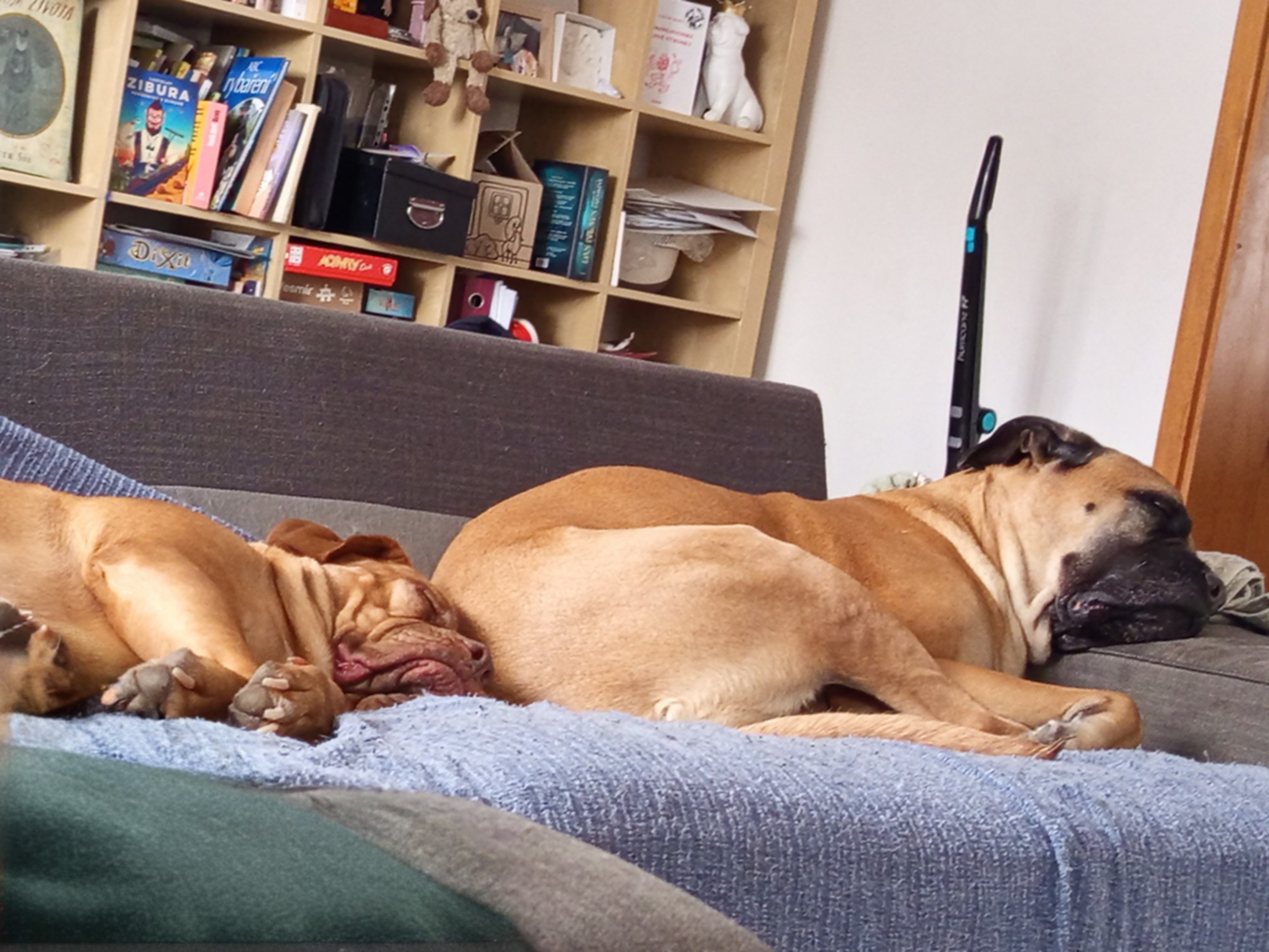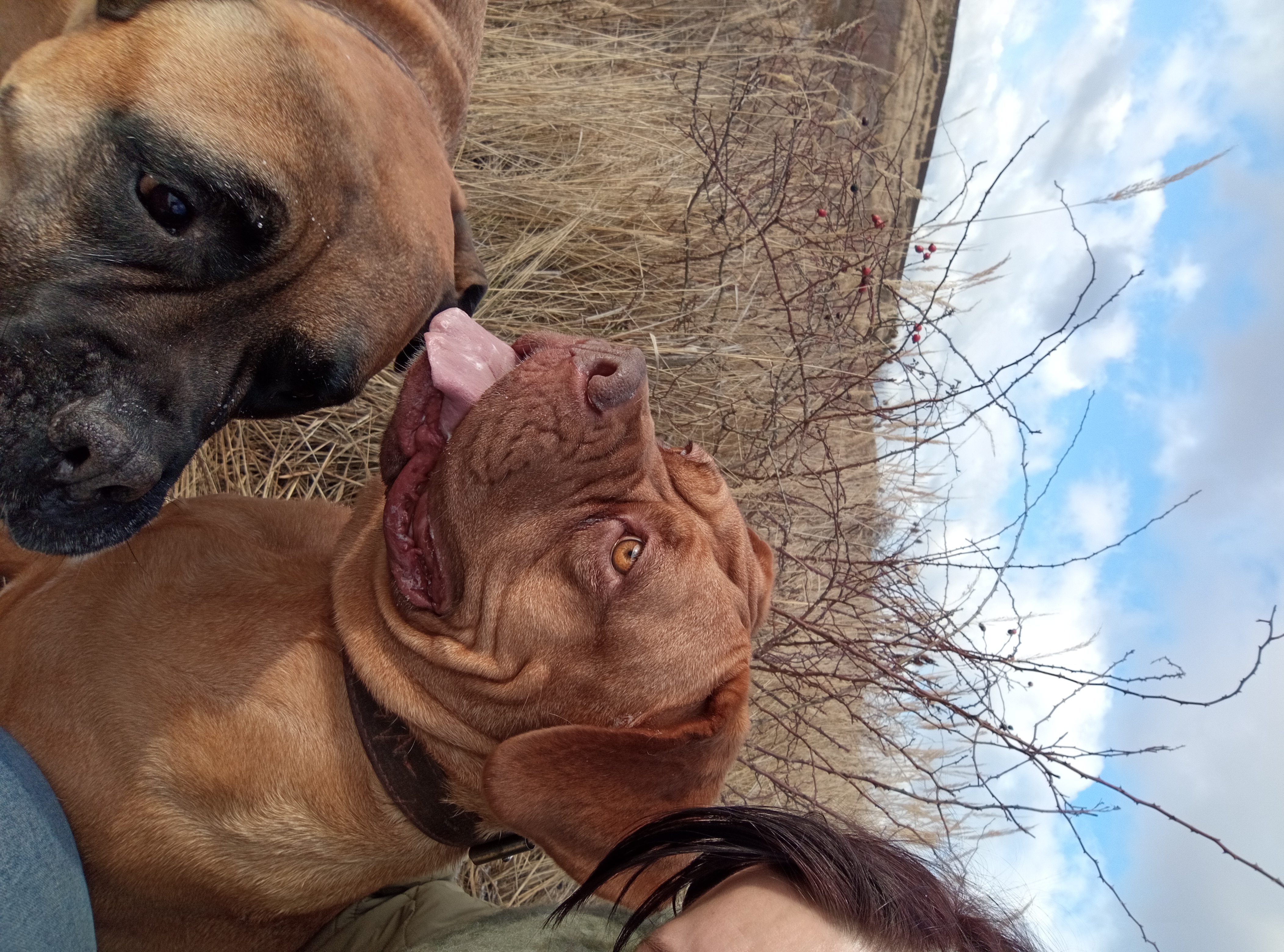 Alžběta je roční kříženka bordeauxské dogy. Váží 28 kg. Alžbětka je moc hodná, mazlivá, vnímavá fenka. Vůbec byste do ní na první pohled neřekli, jak moc je zranitelná. Kdykoliv se něčeho bojí, okamžitě se připlácne k zemi a tváří se, že je pytel brambor. Potřebuje citlivé vedení. K lidem je úžasná – dospělí, děti, všechny miluje. Zpočátku je sice ostýchavější a potřebuje chvilku na seznámení, ale pak je z ní mazel největší. Manipulace v jakékoliv situaci ji nedělá nejmenší problém. Snese se se psy i fenami, je bezkonfliktní. Po kočičkách zvědavě pokukuje, při soužití by tedy byla potřeba trpělivost. Totéž drobná hospodářská zvířata, větší snáší v pohodě. Alžbětka nemá ráda samotu, potřebuje mít svého člověka u sebe. Proto ji umístíme jen tam, kde nebude bývat většinu dne sama, případně kde ji s trpělivostí naučí samotu zvládat.