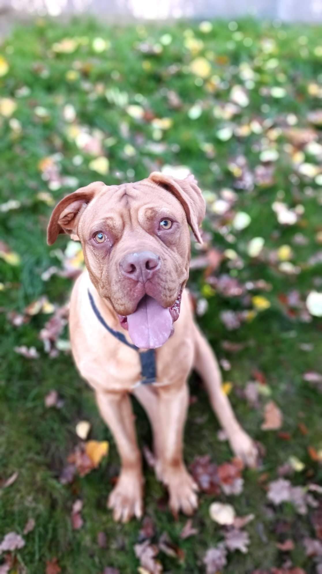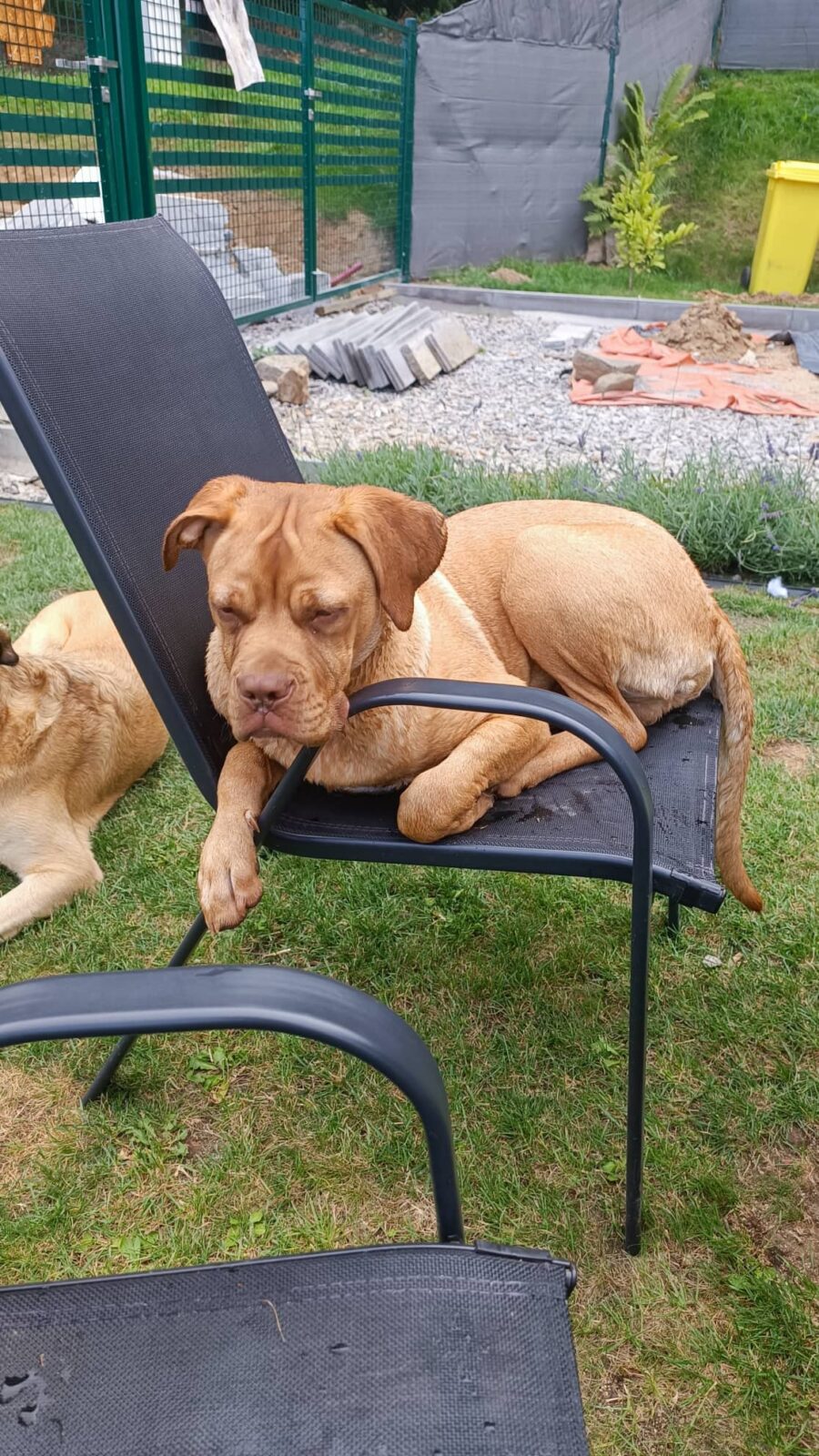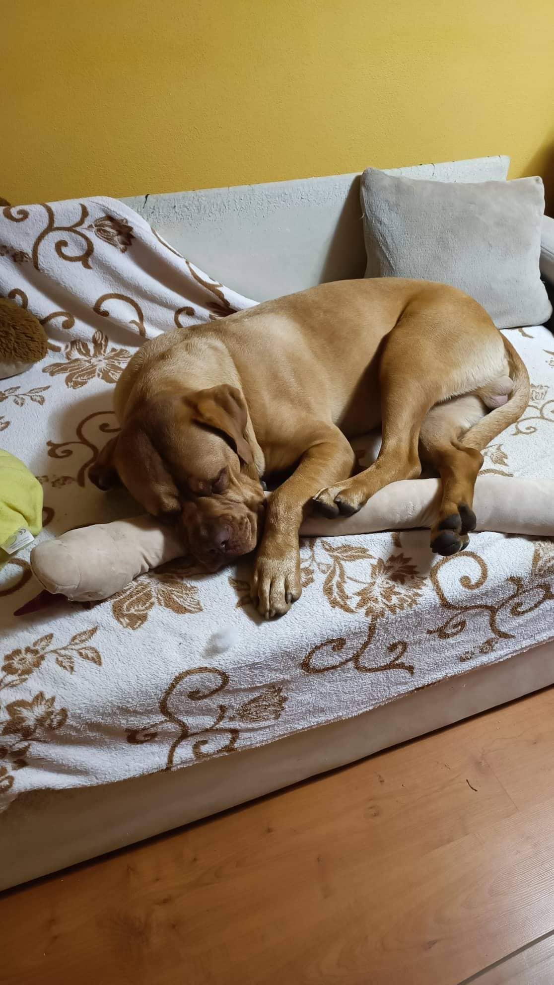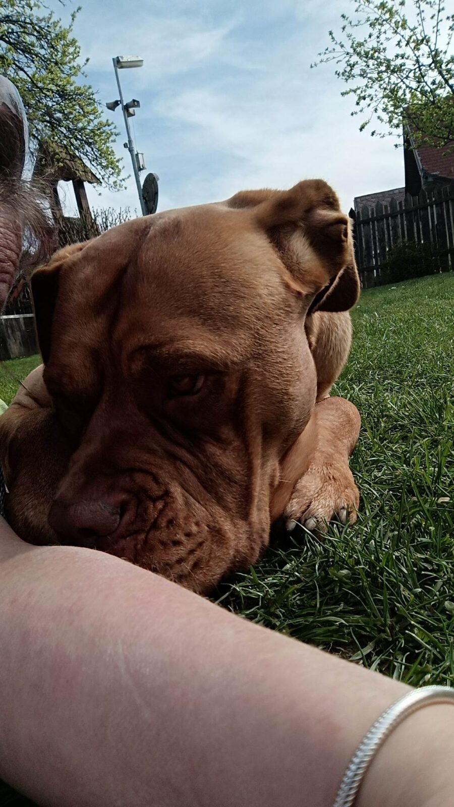 Amos je 4 měsíční kříženec bordeauxské dogy. Z Amoska se u nás brzy vyklubalo super štěně. Je mazlivý a učenlivý, vše ho baví a zajímá. Je hravý a aktivní, rozhodně nezkazí žádnou zábavu, naopak se ke všemu s nadšením přidá. Člověk si ho během chviličky zamiluje.