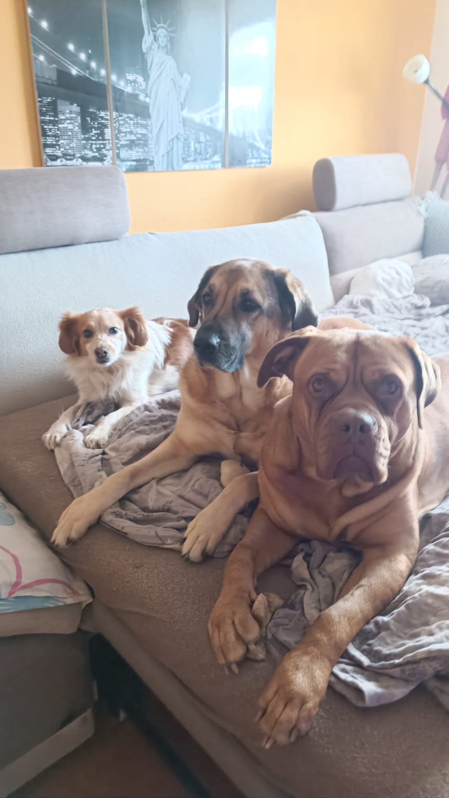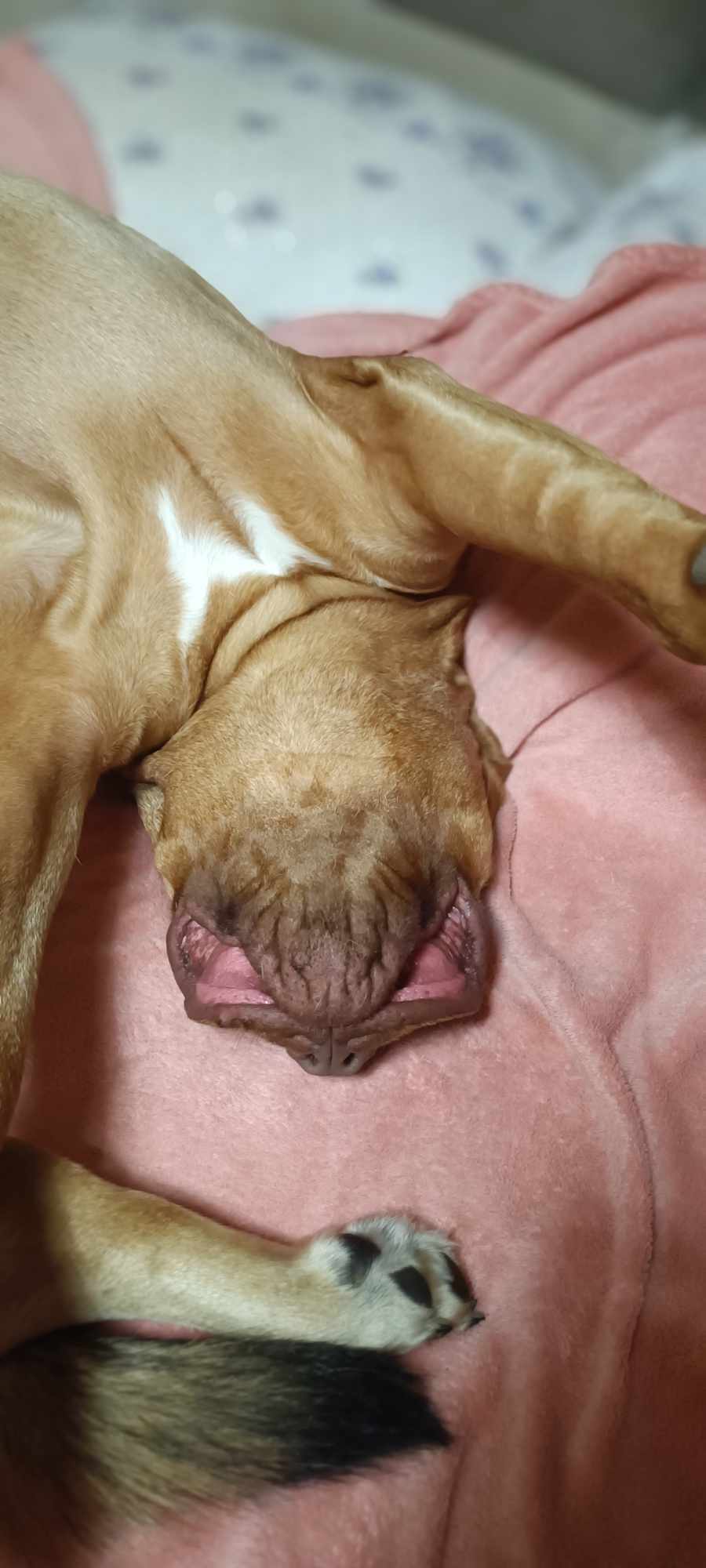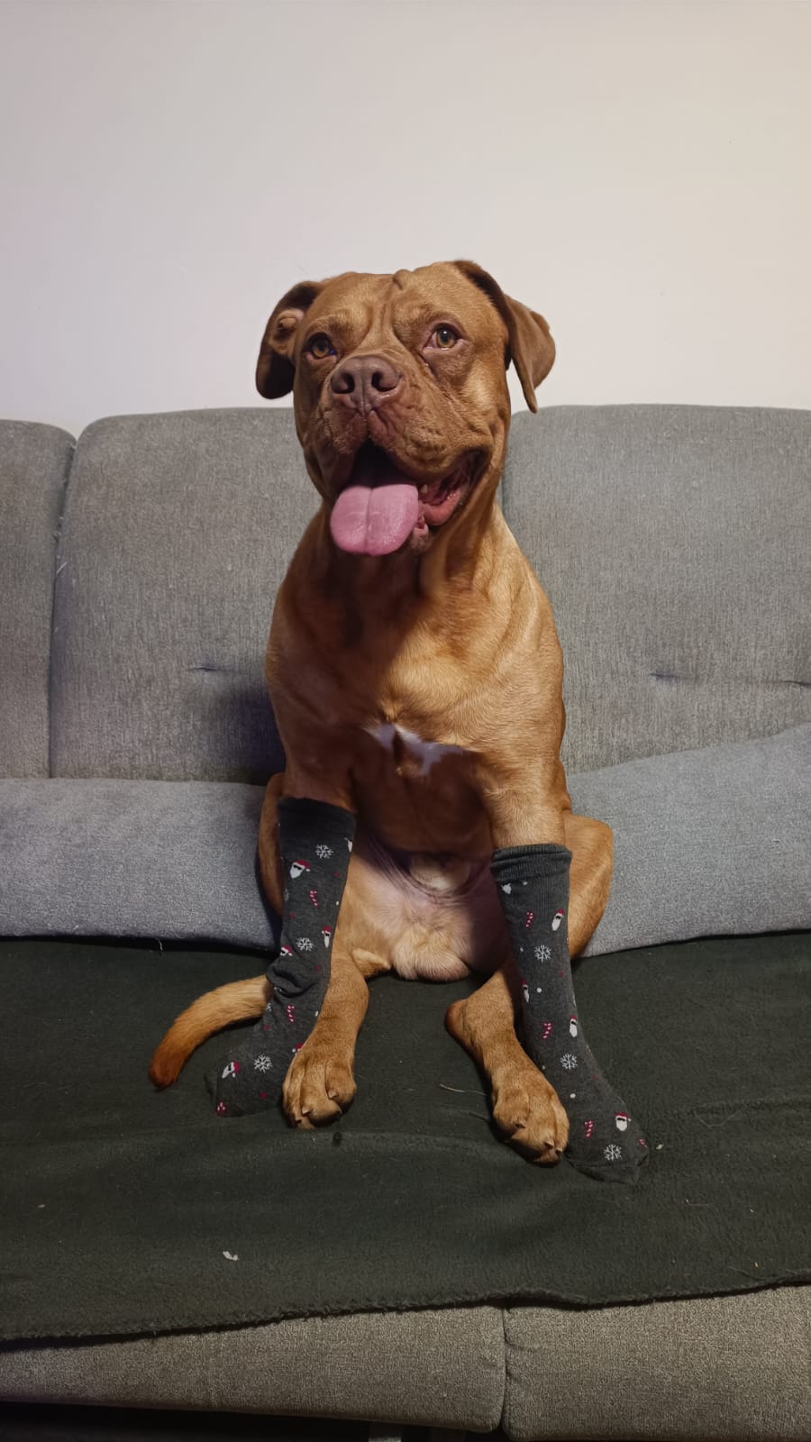 Amos je 4 měsíční kříženec bordeauxské dogy. Z Amoska se u nás brzy vyklubalo super štěně. Je mazlivý a učenlivý, vše ho baví a zajímá. Je hravý a aktivní, rozhodně nezkazí žádnou zábavu, naopak se ke všemu s nadšením přidá. Člověk si ho během chviličky zamiluje.