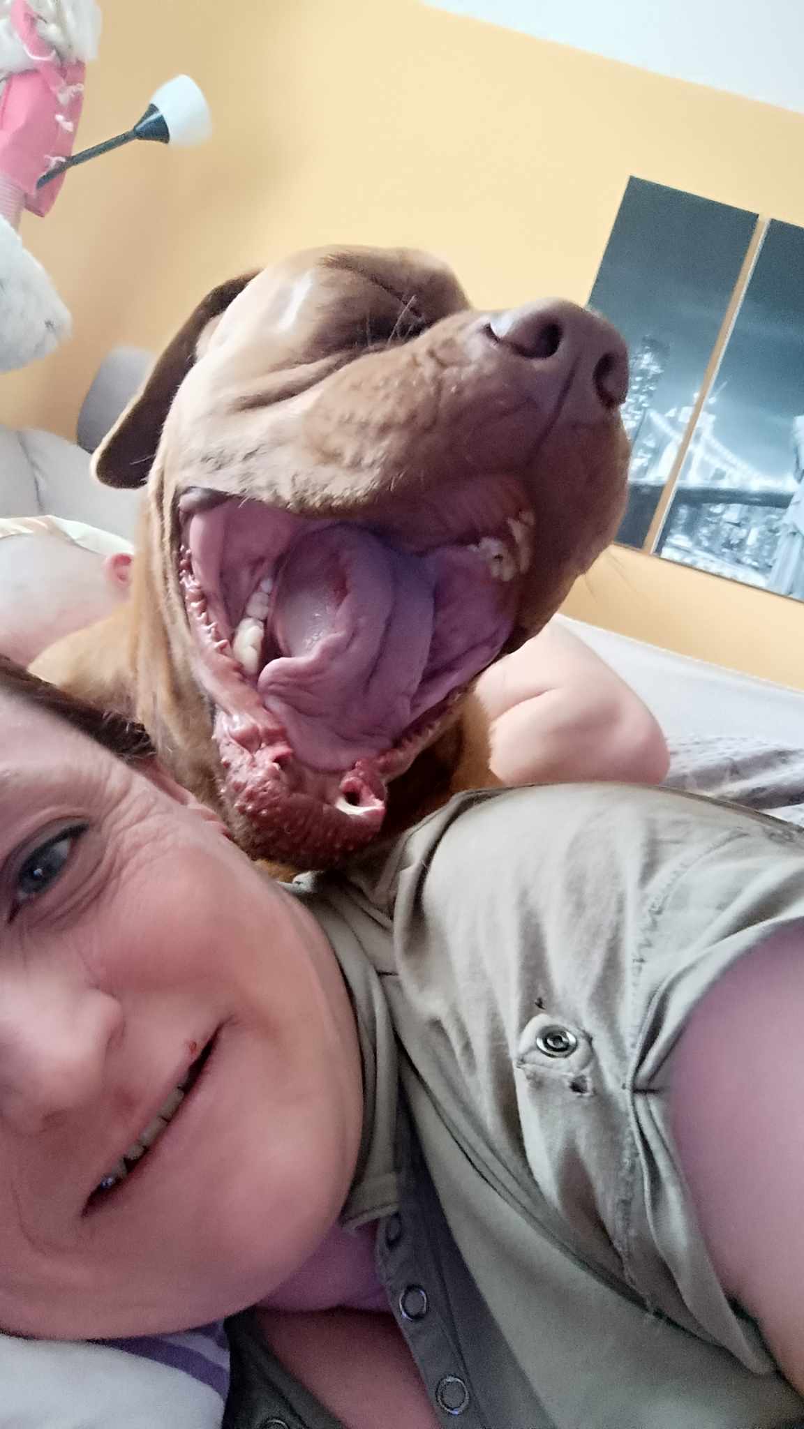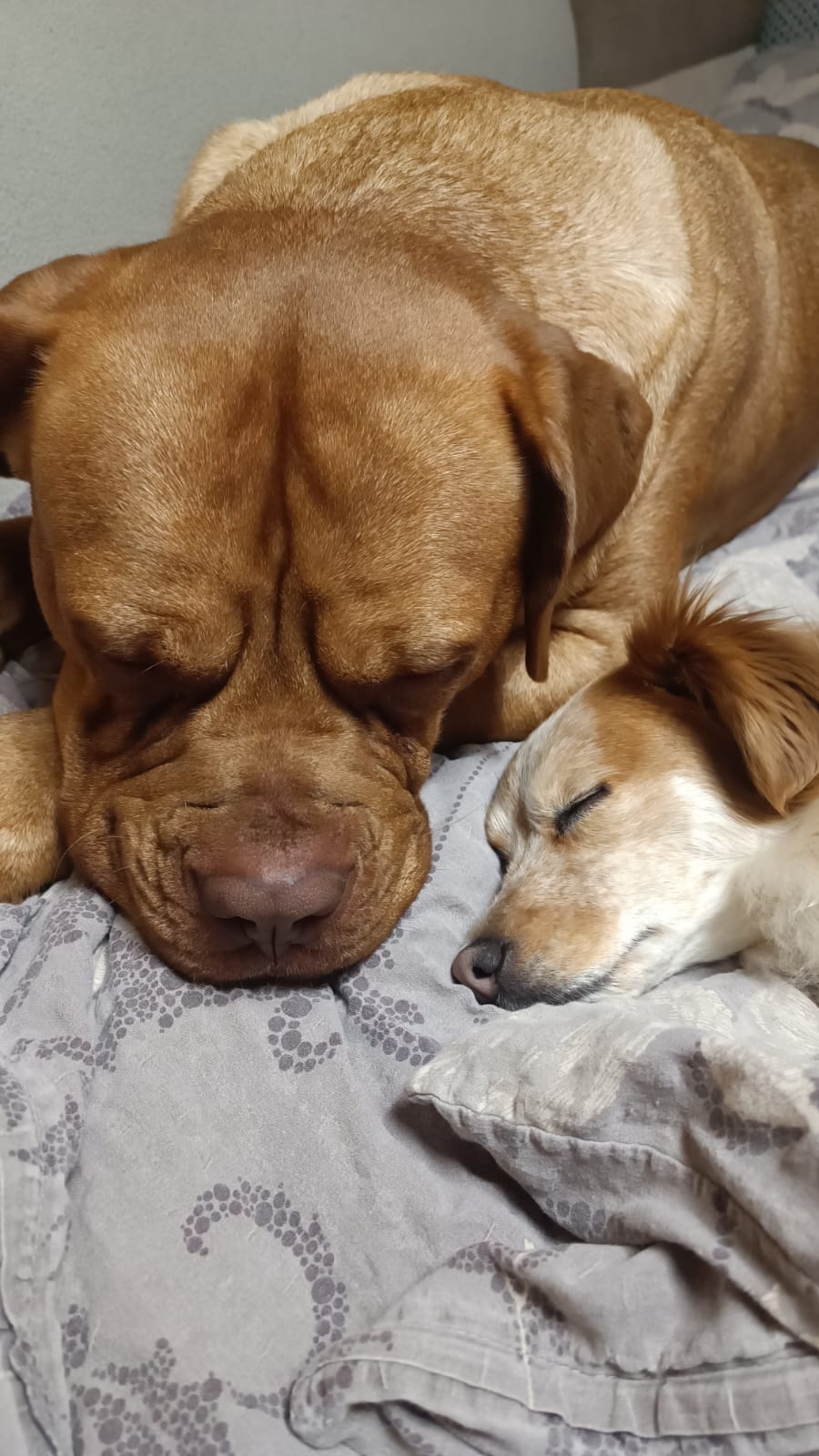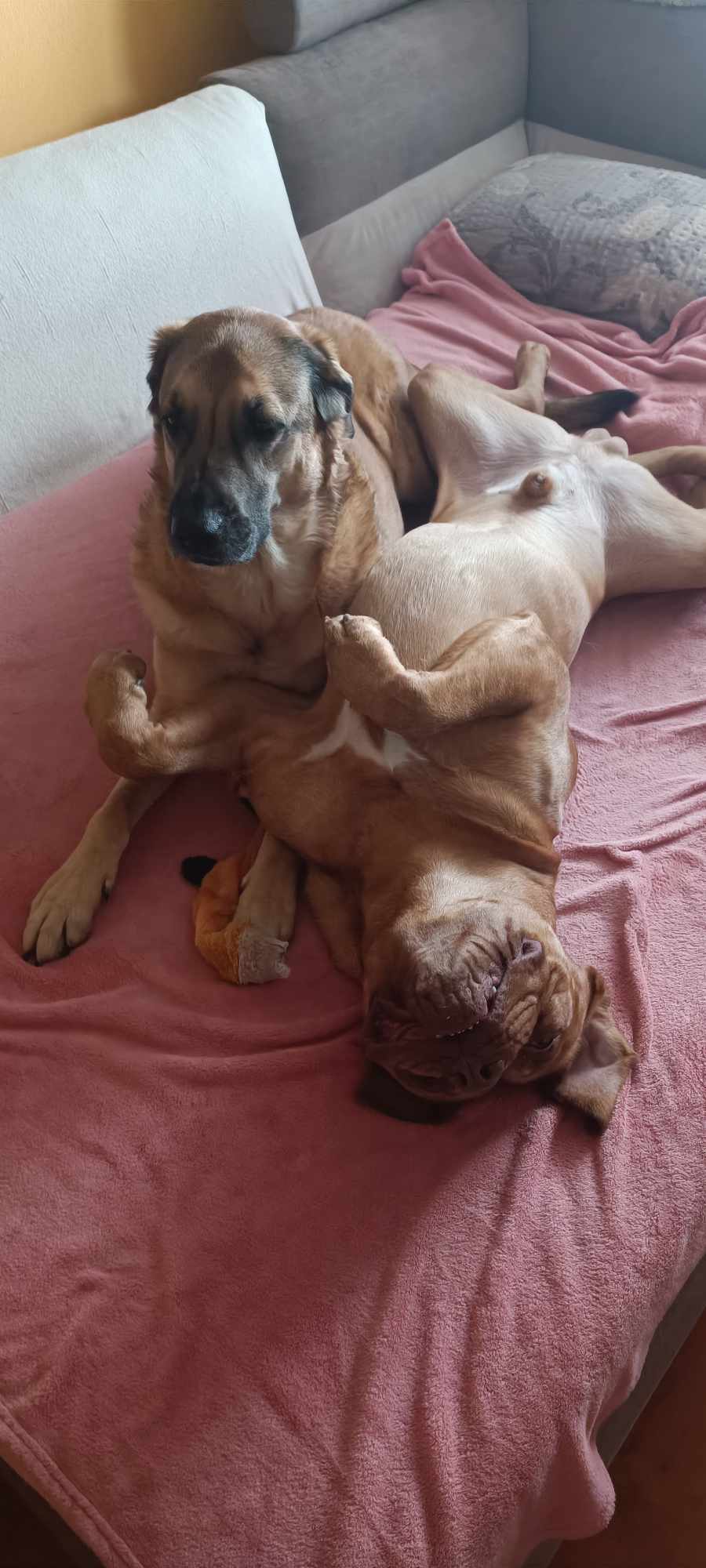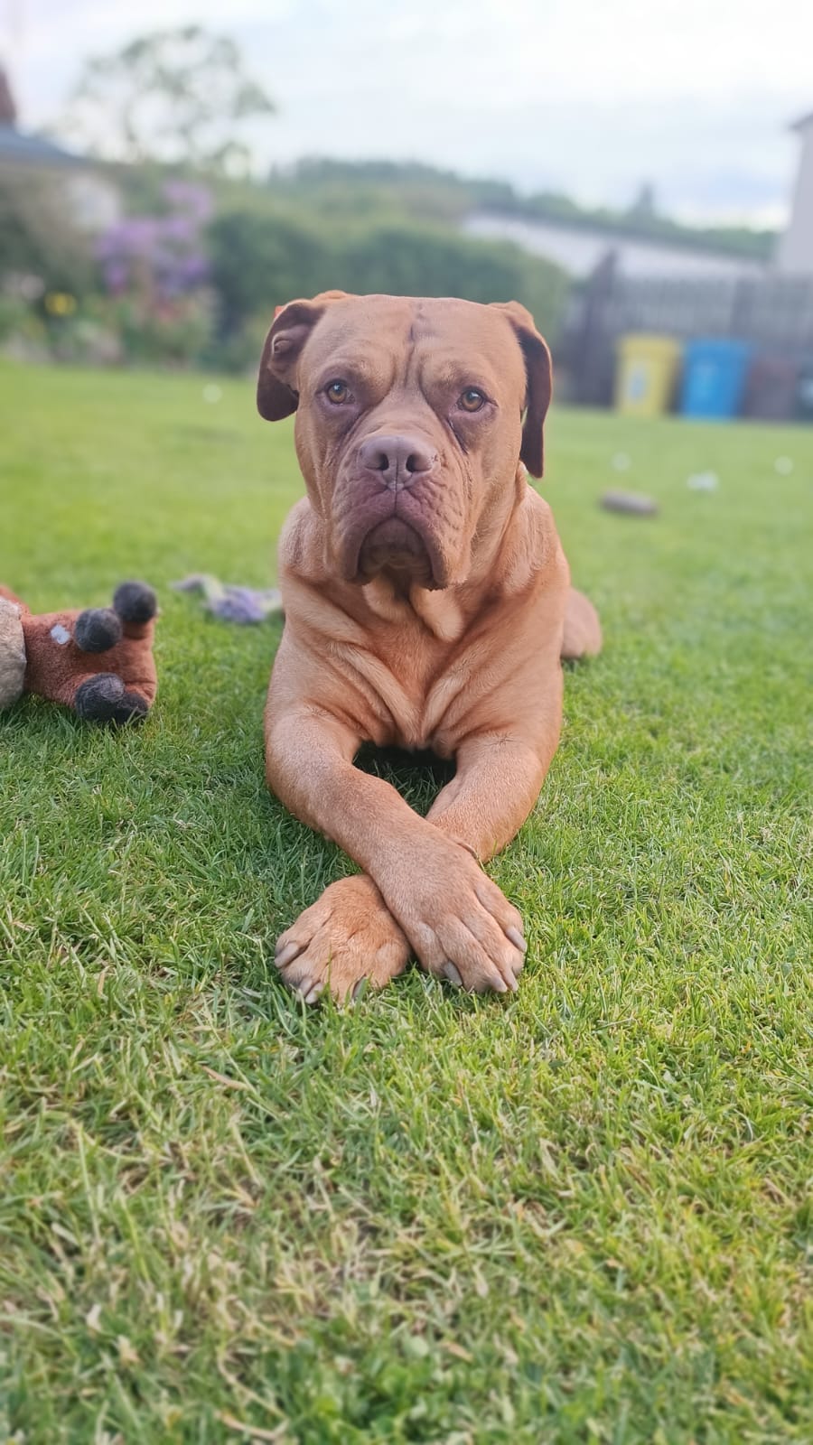 Amos je 4 měsíční kříženec bordeauxské dogy. Z Amoska se u nás brzy vyklubalo super štěně. Je mazlivý a učenlivý, vše ho baví a zajímá. Je hravý a aktivní, rozhodně nezkazí žádnou zábavu, naopak se ke všemu s nadšením přidá. Člověk si ho během chviličky zamiluje.
