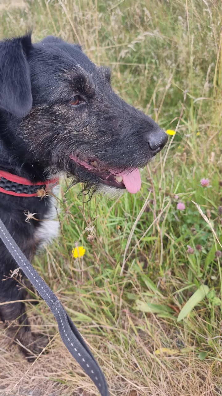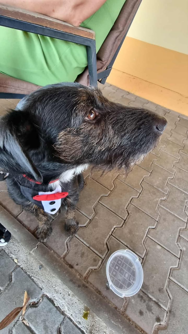 Břéťa je 2 letý kříženeček jagteriera. Váží 13 kg a měří 40 cm v kohoutku. Břéťa miluje lidi, děti, nejraději by se pořád mazlil nebo choval. Bez problémů vychází s jinými pejsky, kočiček se spíš bojí. Je čistotný a bezproblémový.