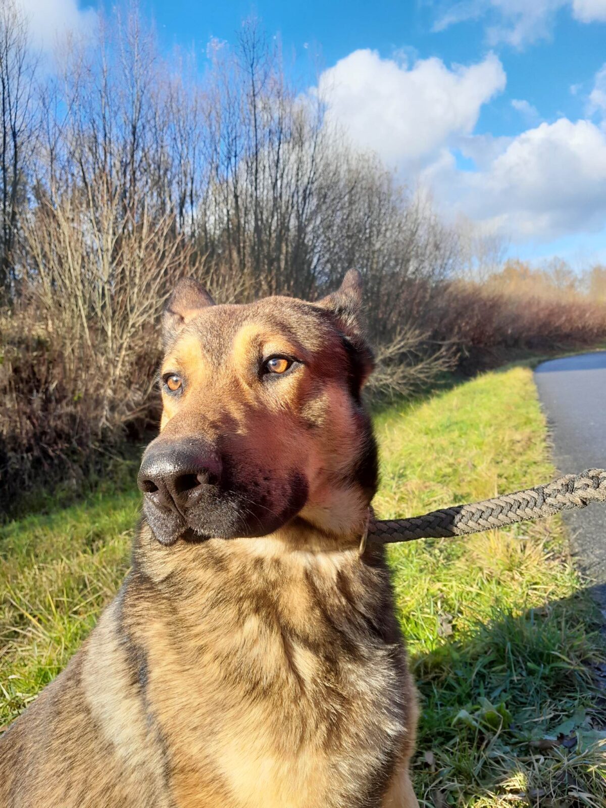 Chris je asi roční kříženec ovčáka možná s vlčákem, váží 38 kg. Chris je zpočátku k cizím lidem ostýchavý, ale po chvilce se z něj stane moc milý, hodný, chytrý a učenlivý pes. Hezky vychází s fenami, s pejsky zatím nevíme. Je vidět, že procházky poznává až u nás, některé věci ho lekají, ale každým dnem je to lepší a lepší. Na vodítko si zvykl rychle, netahá a chová se vzorně. Je čistotný. Chris hledá někoho, kdo chápe, že dosud nic moc neuměl, bude s ním pokračovat v socializaci a zapracuje na výchově. Pod správným vedením jsme si jisti, že z Chrise bude ten nejlepší psí parťák na světě, protože u nás už teď dělá obrovské pokroky.