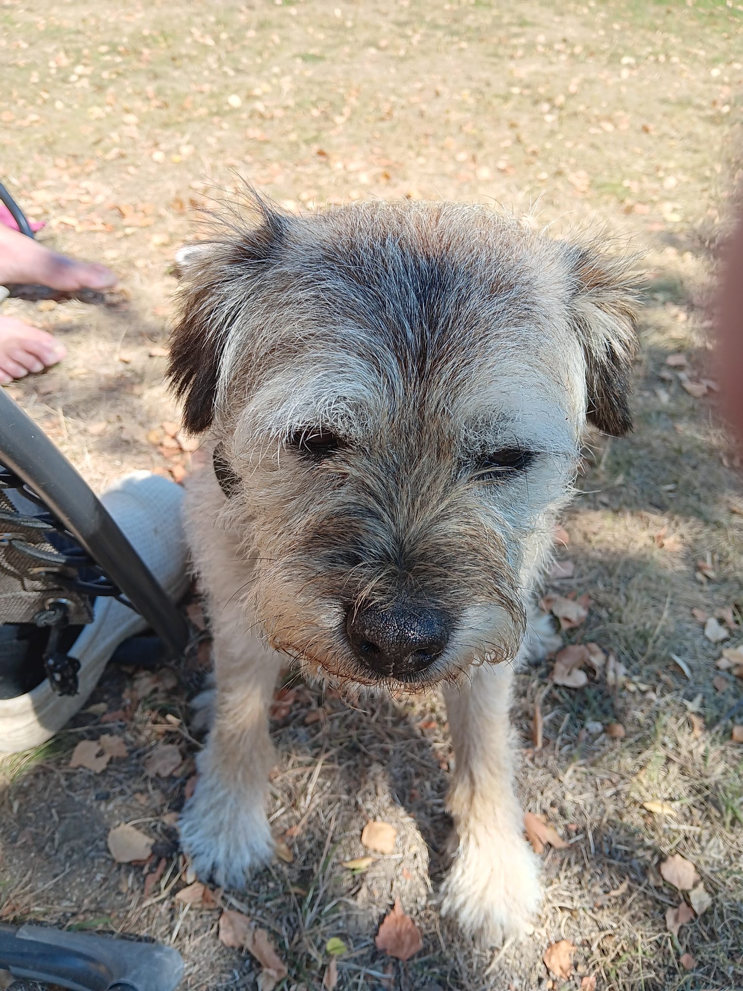 Nový domov pomáháme hledat Gregovi, 8 letému border teriérovi s PP. Greg je prima pes s velice přátelskou a umazlenou povahou. S lidmi vychází skvěle, také děti má moc rád, jen se umí příliš rozdovádět a proto jej úplně k malým dětem spíše nedoporučujeme. Greg by rád našel domov u aktivních lidí, kteří mu dopřejí dostatek pohybu i jiných aktivit. Povahě je Greg nejen aktivní, mazlivý, přátelský, ale také je to pes velmi hravý a je v tomto ohledu velice skromný, největší radost mu uděláte prázdnou pet lahví, kterou bude moct s nadšením vyhazovat do vzduchu a dovádět s ní jako štěně. Co se jiných zvířat týče, soužití s kočkami a slepicemi zvládá bezproblémově, se psy je nesocializovaný, je tedy potřeba na tom zapracovat. Ke každému kolemjdoucímu psovi se se zájmem hrne a chce se seznamovat.