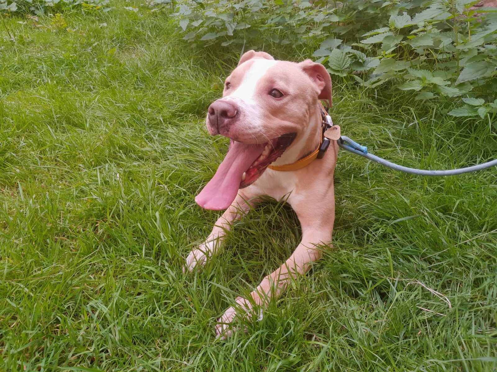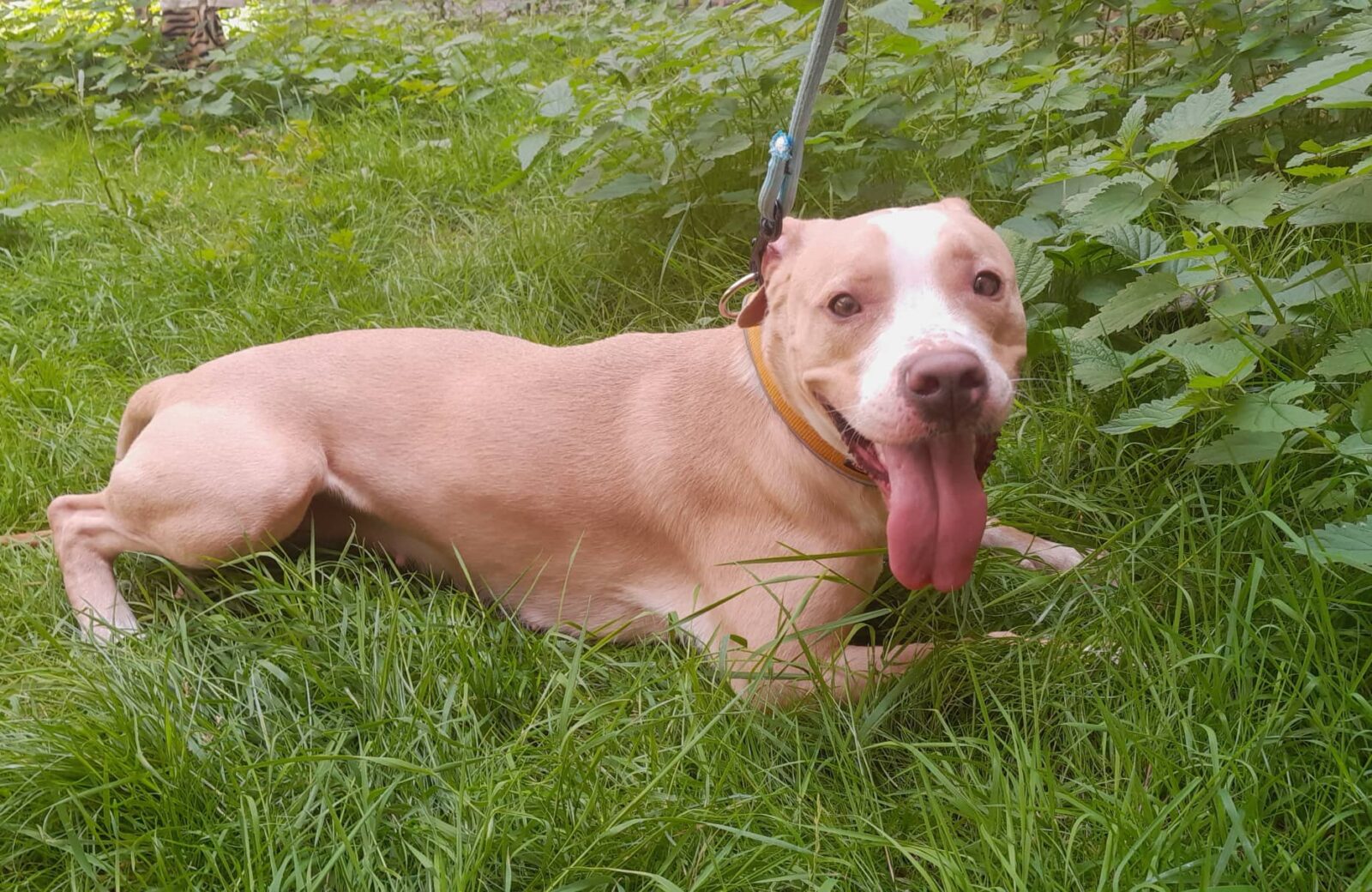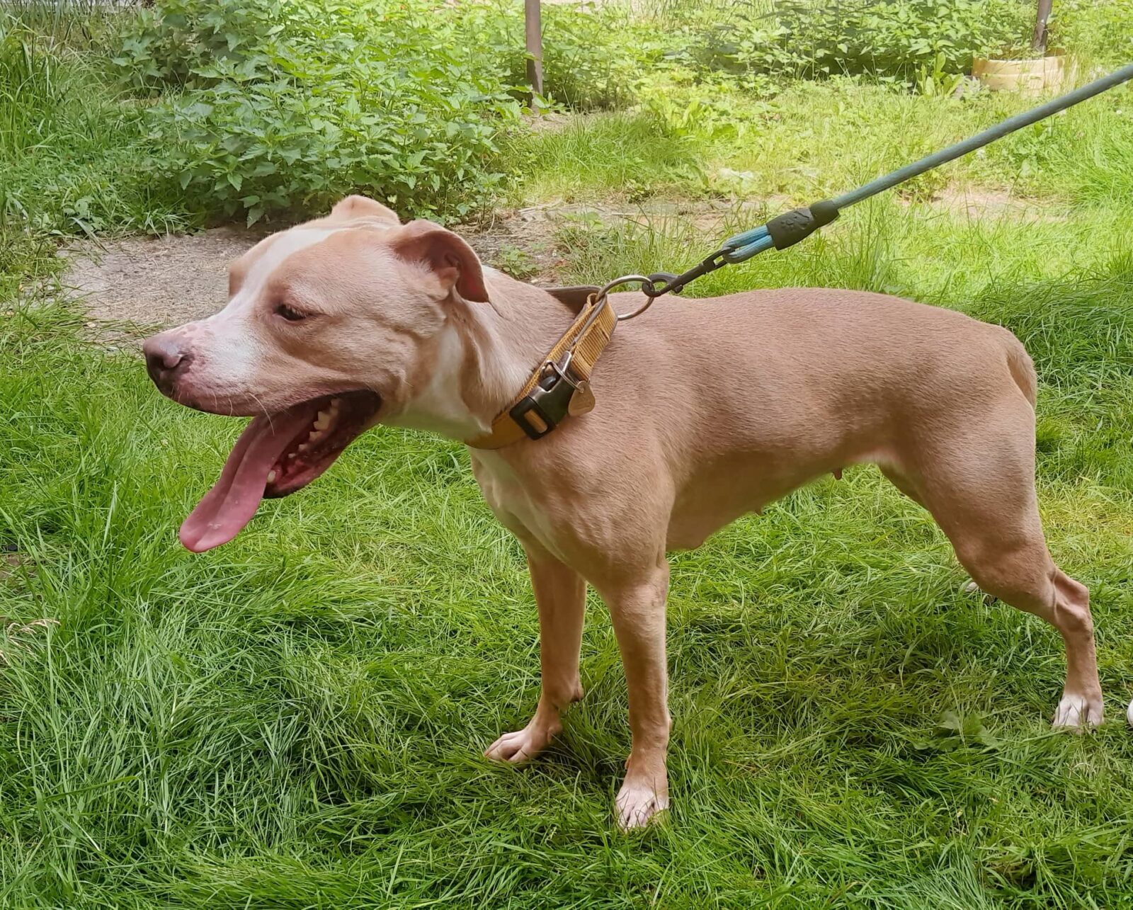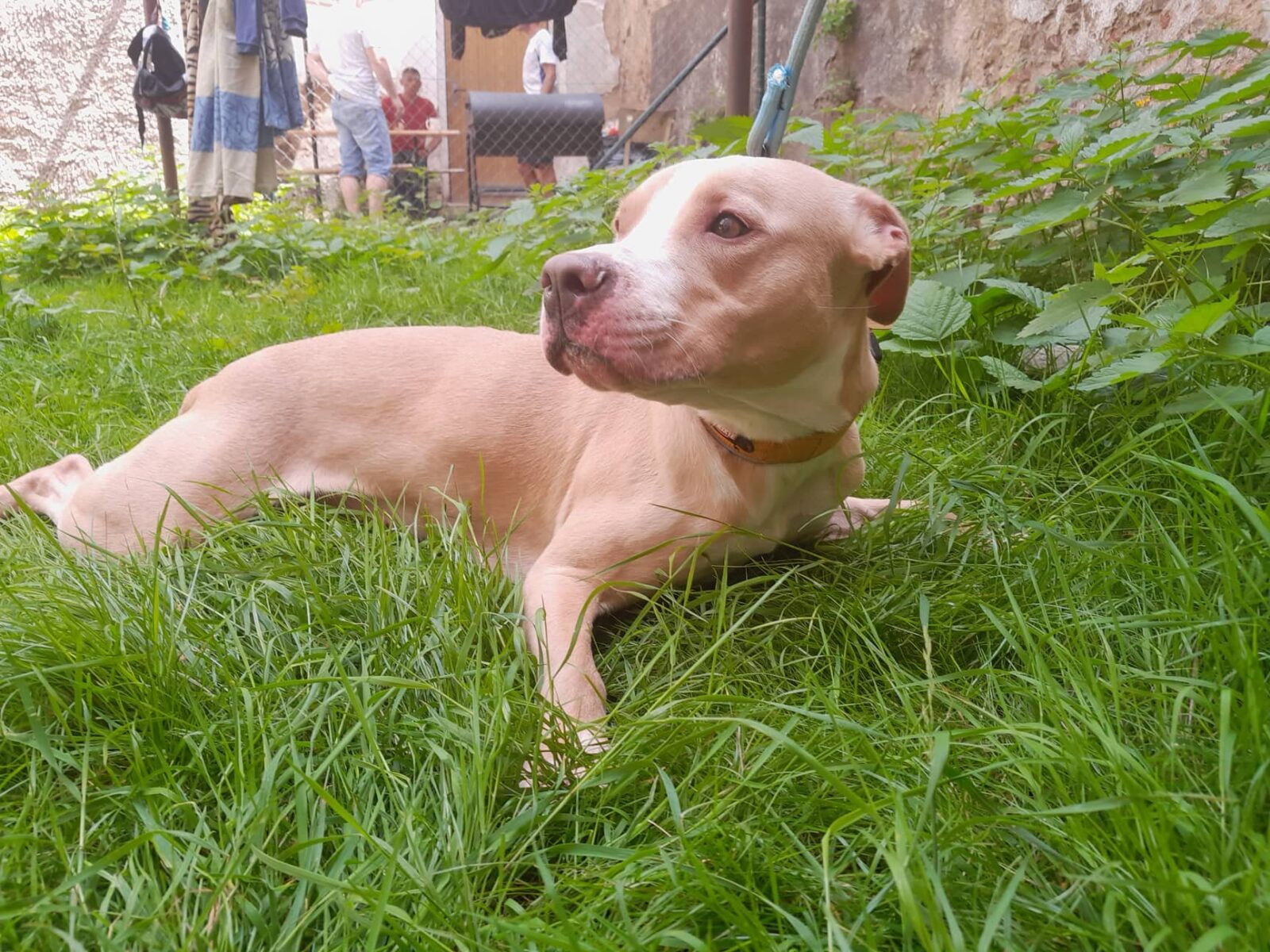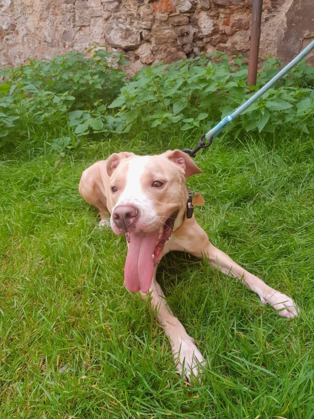 Kessienne je 2 letá fenečka amerického stafordshirského teriéra, kdy jeden z rodičů nebyl uchovněný. Váží 22 kg. Kess je smršť pozitivní energie a lásky k lidem a ještě více k dětem. Energii však dlouhodobě nemá jak vybít, protože majitelé neodhadli své možnosti a nemají na fenečku odpovídající množství času. S ostatními pejsky ji rodina do kontaktu nepouštěla, vypadá však přátelsky, jen je hrozně hrrr, jak je sociálně vyprahlá. Kess hledá velmi aktivní majitele, které bude těšit ji vše naučit jako od štěněte a budou se radovat z její radosti ze života a energie.