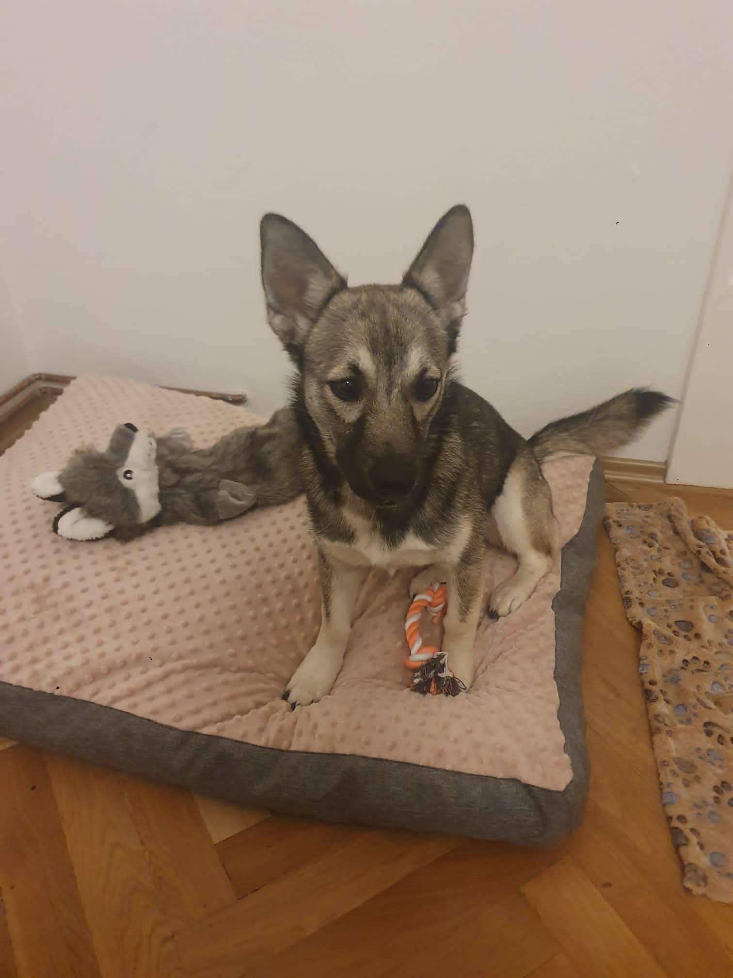Maddy je 6 měsíční kastrovaná fenečka – zřejmě maličká kříženka československého vlčáka. Váží 10 kg a měří 38 cm v kohoutku. Maddynka je jako každé štěně velmi zvědavá, akční, hravá a veselá. Na mazlení ji moc neužije, je to velká neposeda. Potřebuje zaměstnat hlavičku, svým postřehem a rychlostí je ideální na agility. Vyžaduje mnoho pohybu, aktivity a v neposlední řadě výcvik. Maddynka má silné lovecké pudy, hospodářská zvířata vnímá jako kořist, již ve svém věku by bez problémů roztrhala slepici. V lese ji nelze spustit z vodítka, sleduje stopy as nerespektuje pána, je na svůj věk velmi samostatná. Maddynku svěříme pouze zodpovědnému člověku, který má zkušenosti s čs. vlčákem nebo alespoň loveckým plemenem.