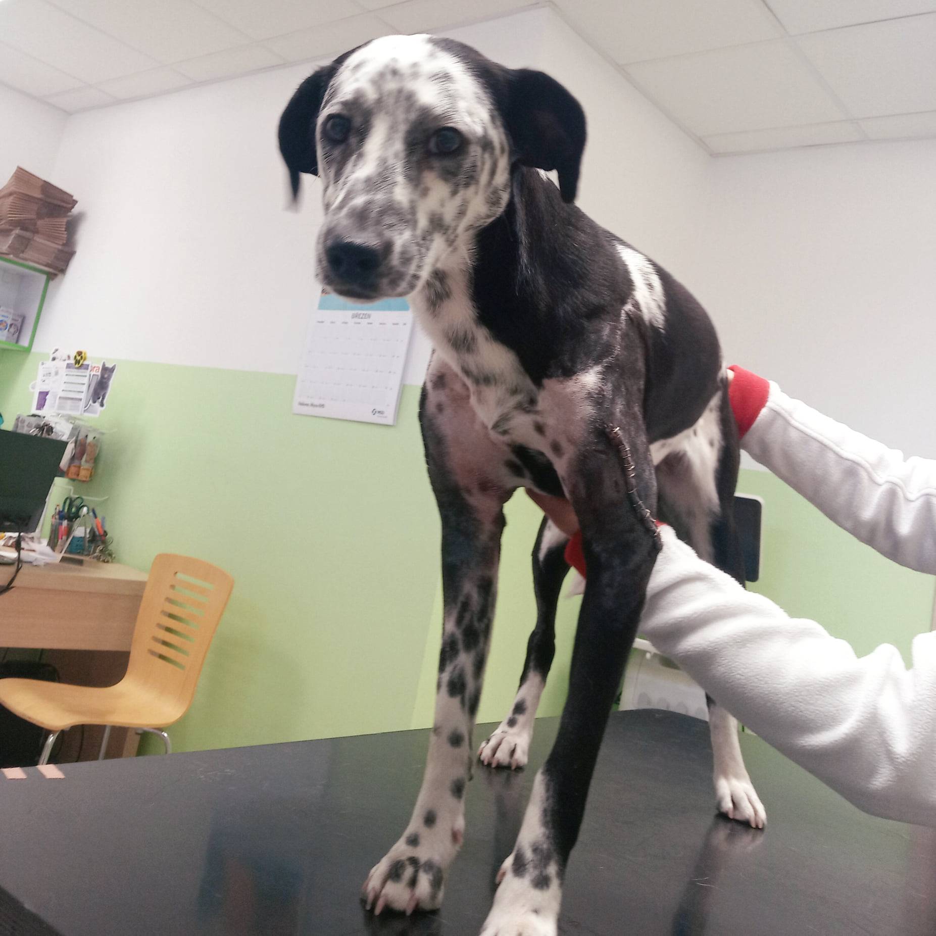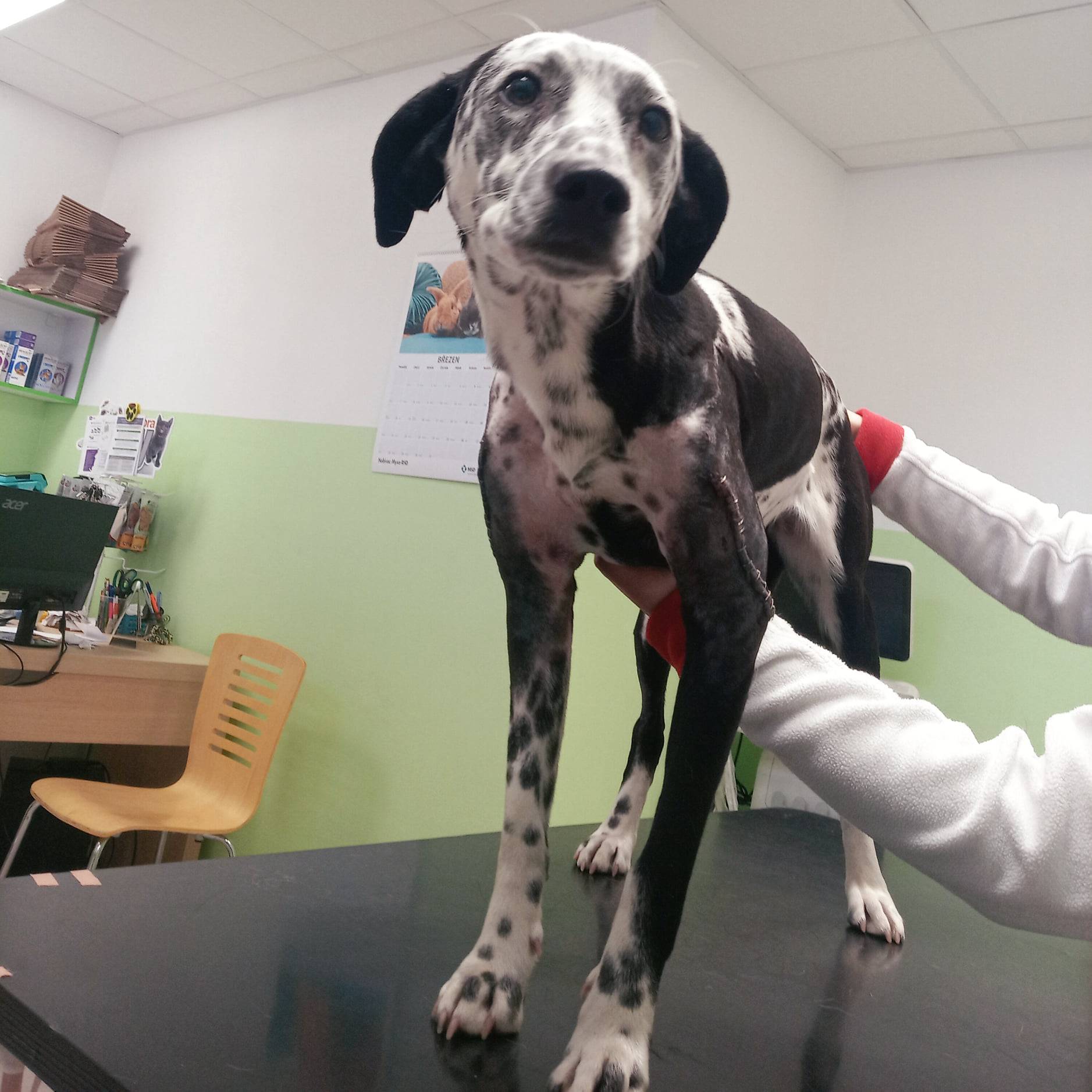 Puntička byla nalezena 18. 3. 2022 sražená autem u silnice v blízkosti vlakového nádraží v Horní Cerekvi. Našla se bezbranně ležící u silnice, kde si Puntičky všimly hodné nálezkyně, které ji pomohly a předaly k nám. My jsme s ní okamžitě vyrazili na veterinární kliniku, kde bylo po vyšetřeních zjištěno, že jsou obě přední nožky zlomené, z toho jedna vícečetně. Puntička zůstala na infuzích s množstvím všemožných meducín.