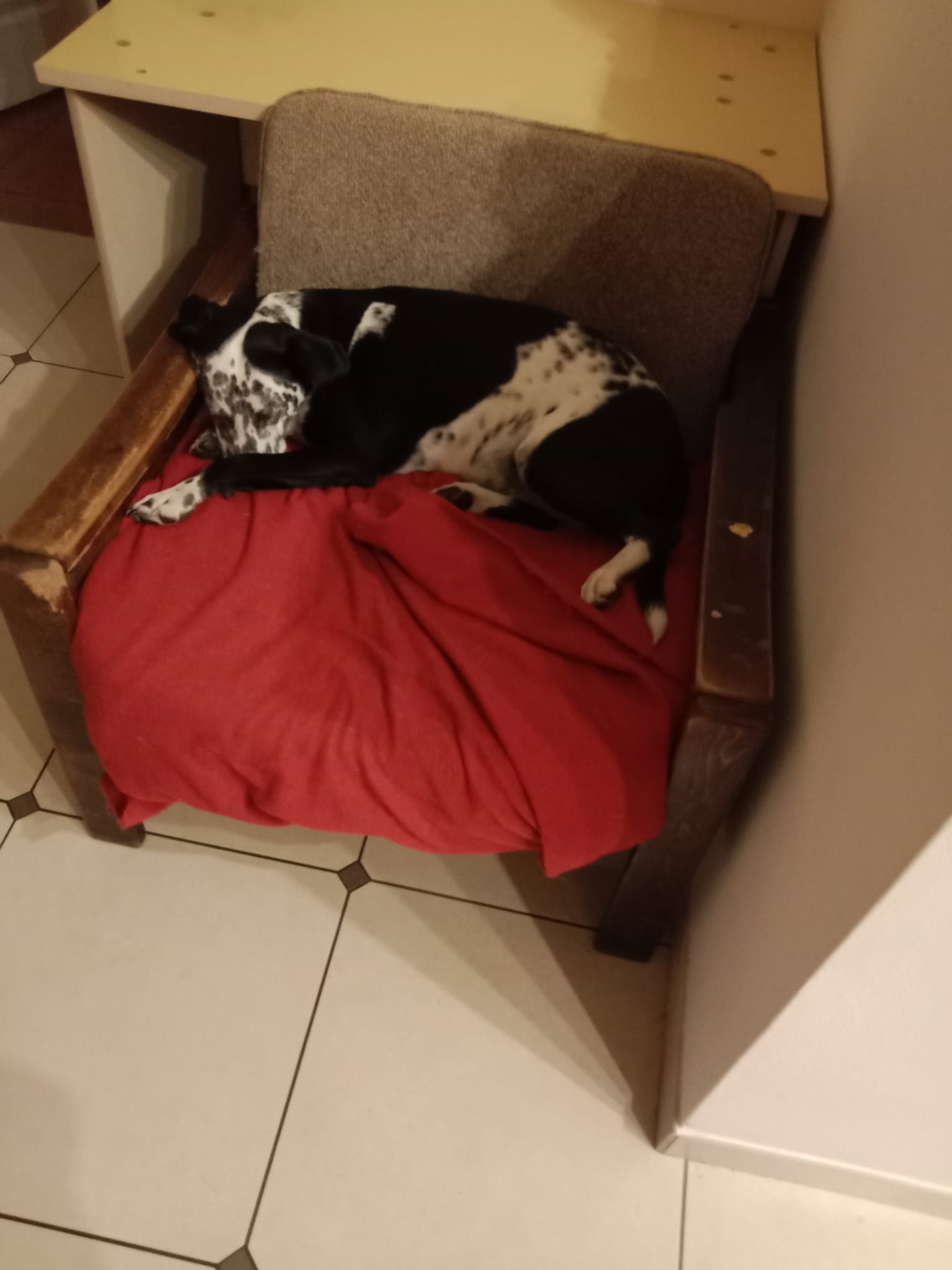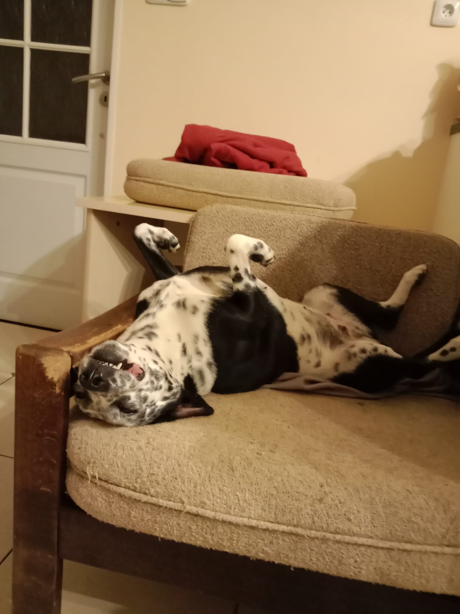 Puntička našla nový domov v Horní Cerekvi. Ošetřující sestřička na vet. klinice si Puntičku zamilovala natolik, že se rozhodla dát jí trvalý domov a my jsme moc rádi, že Puntička tak brzy našla stabilní a milující zázemí, přesně jak potřebuje a jak si zaslouží. Po půl roce už ani trochu není poznat, že měla zlomené obě nožky – miluje běhání a aportování.