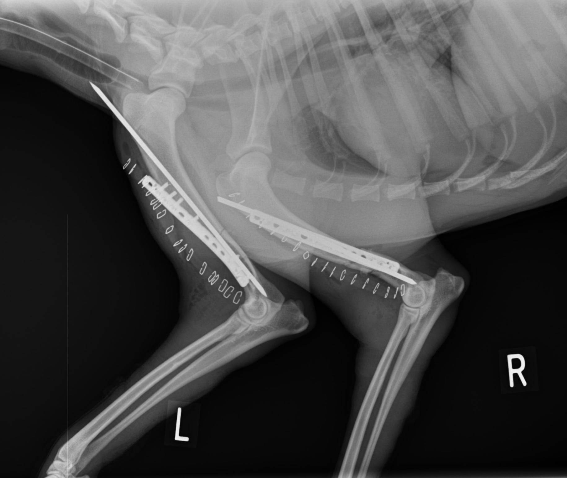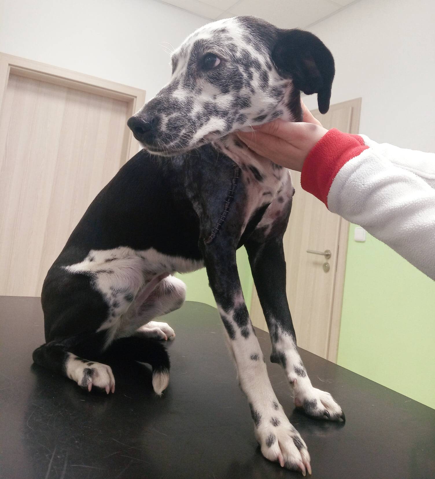Další den byla fenka již mimo šok a otok kolem zlomenin mírně opadl. Puntičce byly tedy obě nohy zoperovány. Operace proběhla zdařile, pan doktor odvedl perfektní práci. Puntička sotva drobátko procitla z narkozy, začala mlátit ocasem, jen co zaslechla lidský hlas. Nyní se má čile k světu, staví se opatrně na nožky a skvěle spolupracuje. Na veterině o ní říkají, že je to velká bojovnice. Má před sebou ještě velký kus cesty, ale všichni víme, že tahle záchrana měla smysl.