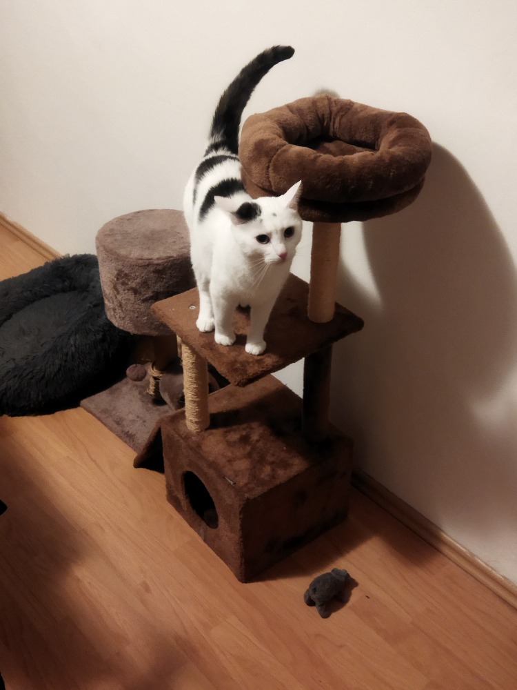 Tonník je asi 4 měsíční kastrovaný kocourek, který byl se svými sourozenci nalezen ve skladovacích prostorech jedné firmy v Pelhřimově. Tonník byl původně svými sourozenci trochu utiskován, nikdy nešel sám k misce, jenom čekal, až na něj něco zbyde. U nás si rychle zvykl a získal potřebné sebevědomí. S trochou trpělivosti to bude brzy mazlivý kocourek. Prošel u nás socializací a je den ode dne lepší. Stejně jako jeho sourozenci miluje peříčka, myšičky a blbnutí s bráškama. Je naučený na kočičí záchod. V novém domově si bude chvilku zvykat na nové lidi a prostředí.
