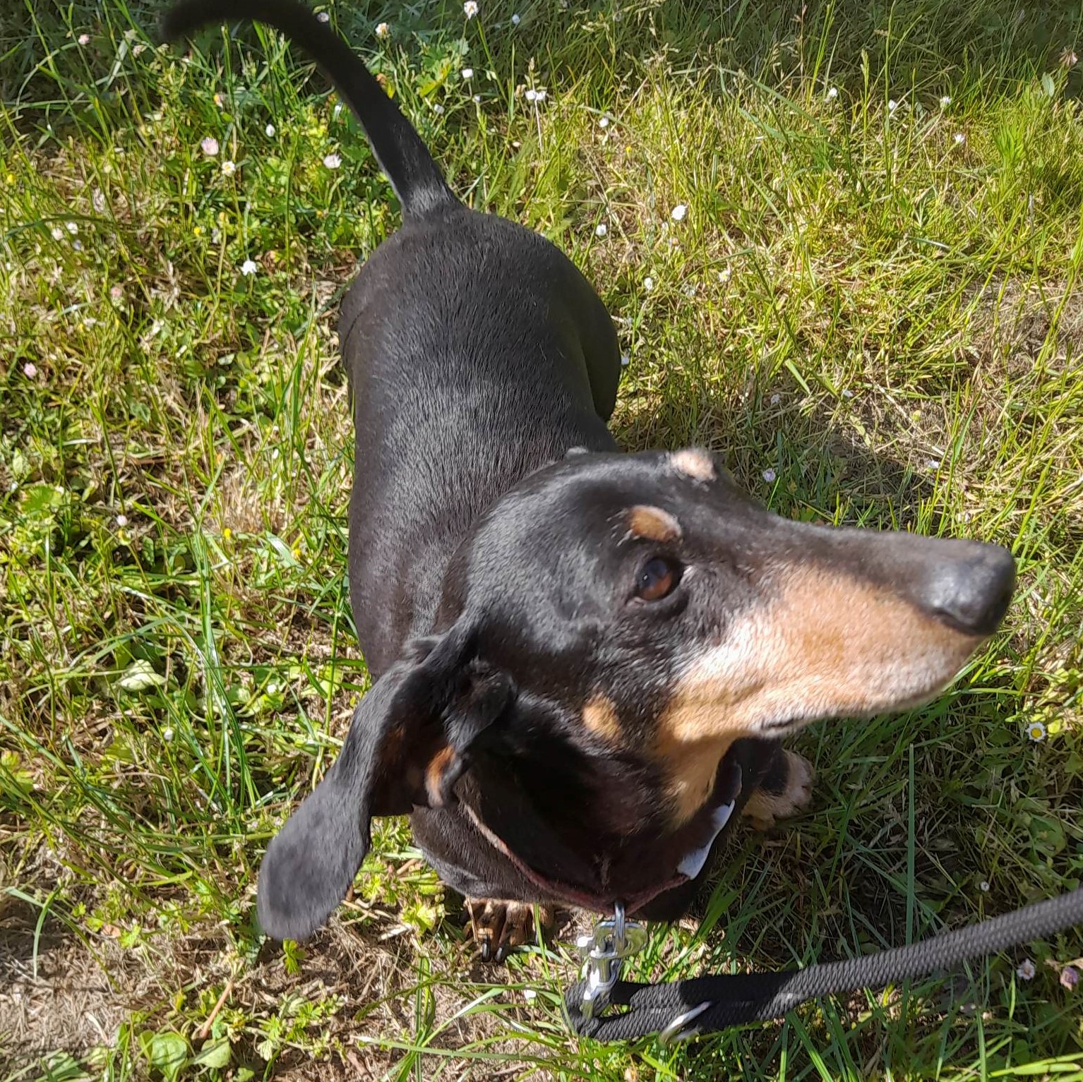 Aaron je 9 letý kastrovaný kříženec jezevčíka. Aaron je bezvadný a milý psík, má moc rád lidi a děti, je skvělých společníkem, který zapadne do každé rodiny. Bez problémů se snáší s pejsky. Kočičky vnímá jako kořist. Procházky má moc rád, v lese by se ale pustil po stopě zvěře, je tedy nutné mít ho na vodítku.