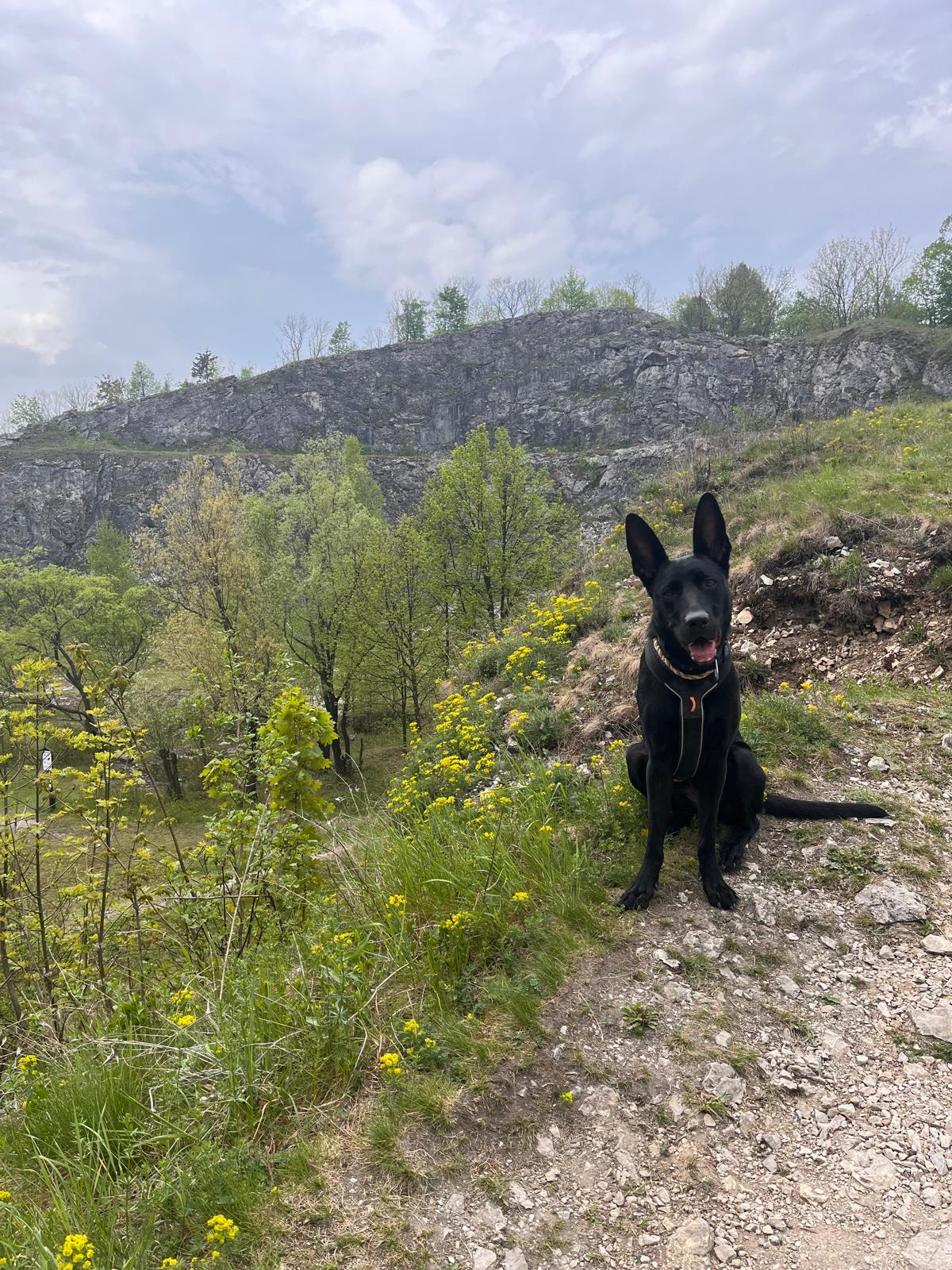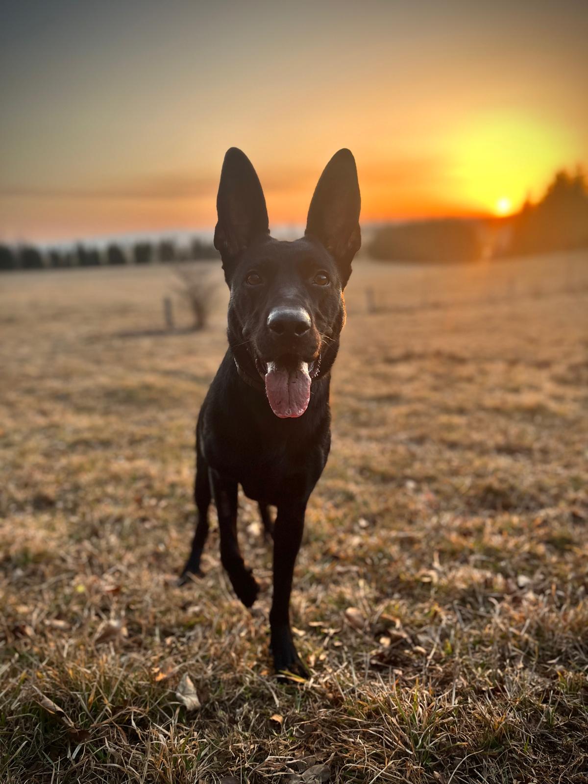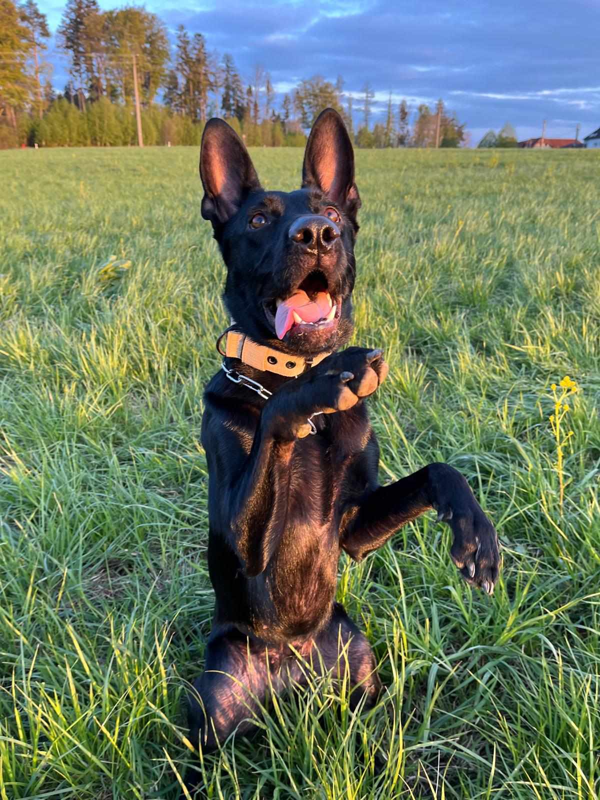 Ajša je roční kříženka německého ovčáka. Váží 22 kg. Ajša je smršť nevybité energie. Zpočátku se strašně bála a pouštěla na nás hrůzu. Podobně venku na cizí lidi a pejsky. Když ale zjistila, že jí dáváme dobroty, chodíme ven a máme ji rádi, proměnila se do úžasné, mazlivé a radostné fenečky. Zatím je u nás krátce a musí ještě dohnat socializaci, omrknout, že jí nikde nic nehrozí, aby se přestala bát a uvolnila se.