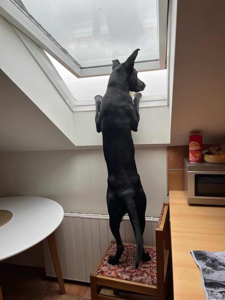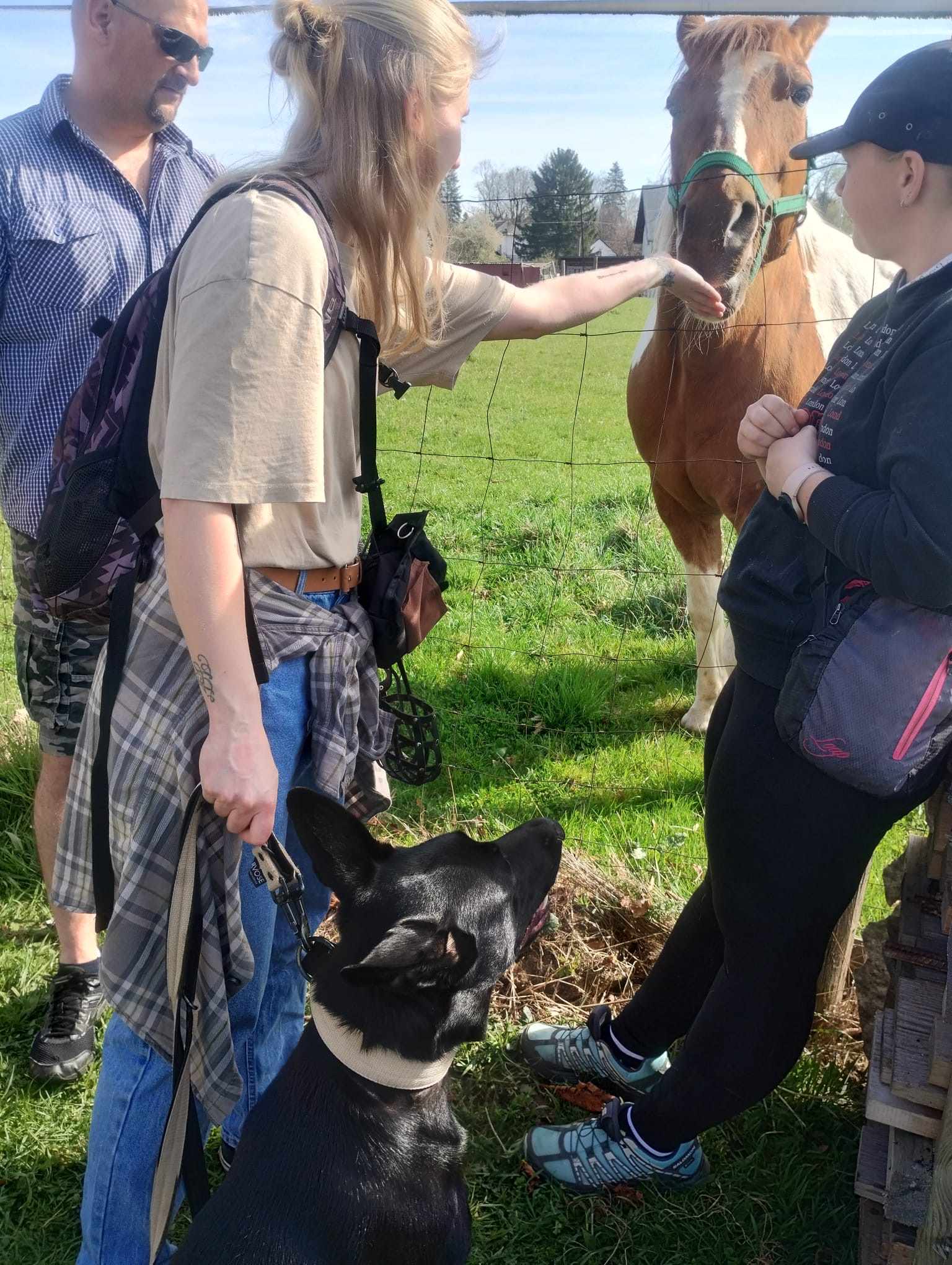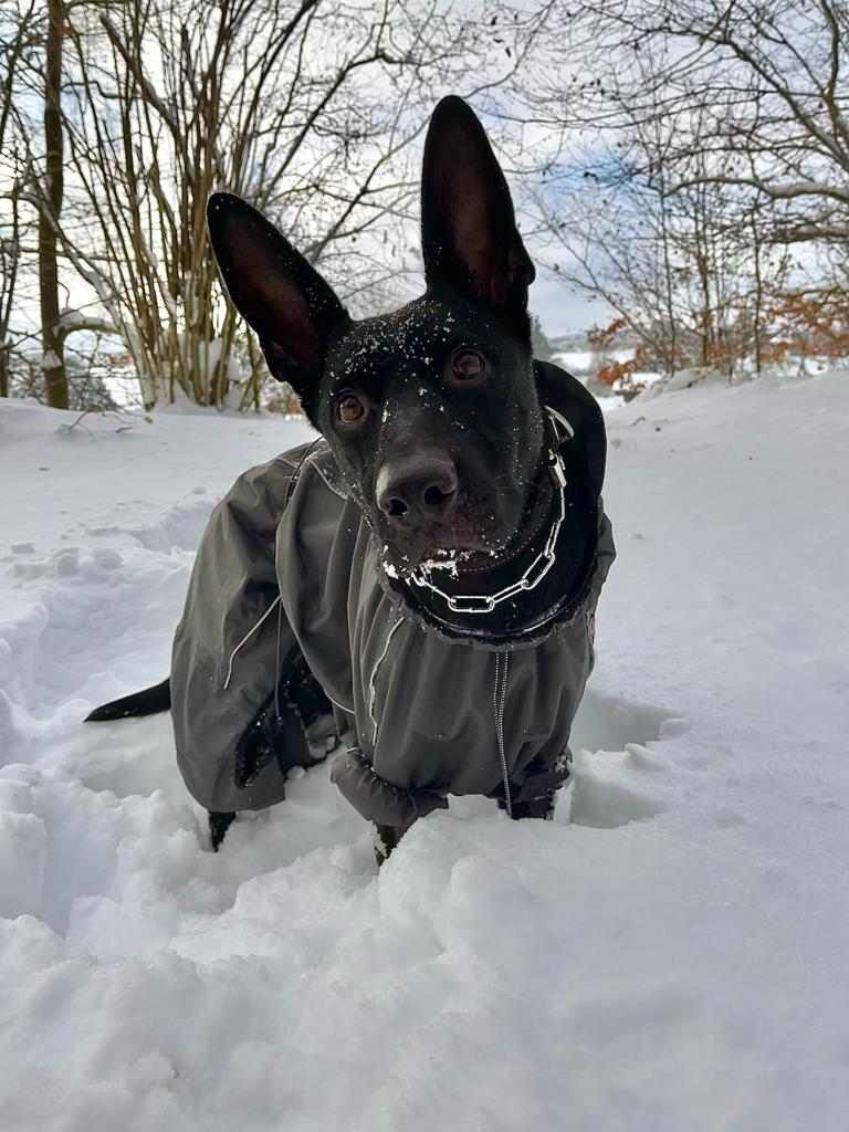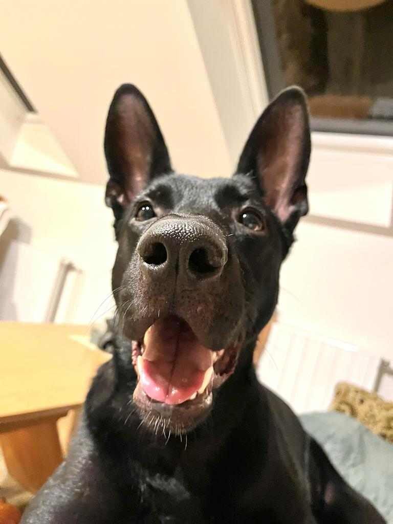 Ajša je roční kříženka německého ovčáka. Váží 22 kg. Ajša je smršť nevybité energie. Zpočátku se strašně bála a pouštěla na nás hrůzu. Podobně venku na cizí lidi a pejsky. Když ale zjistila, že jí dáváme dobroty, chodíme ven a máme ji rádi, proměnila se do úžasné, mazlivé a radostné fenečky. Zatím je u nás krátce a musí ještě dohnat socializaci, omrknout, že jí nikde nic nehrozí, aby se přestala bát a uvolnila se.