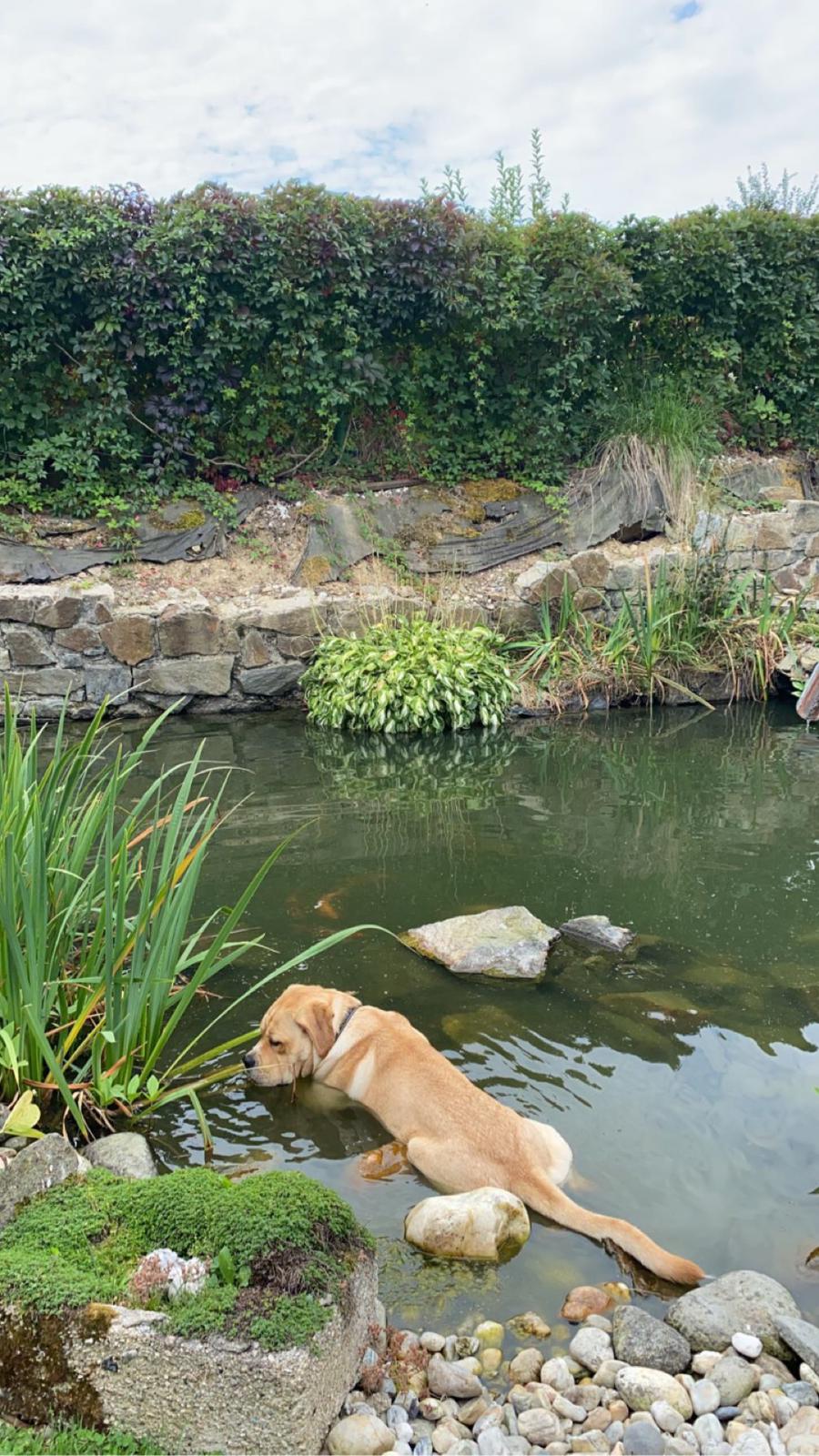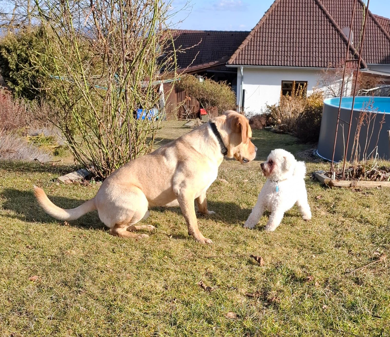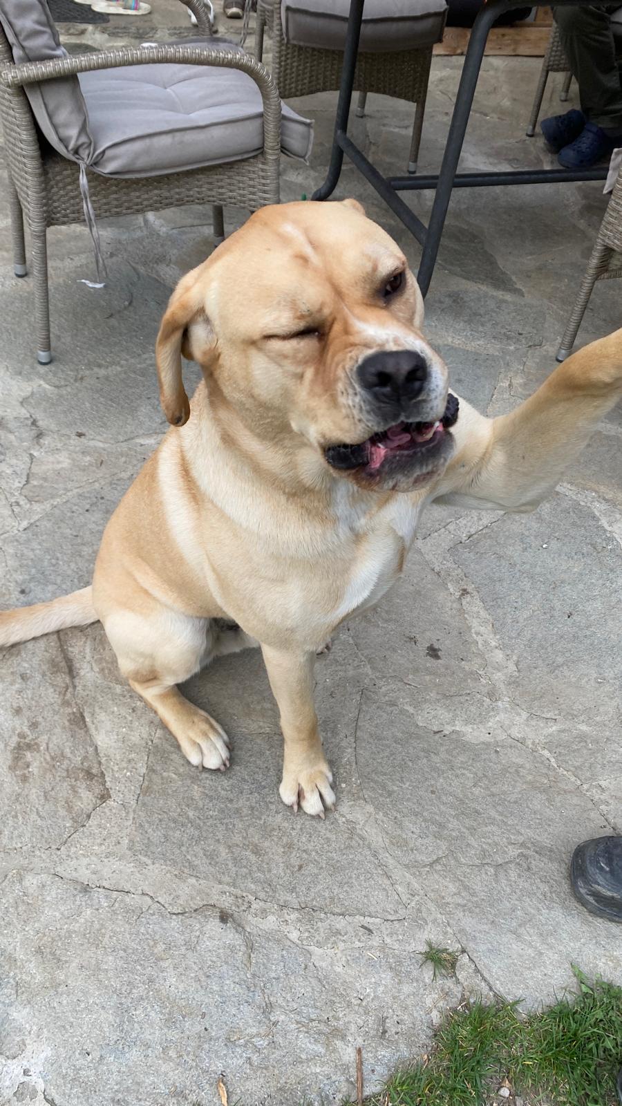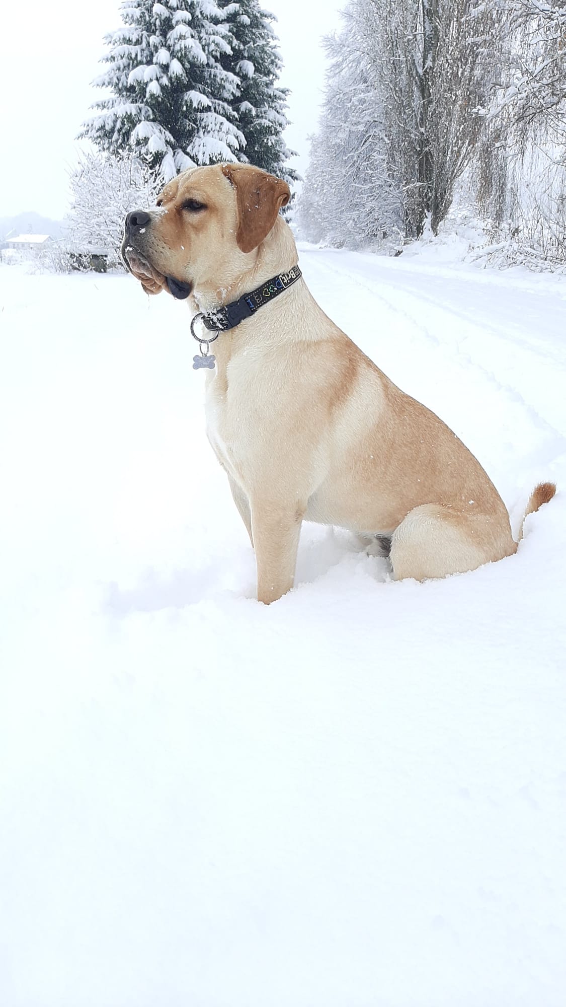 Bart je 9 měsíční kříženec labradora, váží 27 kg. Bart miluje lidi a děti, na potkání každého vítá, olizuje a lehá si na záda. Se psy vychází po štěněcím – zvědavě a přátelsky. Na vodítku netahá, spíš se občas motá dokola, ale rychle se učí. Bart je naprosto hodný pes, učenlivý, pohodový a pole neorané.