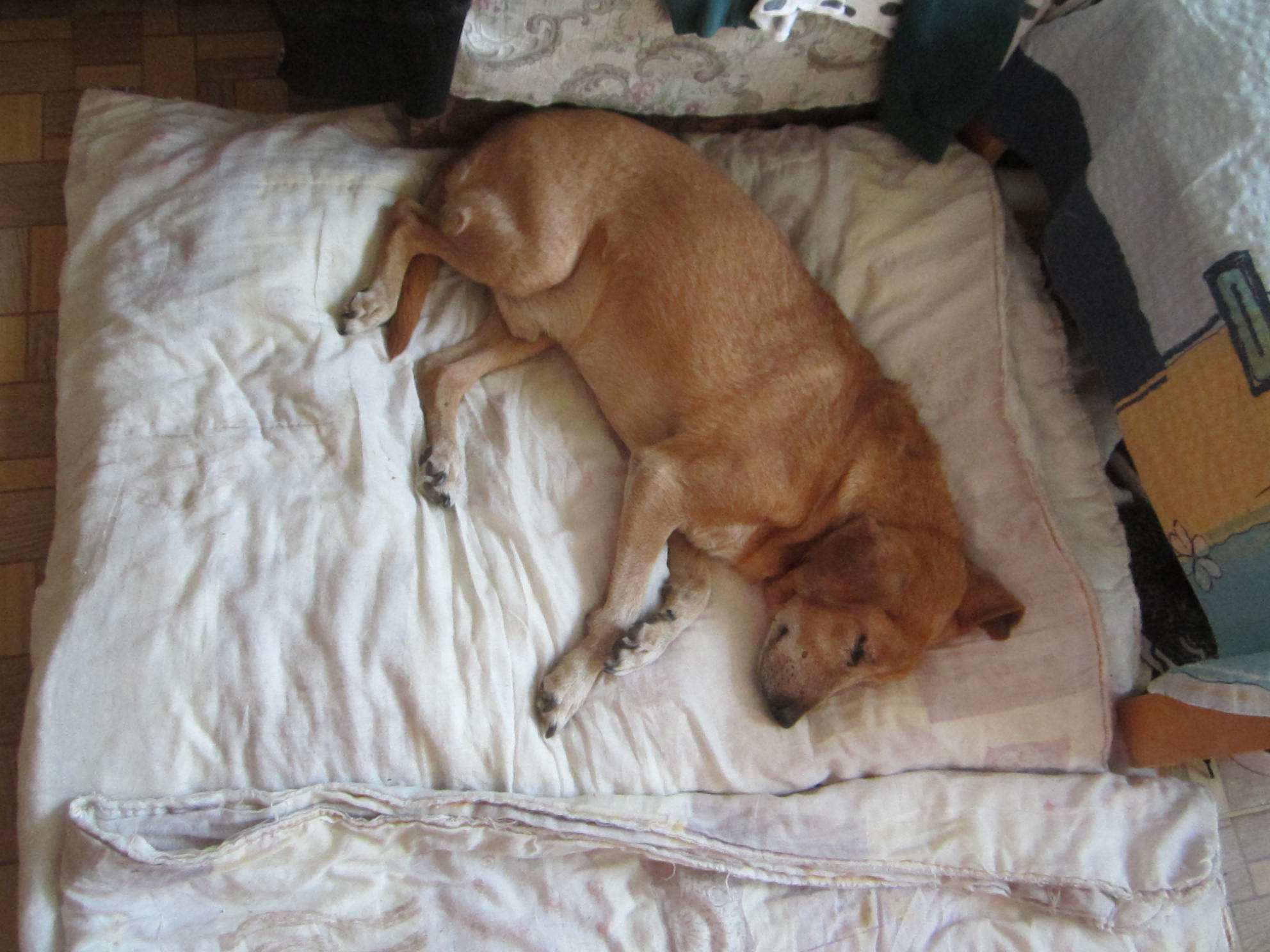 Bobíšek byl odchycen ve Vyškově a nikdo se o něj nepřihlásil. Zdejší útulek nedisponuje jiným zařízením než kotci a pejsek zde zoufale štěkal, nastydl, ochraptěl a proto nás pracovníci požádali o přijetí starouška do domácí péče. K nám přišel jako by zde byl odjakživa, obešel kuchyň, vyskočil na gauč a spokojeně usnul.