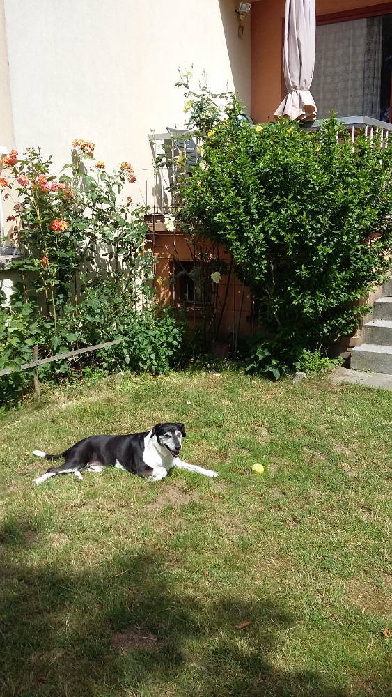 V novém domově tráví čas nejraději na gauči nebo v křesle a pacička se jí v klidném prostředí krásně zahojila. Pánečci musí jen dávat pozor, aby ji nezašlápli, jelikož se jim stále drží u nohou a nejraději je, když má oba dva doma a na dohled.