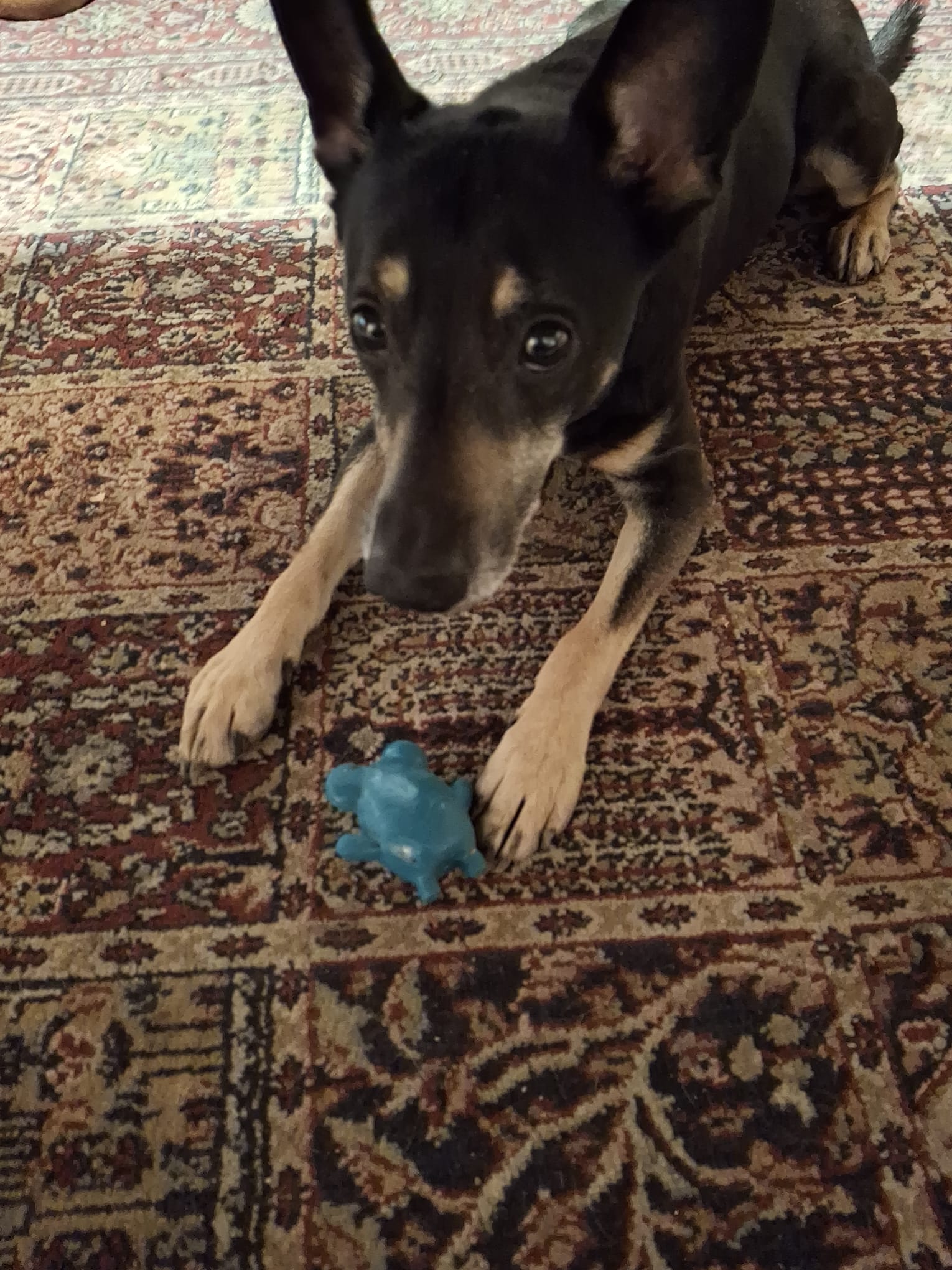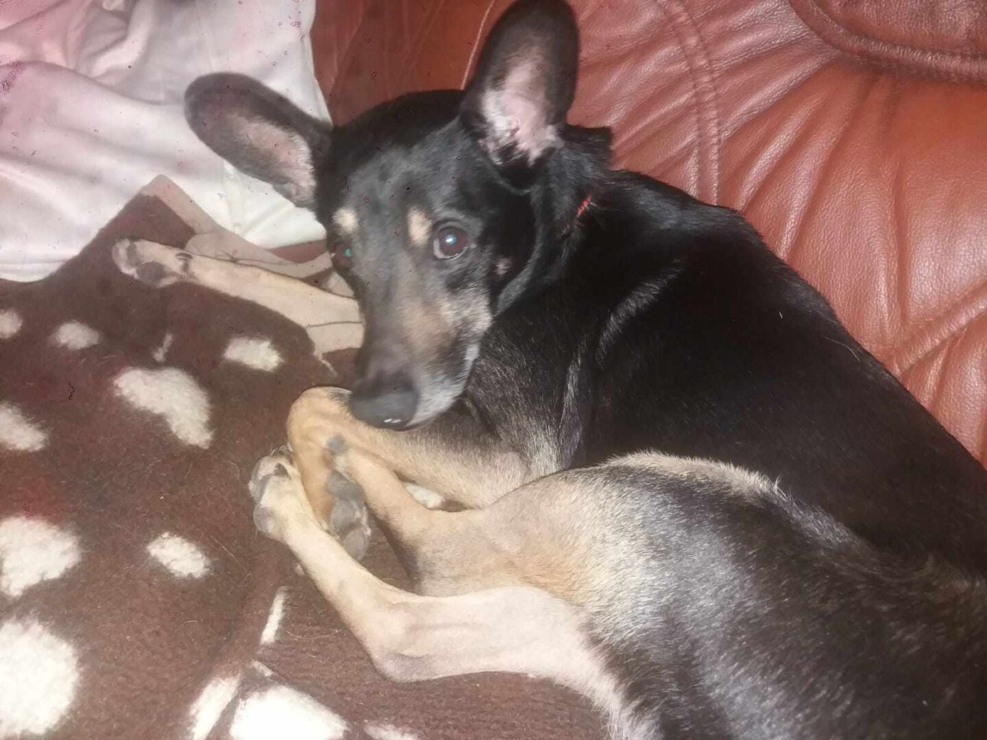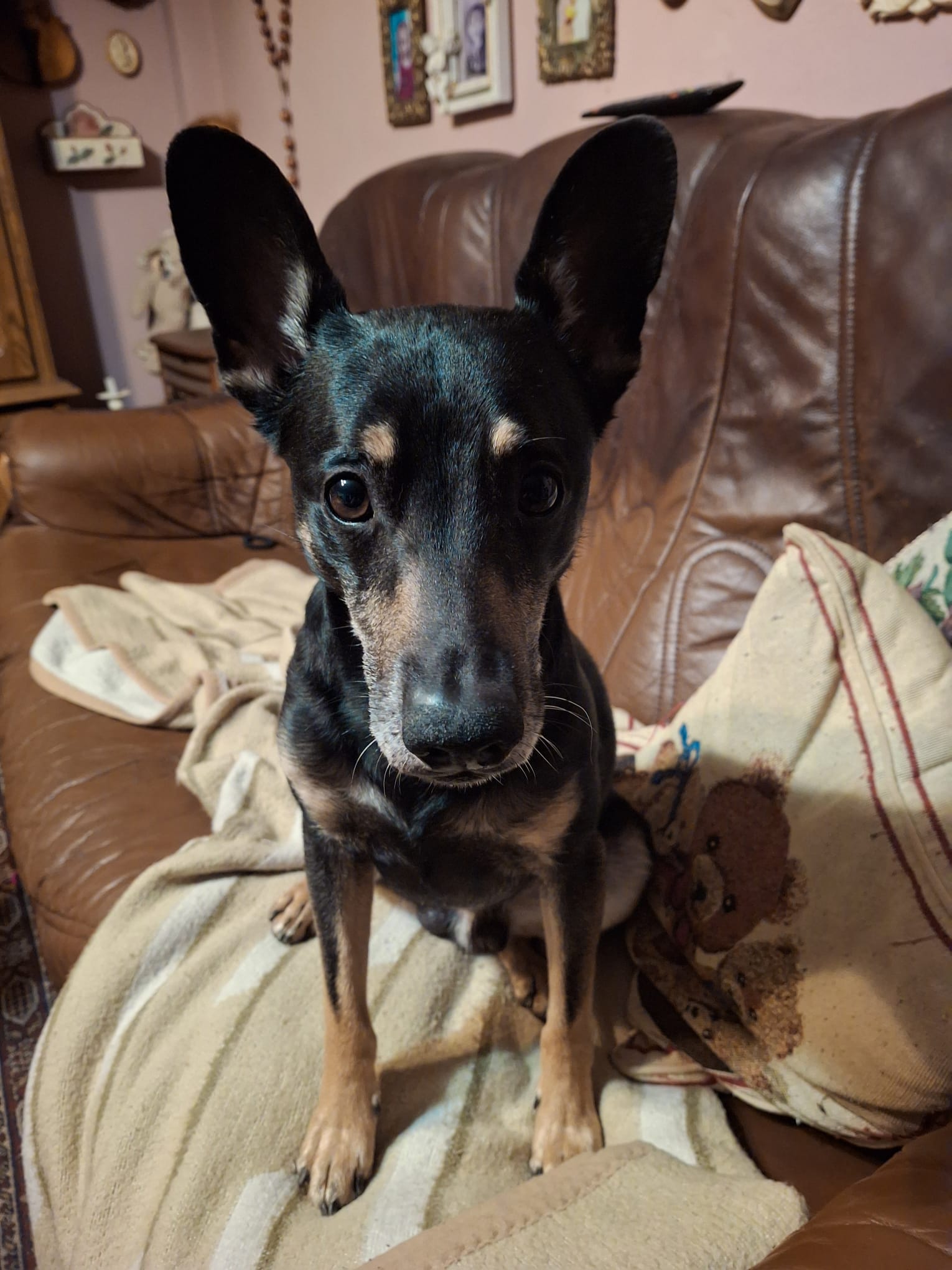 Ferdinand je 6 letý kříženec krysaříka. Váží 7 kg. Je to malý atlet na vysokých nožičkách. Ferdík je malý závisláček…nejvíc ze všeho miluje mazlení. Z toho důvodu ani sám nikam nejde, drží se páníčkovi na dohled, maximálně se zapomene u myší díry na louce. Umí chodit i na vodítku, i když by se to dalo vypilovat do estetičtější podoby. Ferdík zůstává nerad sám. S pejsky a kočičkami se snese hezky, ale je někdy trošku hrrr, všude se plete, panikaří, když na pár minut odejdu atd., takže se musí korigovat, aby ostatním pejskům nelezl na nervy.