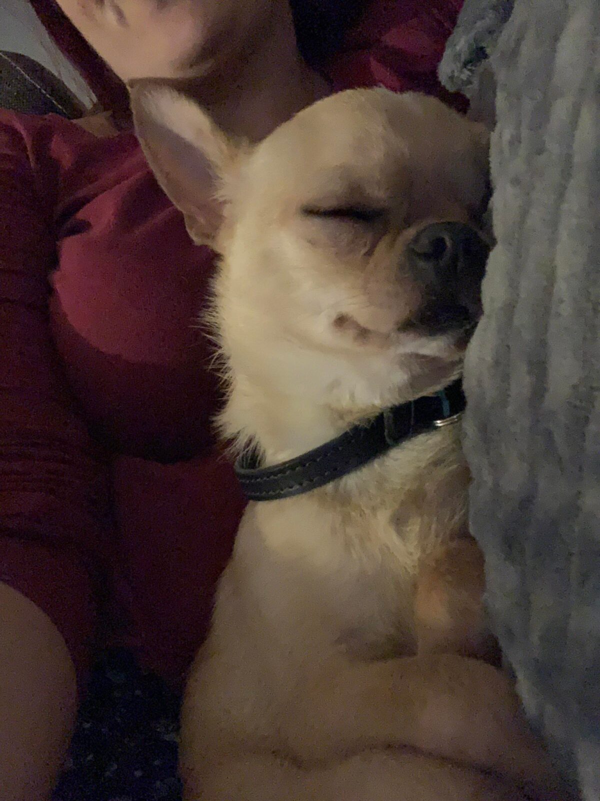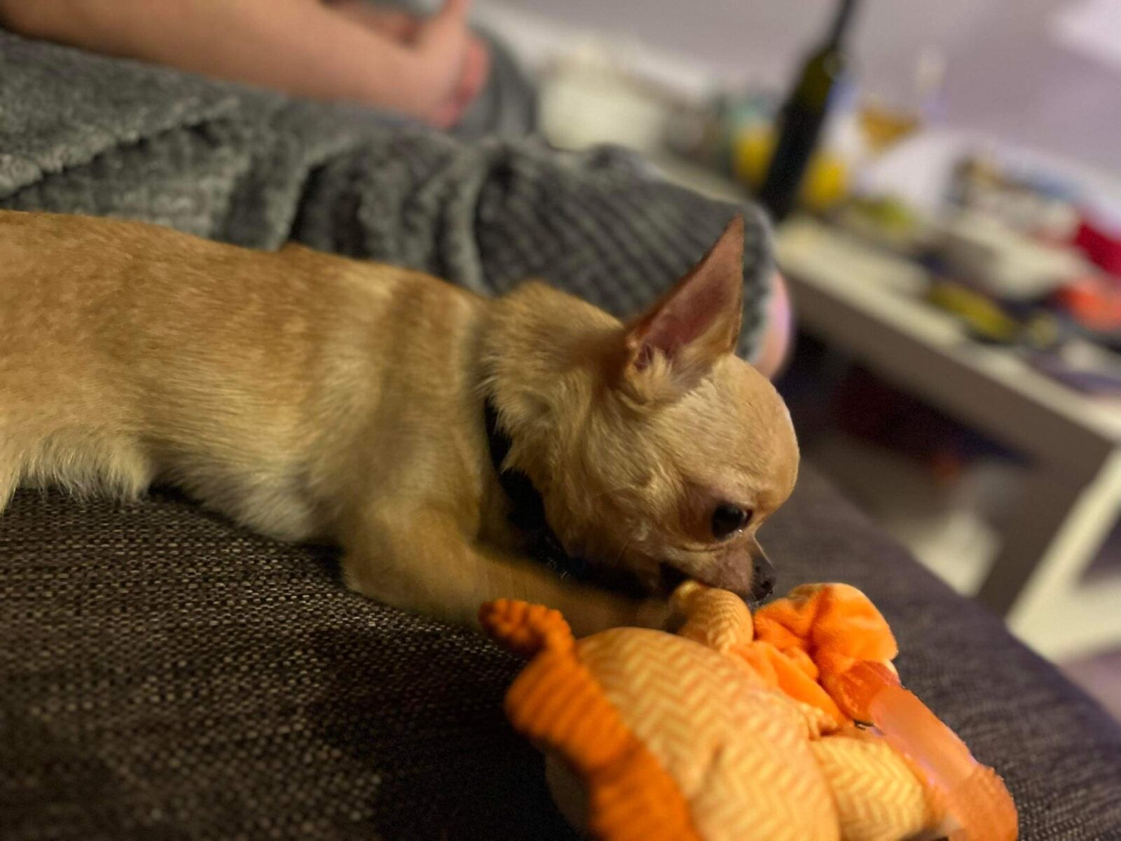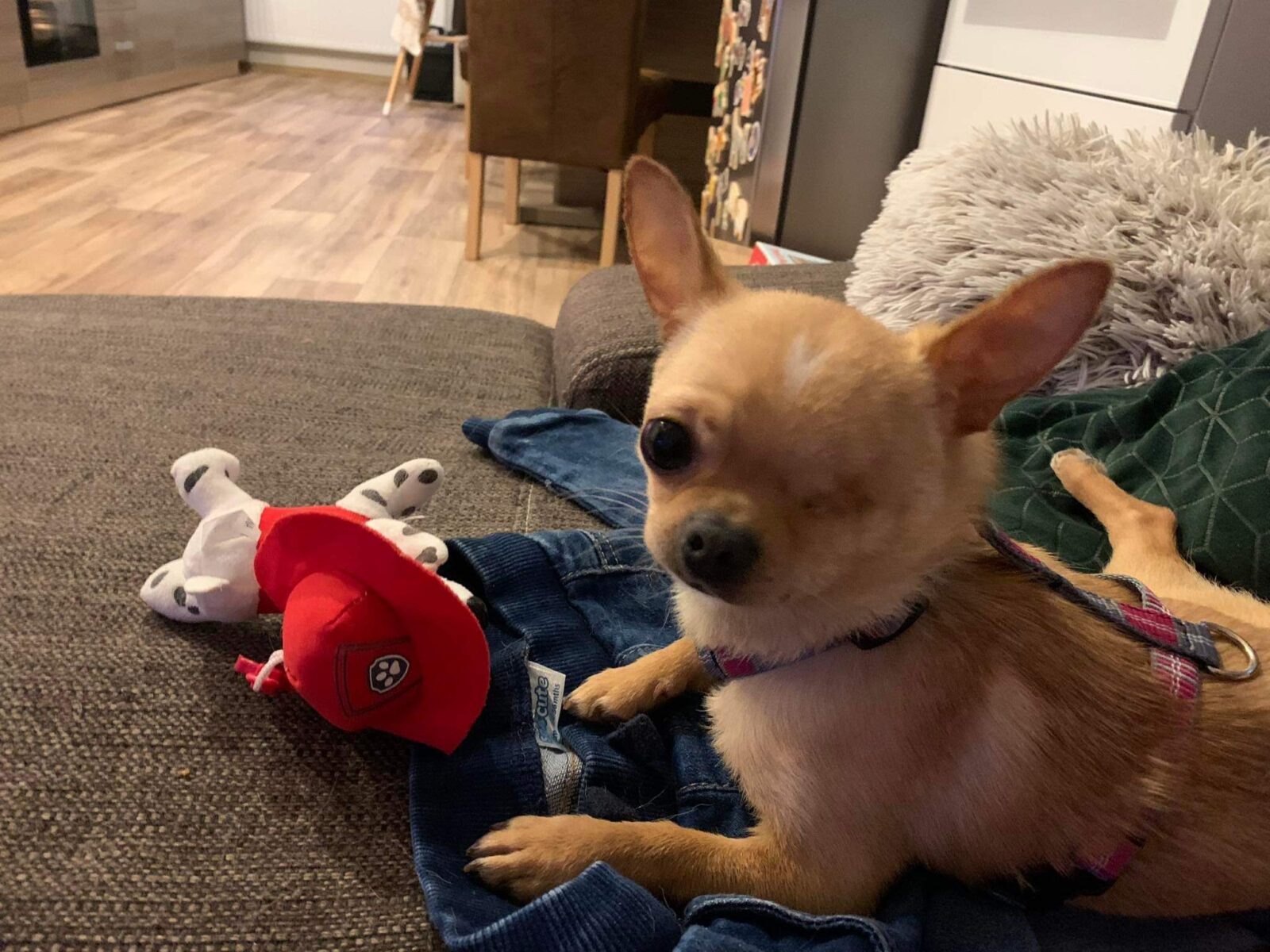 Gucci je asi roční kastrovaný kříženec čivavy. Váží ani ne 2 kg, je to opravdu drobeček. Lidi bezmezně miluje, jakmile si získáte jeho důvěru, bude vás naplno zahrnovat láskou každičký den. Mazlením a hraním by mohl trávit celé hodiny, je to malý neposeda. Při přijetí k nám nic neuměl, horko těžko zvládal chodit na vodítku, vše se ale postupně učí a hledá někoho, kdo s ním bude dál pokračovat v socializaci a výcviku. V cizím prostředí je zatím bojácný a lekavý, vodítko je tak při venčení nutností. Doma je Gucci hodný, tichý a čistotný, jako bonus vás naučí skvěle uklízet, rád totiž kouše cokoliv, co se mu dostane do tlapek. Na psí kamarády si dovoluje, vhodný je tedy k jinému psovi pouze pokud je pes naprostý flegmatik a páníček již zkušenější, kočičí kamarády prohání. Není to pejsek vhodný jako hračka pro děti ani jako doplněk.