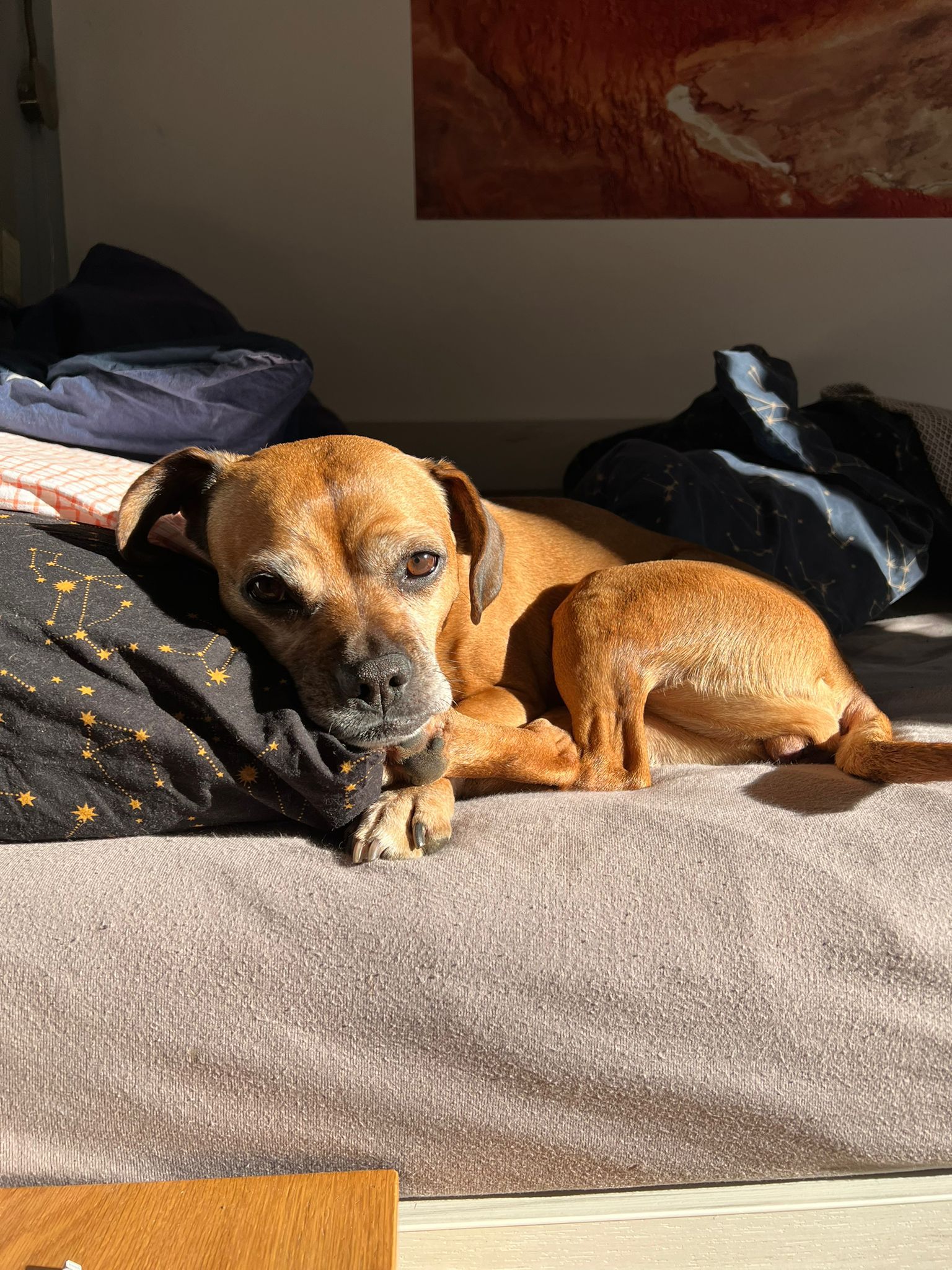 Jane je 4 letá kříženka buldočka. Váží 8 kg. Jane je přátelská fenka, se kterou u nás dosud nebyl sebemenší problém, je nejhodnější.