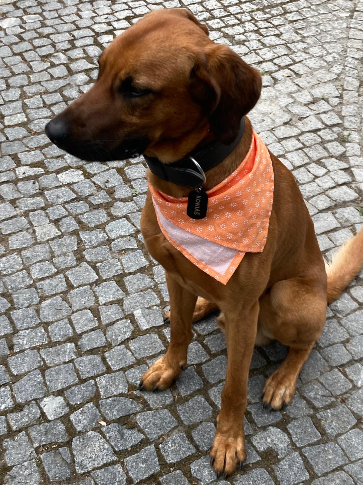 Koniáš je 5 měsíční štěně, možná kříženec ridgebacka. Váží 15 kg, v dospělosti doroste odhadem 25 až 30 kg. Koniáš je živý, veselý, zvídavý pejsek. Má energie na rozdávání, proto bude nadšený z každé aktivity, kterou budete moct společně podniknout. Hledá k sobě parťáka, který bude na stejné vlně, jen tak z něj může být spokojený pes. Jako gaučáka si zkrátka upřímně vyberte spíše jiného pejska, Koniášek potřebuje zaměstnat tělo i hlavičku každičký den. Ačkoliv je výchovou nepolíbený, dohání vše velmi rychle, je to chytrý a učenlivý pes a dělá nám svými pokroky radost. Například samota mu ale činí stále problém, je tedy potřeba počítat s tím, že bez trpělivosti a tréninku to nepůjde. Koniášek je přátelský k lidem i k dětem, také s pejsky je v pohodě, obzvlášť, když s nimi může řádit.