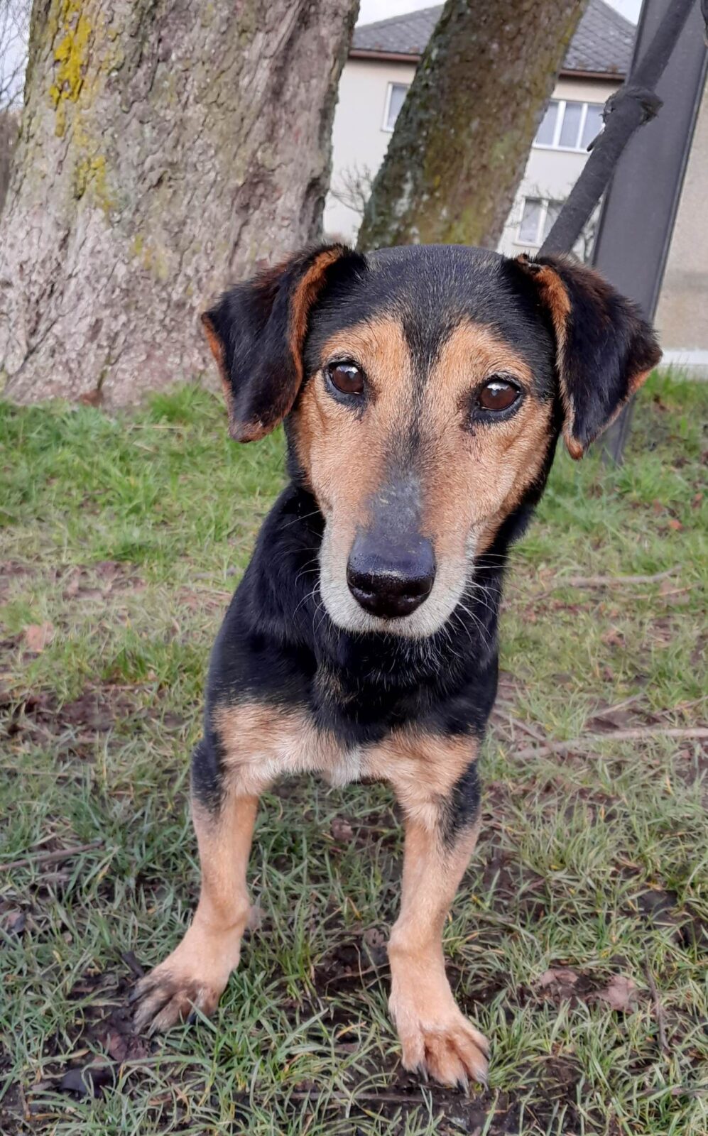 Ludva je asi 12 letý kříženec jezevčíka, váží 9 kg, má delší nožky. Ludva je naprosto bezproblémový pejsek. Je moc hodný, klidný a mazlivý, je vhodný i k dětem. Venku je veselý a zvládne pěknou procházku. Bez problémů vychází se psy a fenami. Doma převážně spí, v klidu čeká na příchod páníčka. Ludva bere léky na srdce.