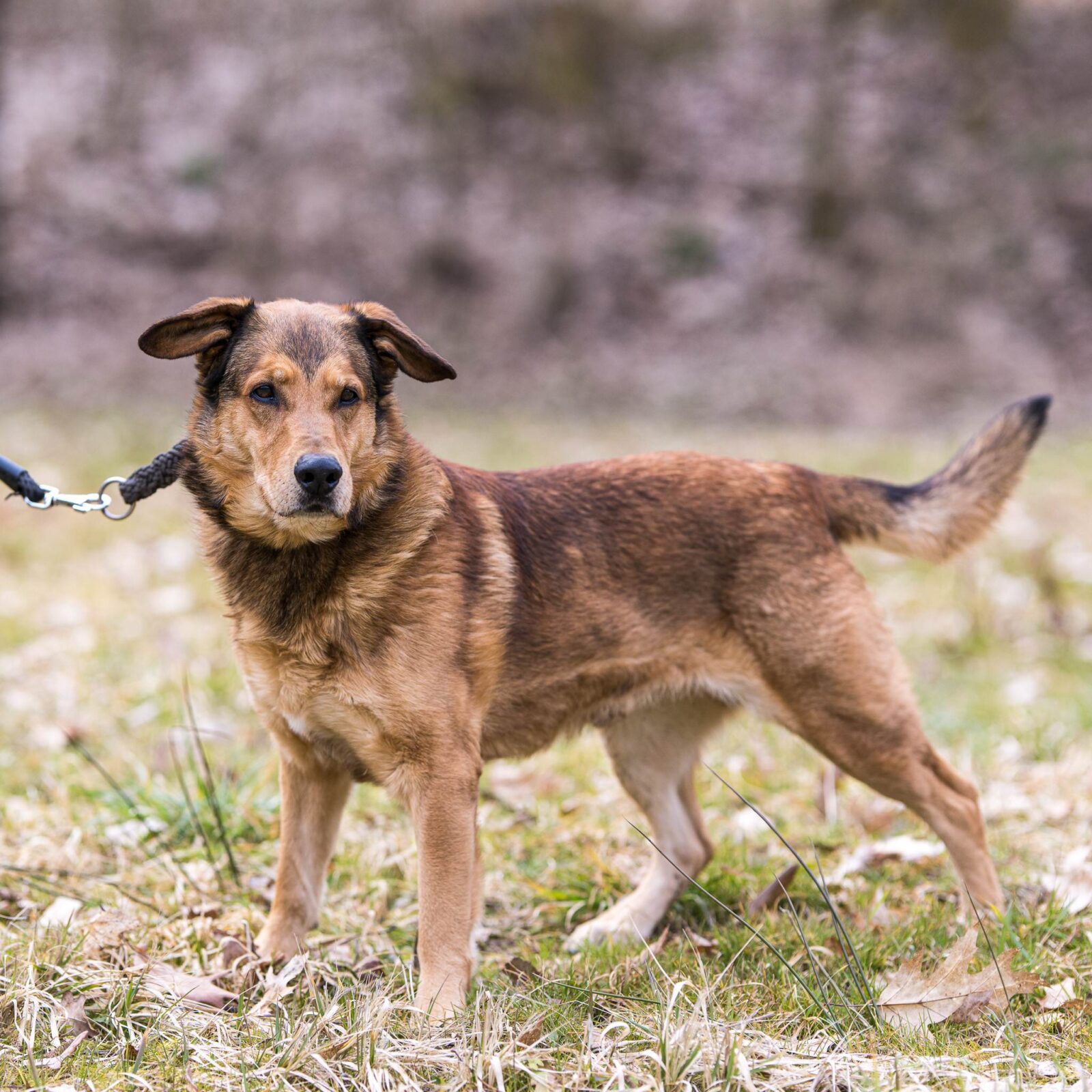 Matess je 10 letý kříženec německého ovčáka. Je to klidnější psík, který si rád užívá každou procházku a od svého člověka se nevzdaluje. Dobře poslouchá na přivolání, takže může v přírodě chodit i volně. Naučil se u nás ignorovat kolemjdoucí, cyklisty, auta a většinu psů, což mu v minulosti činilo problém. Matess má moc rád fenečky a v jejich společnosti doslova ožívá. Psy příliš nemusí, kočičky má rád. V předchozím domově se mu nedostalo žádné výchovy ani socializace, proto není příliš zvyklý na manipulaci. Ta mu činí problém a nebojí se zavrčet, ale při těchto situacích stačí použít náhubek. Jinak je to oddaný parťák, který s vámi bude trávit čas kdekoliv – doma, na zahradě či na procházce. Ve svém věku by si již domov velmi zasloužil, aby nemusel trávit další roky za mřížemi.