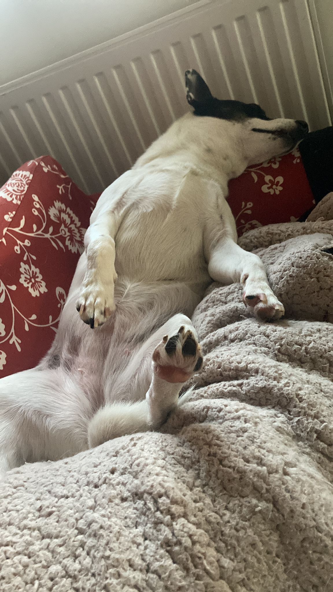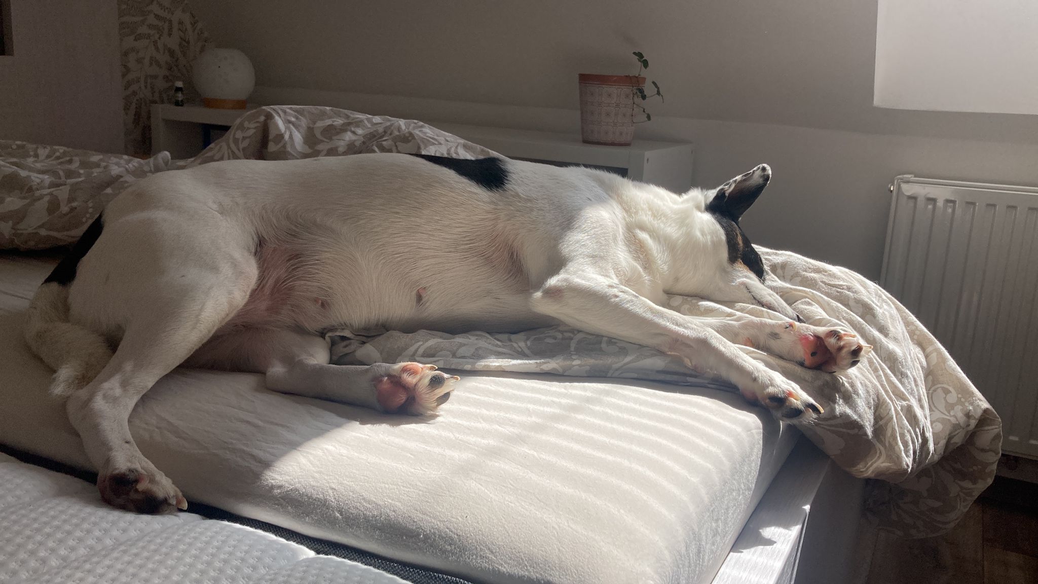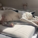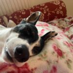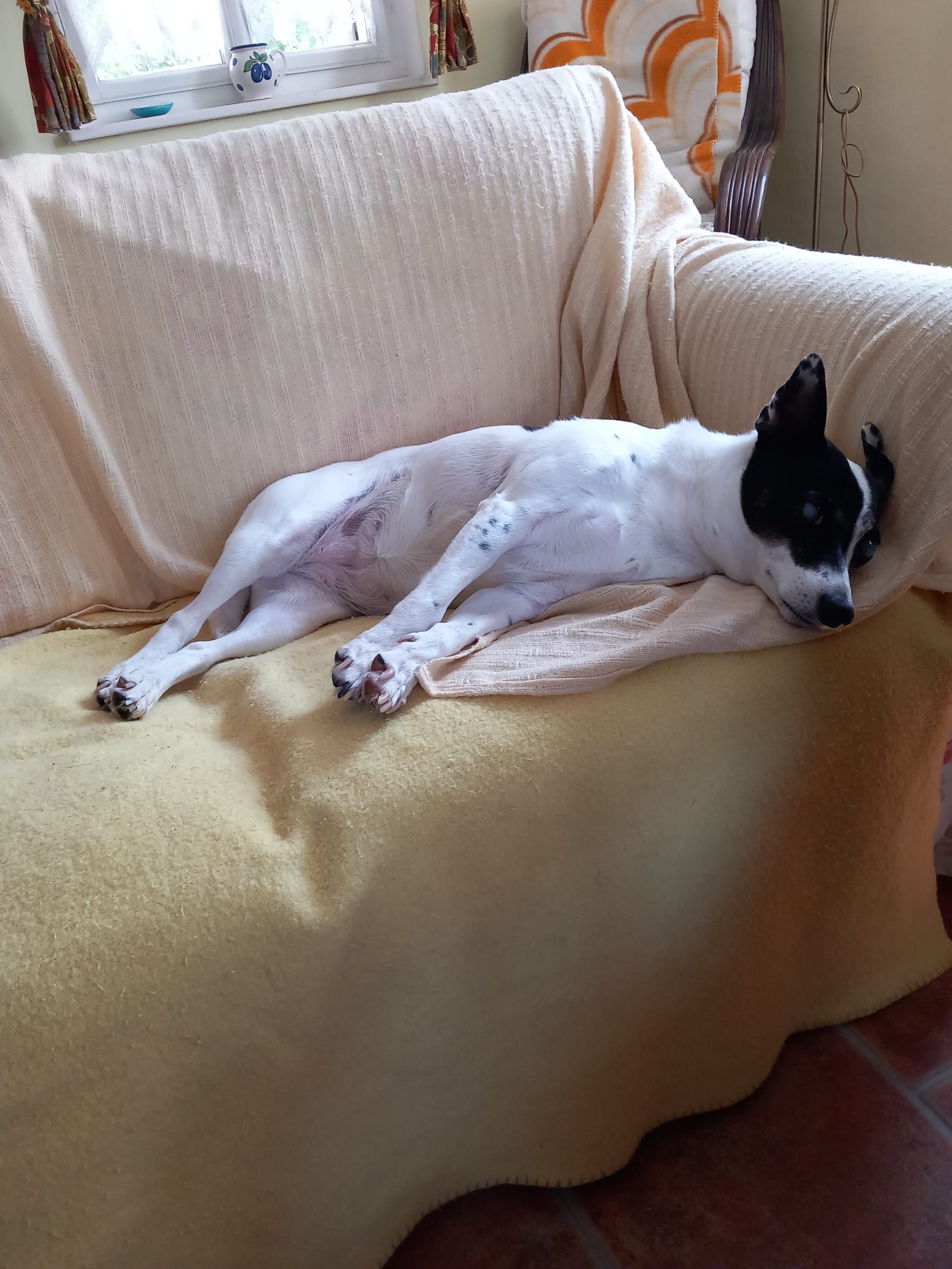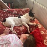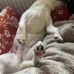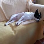 Hodiny a hodiny si hraje se psími kamarády, ke hře přesvědčí mlaďase s staroušky. Už si chodí hrát i s lidmi. Miluje spaní přes jiného psa/psy.