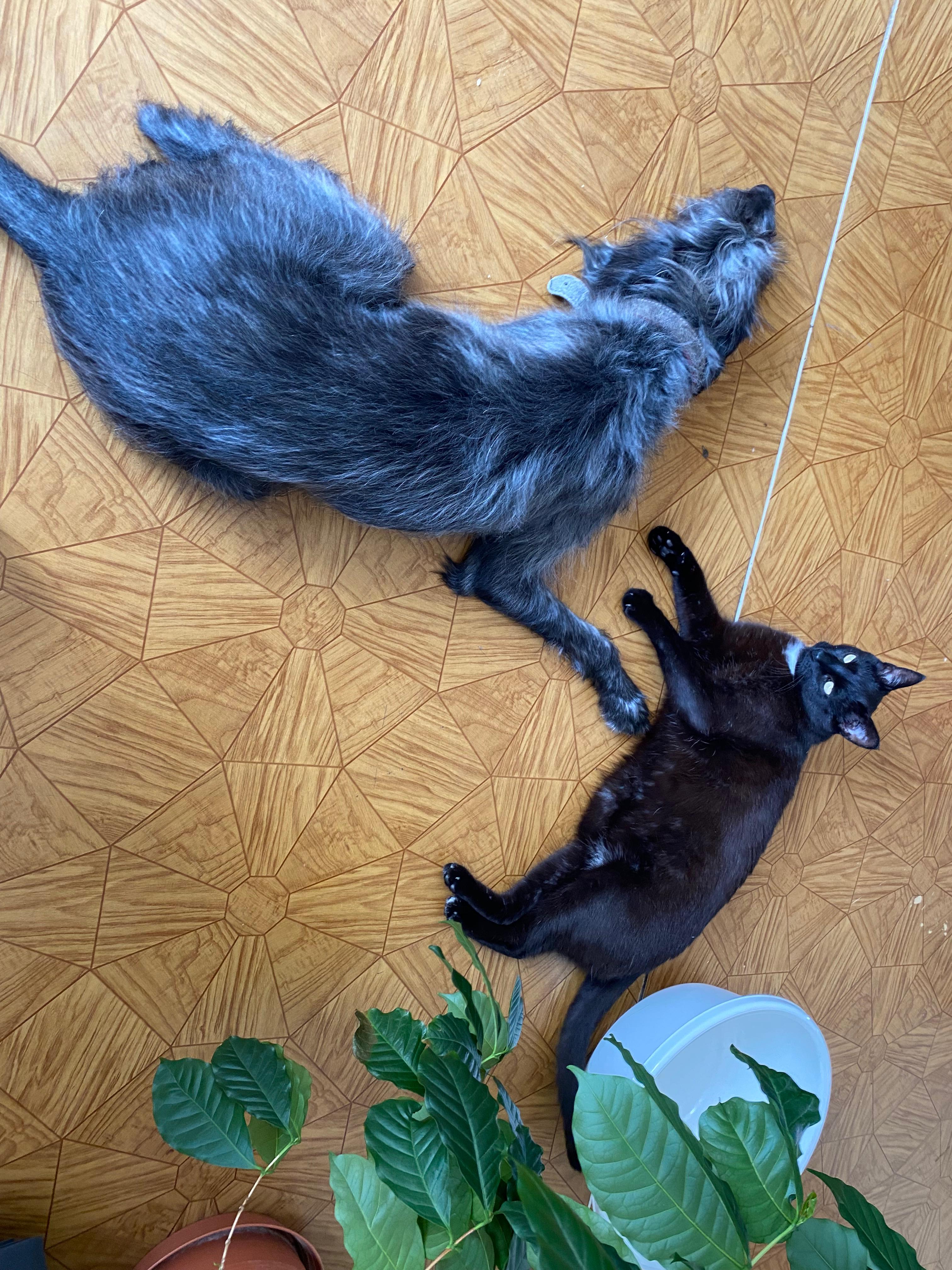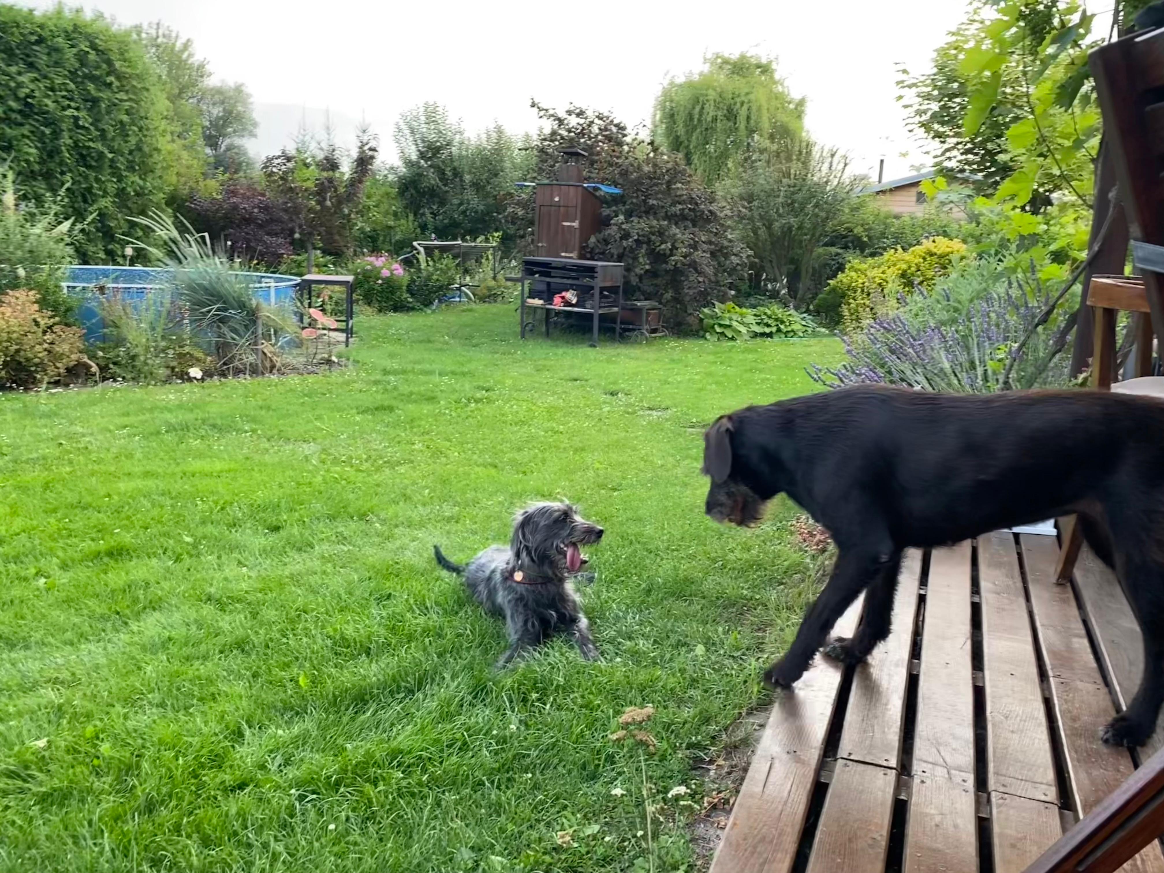 Bianka našla nový domov u mladého páru v bytě na okraji Prahy. Umí už několik povelů, autem jezdí na pohodu rozvalená na svém místě, na venčení si hezky říká a s kocourem Mikešem jsou nerozlučná dvojka.