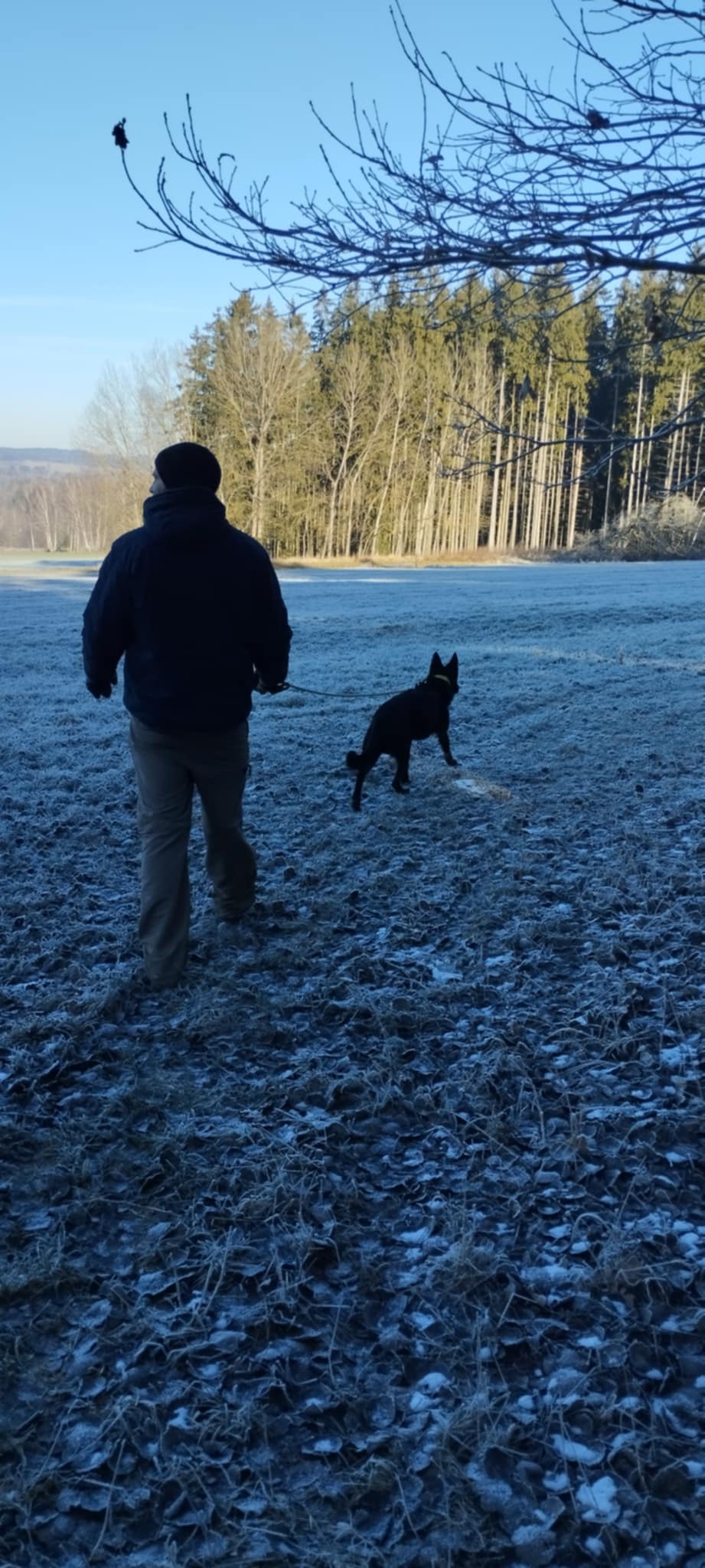 Shadow je asi 3 letý kříženec německého ovčáka. Váží 23 kg. Shadow je aktivní, hodný, mazlivý a milý pes, je vhodný i k dětem. Potřebuje spoustu pohybu a doplnit základní výcvik. První dny bylo zřejmé, že předchozí život byl v kotci nebo na řetězu, protože venku zpočátku vůbec nevěděl, co s nenadálým prostorem a možností rychlého pohybu. Chůzi na vodítku zvládá, ale potřebuje ještě vylepšit. Fenečky má rád, i vyrovnané pejsky, seznámení ale bere hodně překotně, musíme ho korigovat. Ze strachu preventivně reaguje na jiné psy agresí, ale pokud mu to pán důrazně zatrhne, brzy toho nechá. Domníváme se, že prvního psa ve svém dospělém životě viděl u nás.