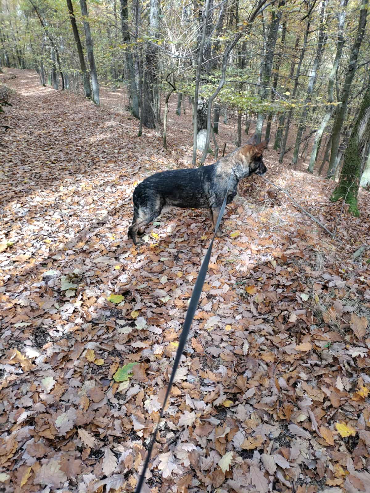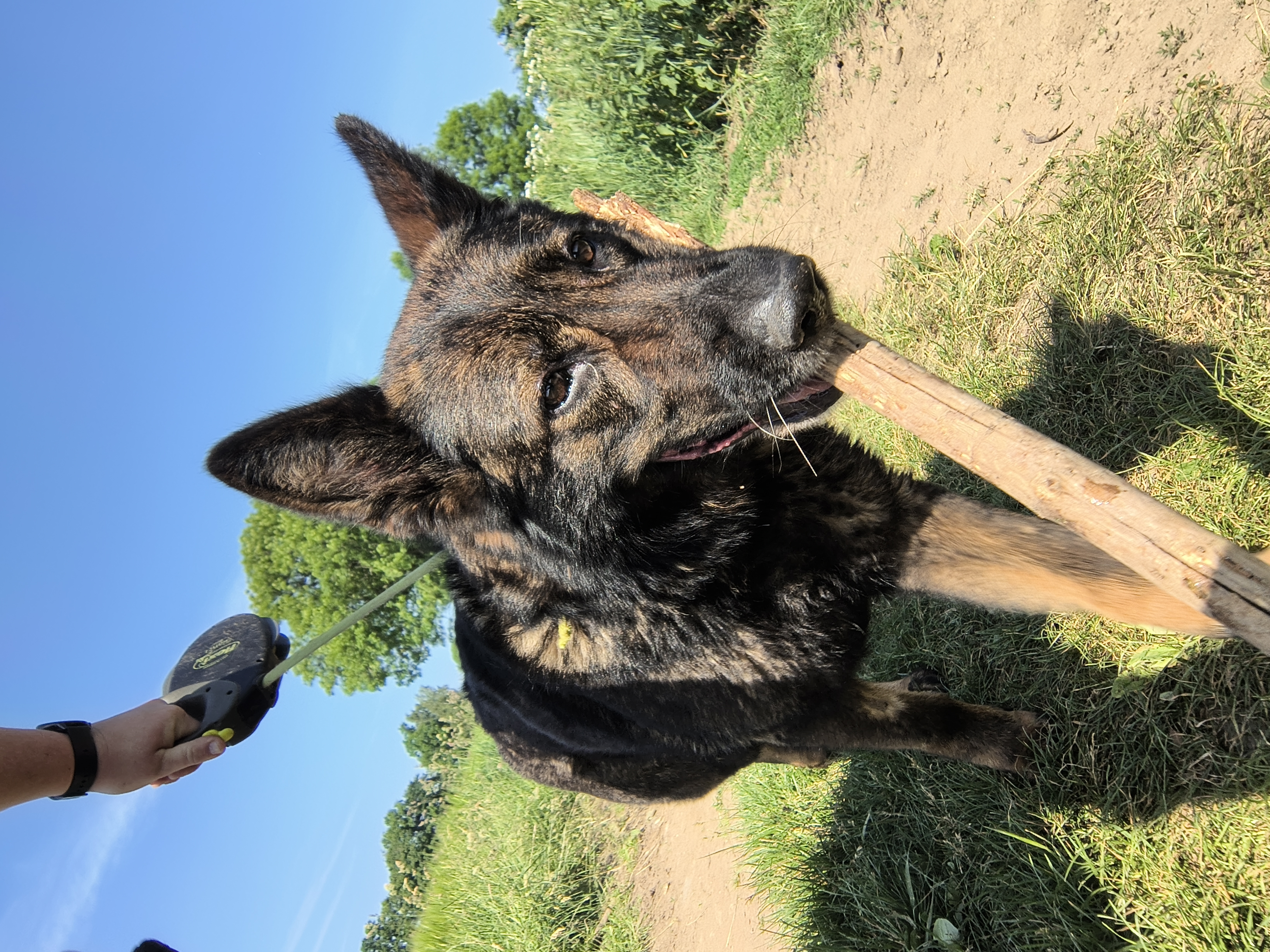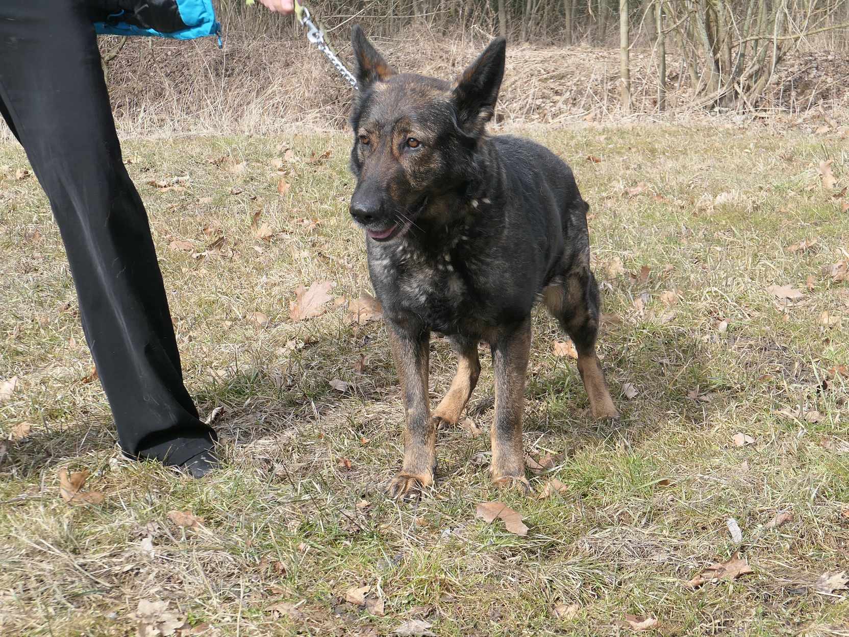V předchozím domově si bohužel navykla řešit stresující situace štěkotem a točením se dokola za ocasem. Venku řešíme chůzí u nohy, čímž se okamžitě přestane točit; doma povelem sedni a odvedením pozornosti.