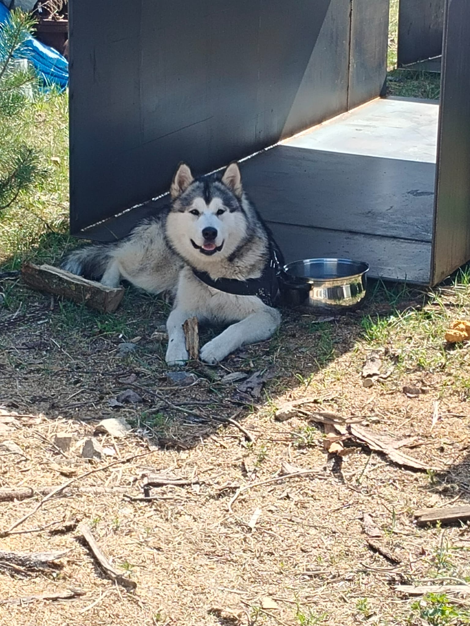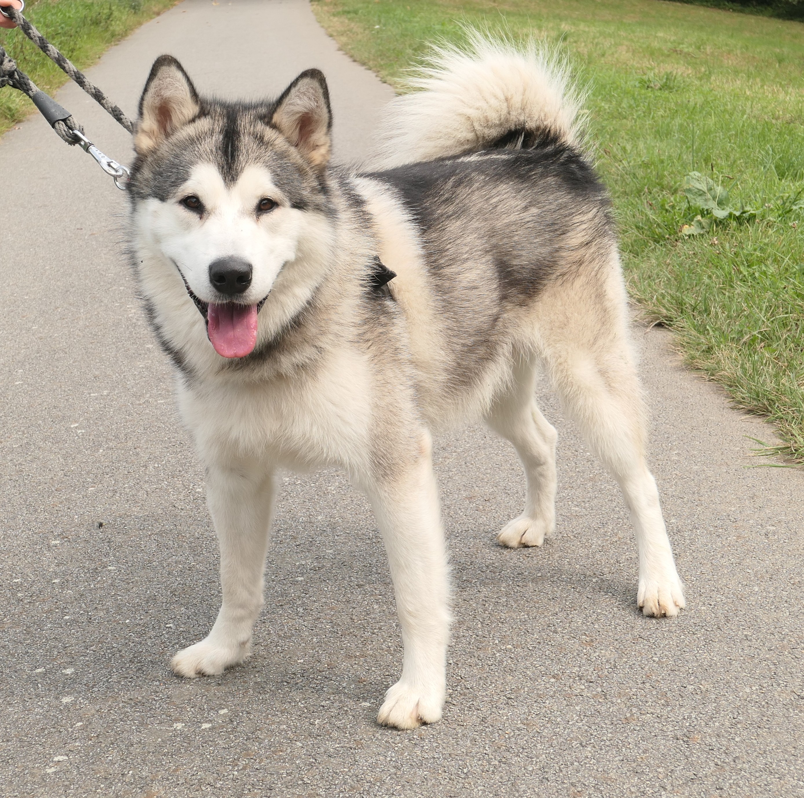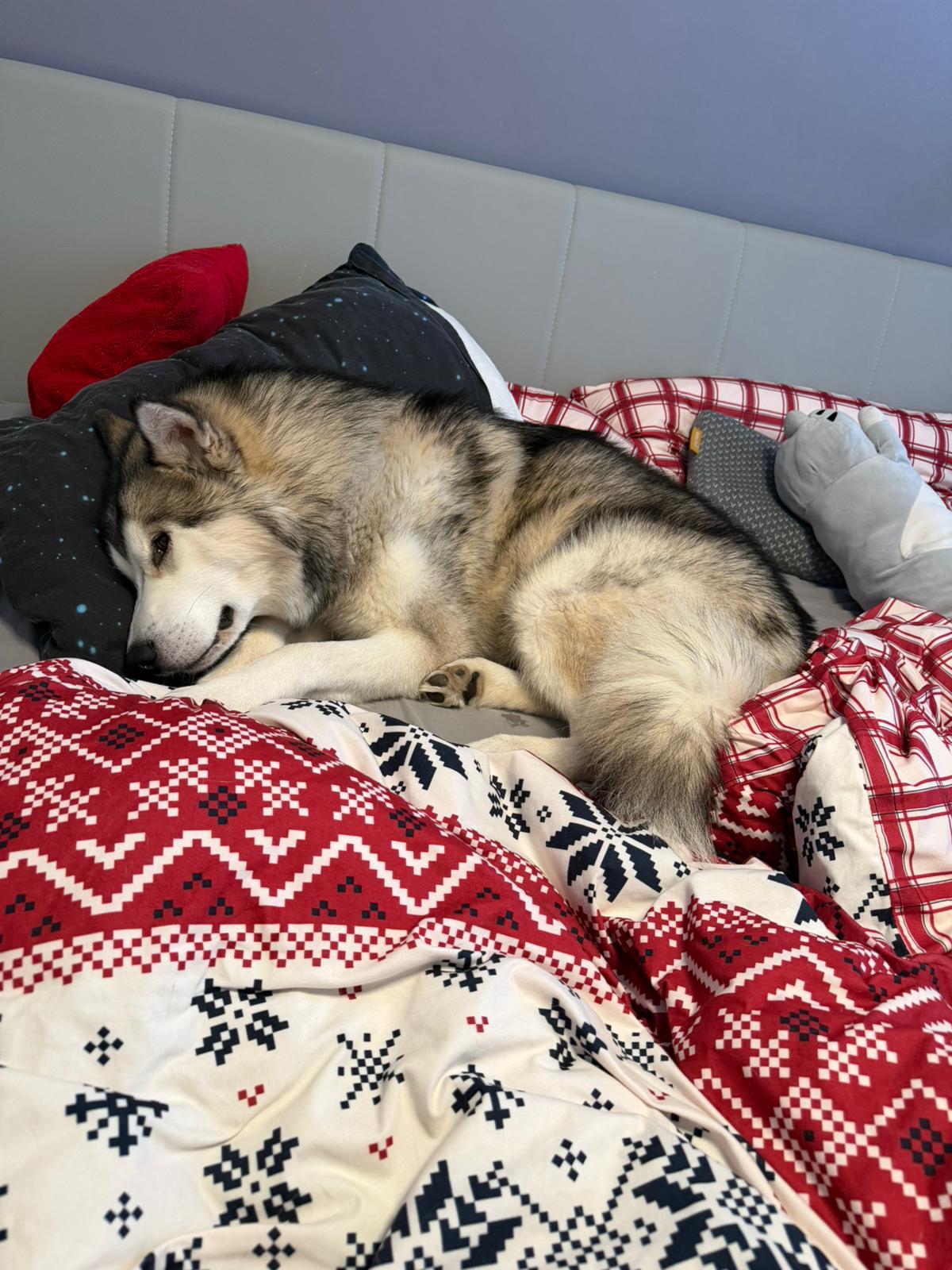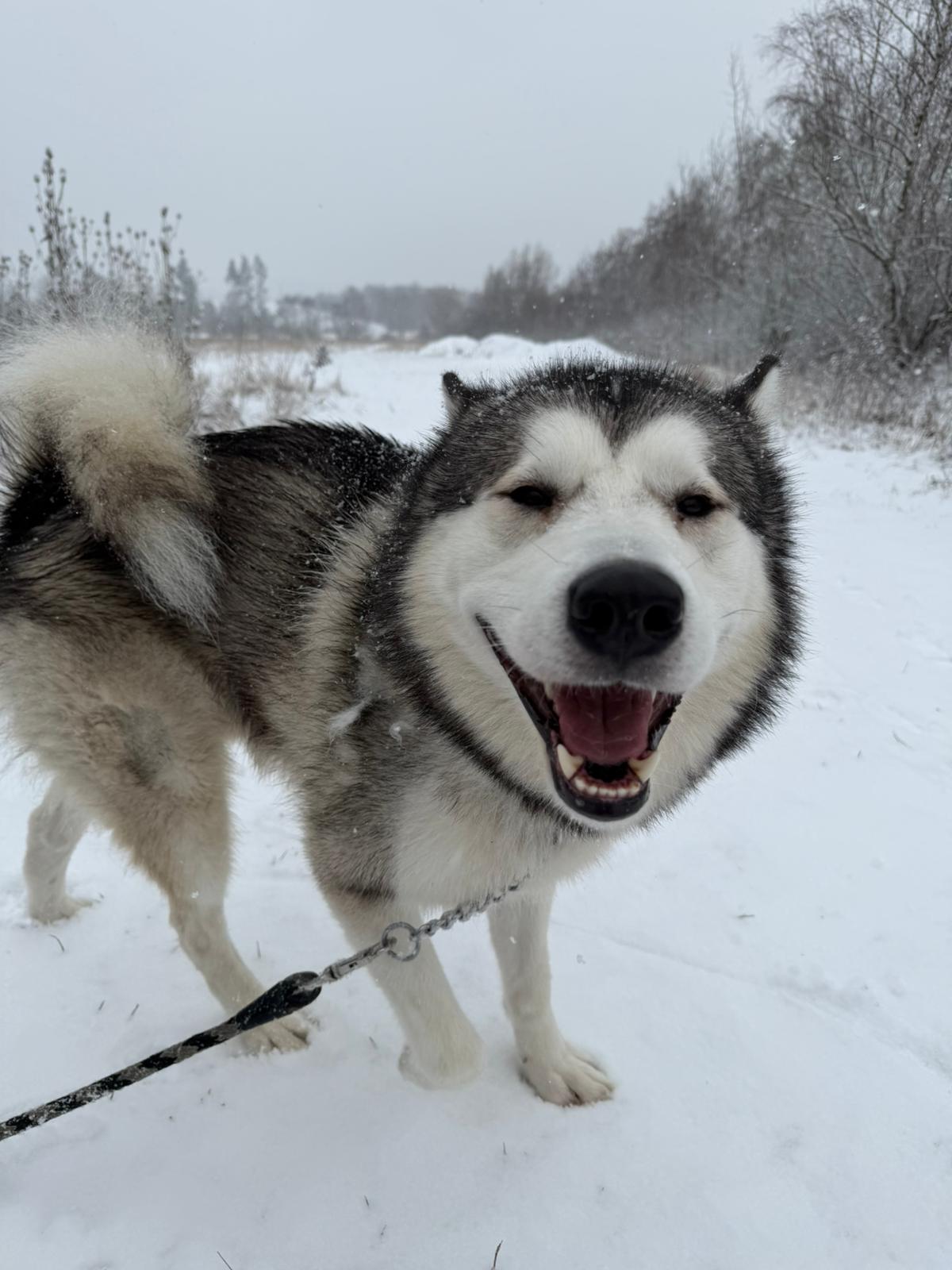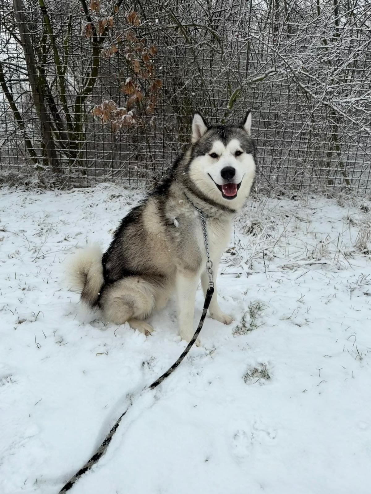 Maxík je roční kříženec aljašského malamuta, váží asi 30 kg. Maxík je velmi přátelský a vítací, má rád lidi a je zvyklý na děti včetně těch maličkých. Mohou mu brát hračky, sahat do misky, řádit s ním….bude šťastný. Maxík je aktivní pes vhodný také do zápřahu. Fenky má moc rád a pejsky si vybírá, ale není v zásadě nepřátelský. Kočičky ignoruje, ale slepice by lovil, stejně tak by prohnal srnky a zajíce. Byl zvyklý s pánem pobývat v lese, kde pán pracoval a naučil ho přivolání na klakson. V bytě je naprosto čistotný, řekne si škrábnutím na dveře, že potřebuje jít ven. Bohužel o samotě vyje a z toho důvodu se jej majitelé musí vzdát.