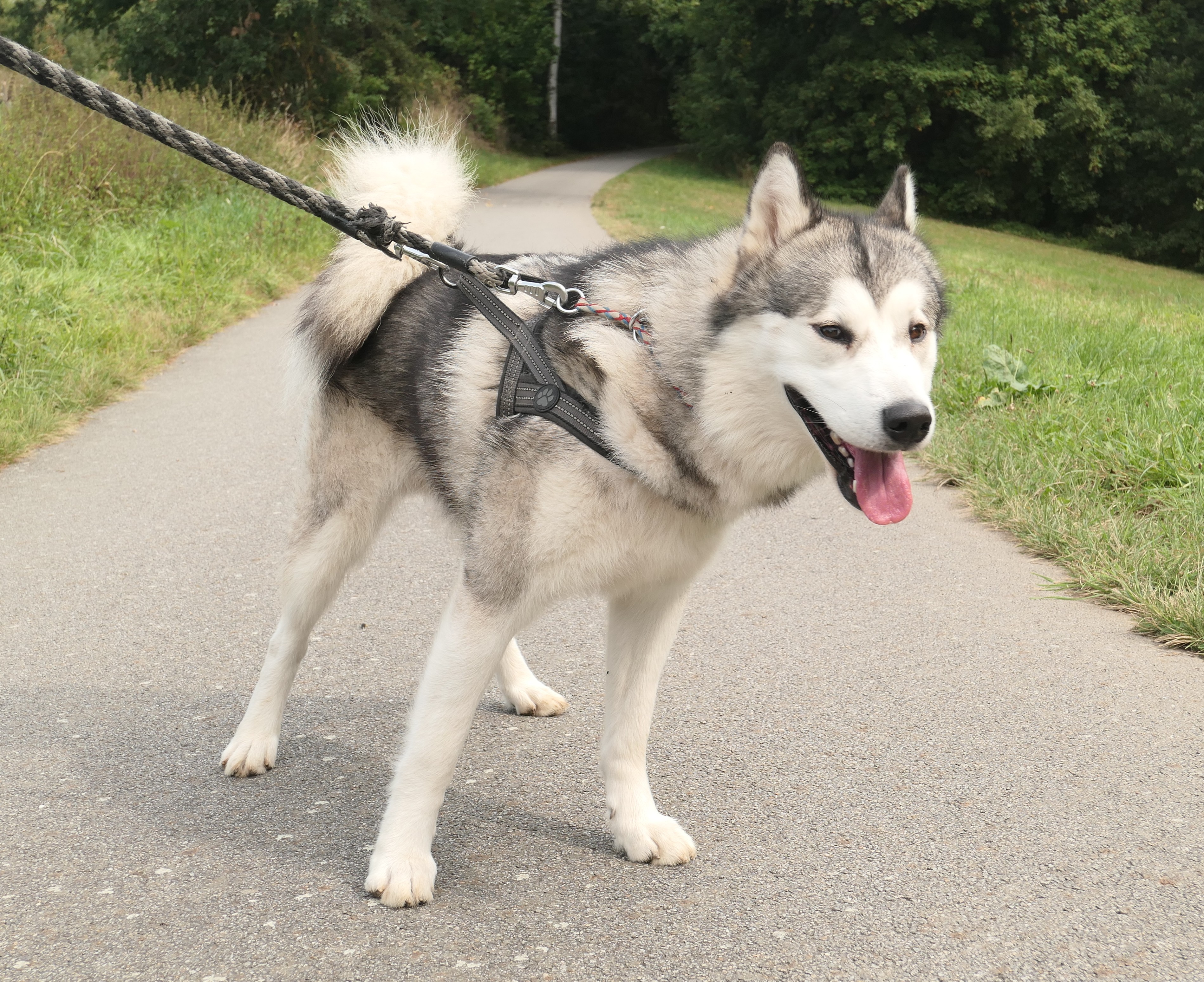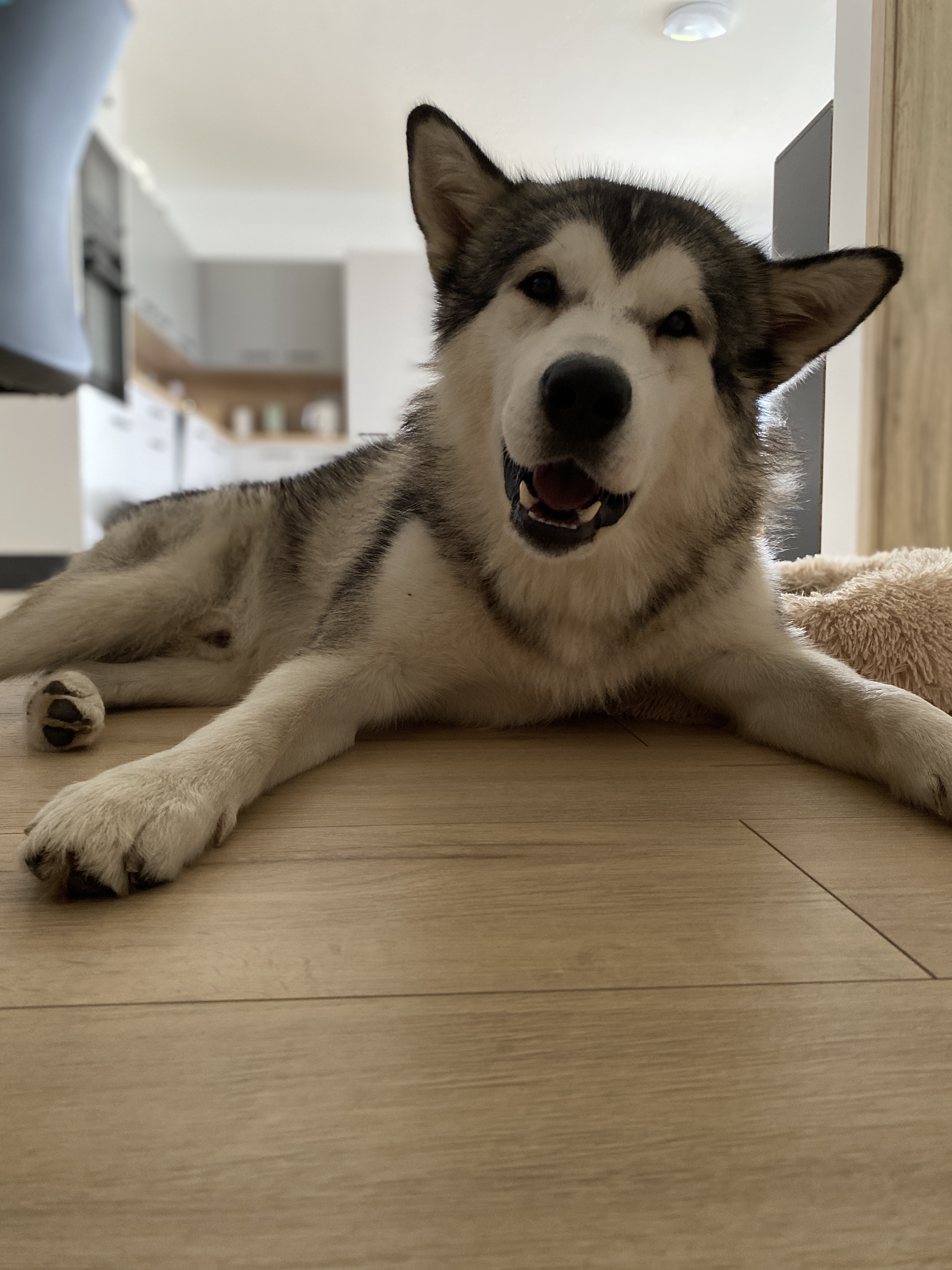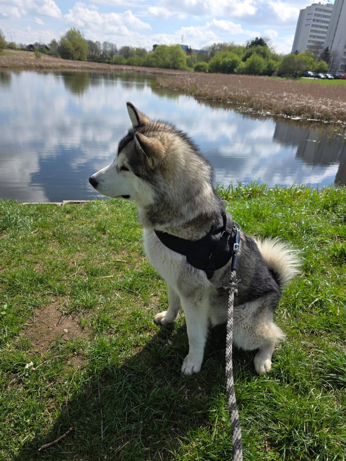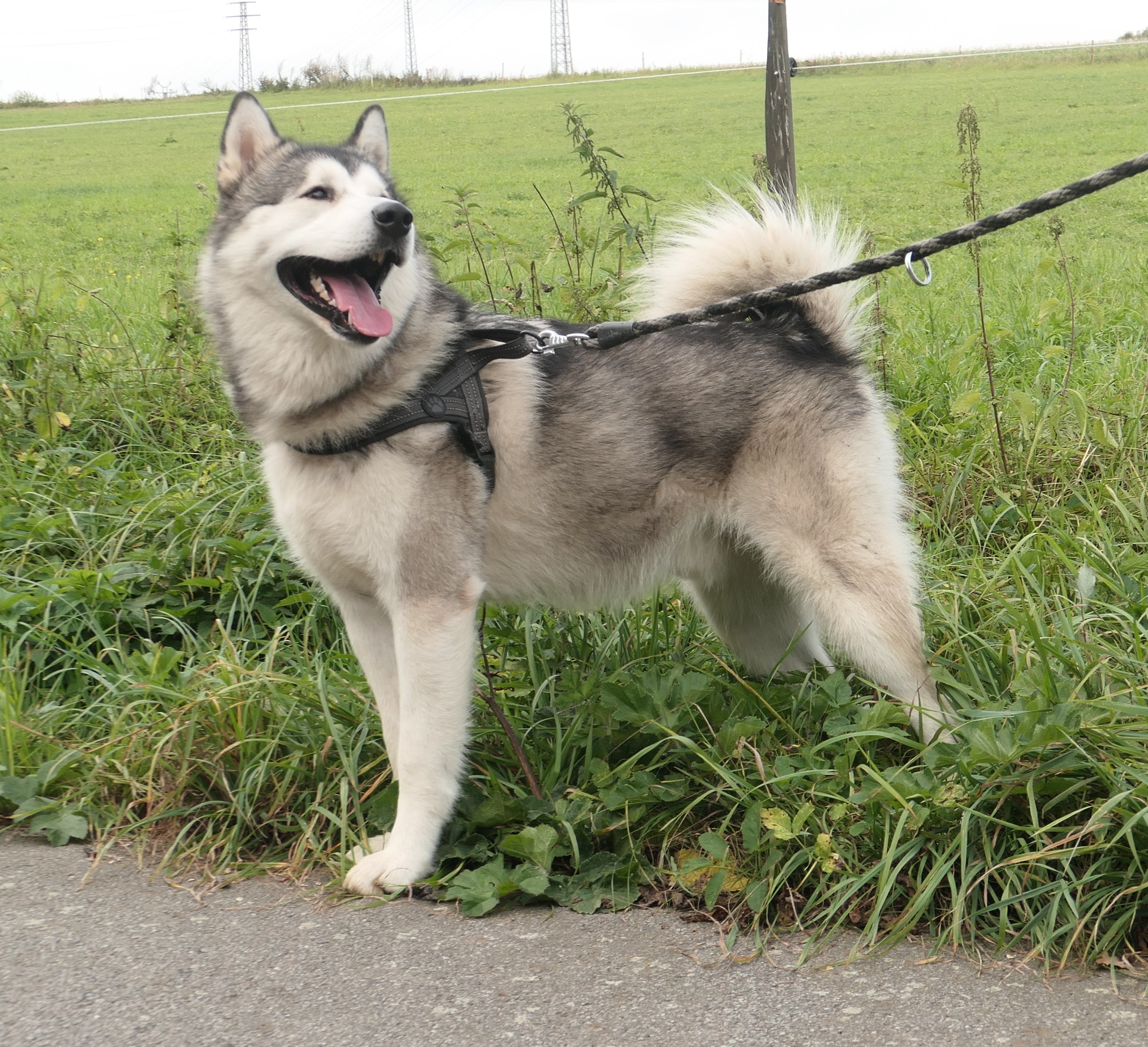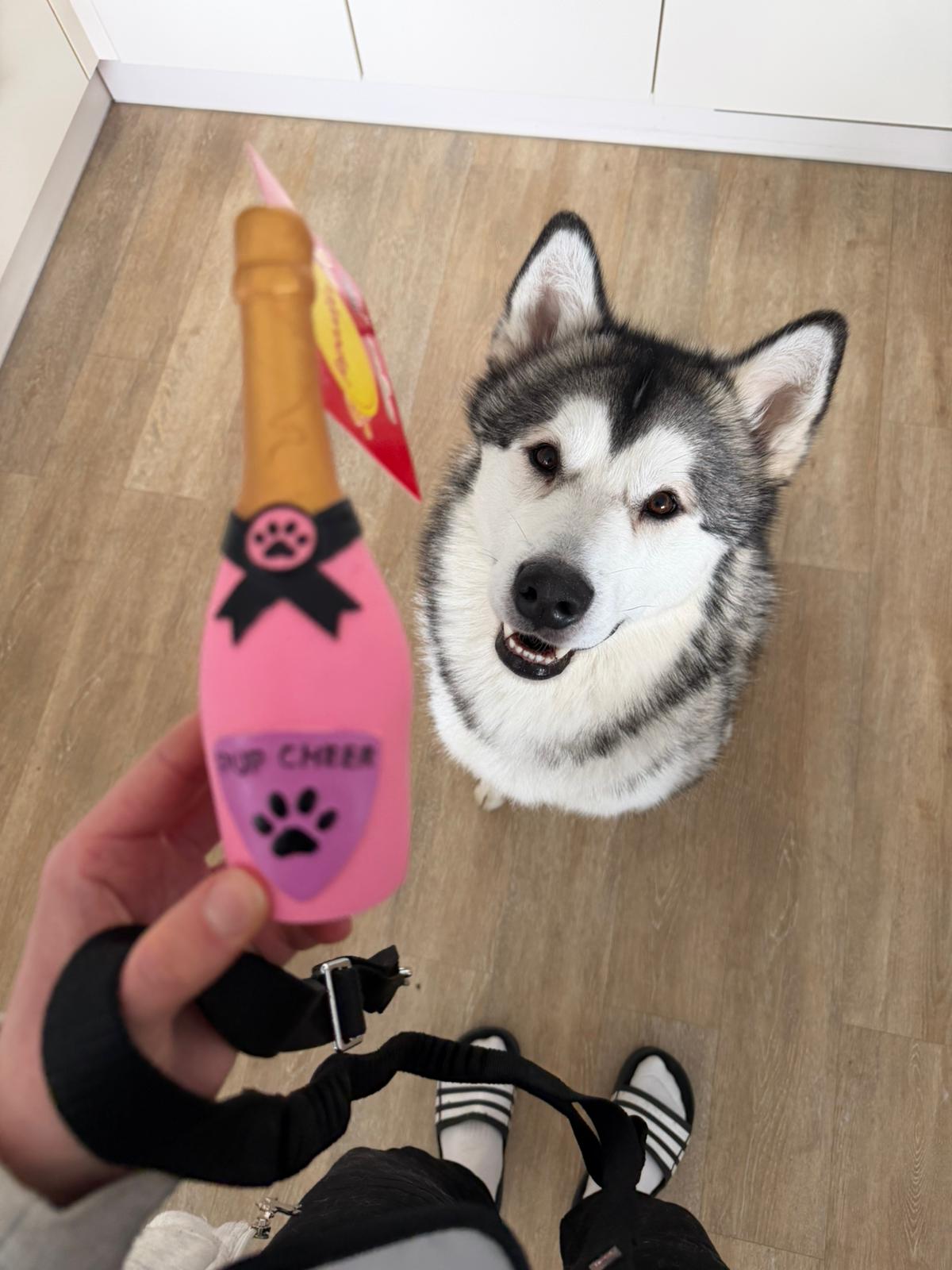 Maxík je roční kříženec aljašského malamuta, váží asi 30 kg. Maxík je velmi přátelský a vítací, má rád lidi a je zvyklý na děti včetně těch maličkých. Mohou mu brát hračky, sahat do misky, řádit s ním….bude šťastný. Maxík je aktivní pes vhodný také do zápřahu. Fenky má moc rád a pejsky si vybírá, ale není v zásadě nepřátelský. Kočičky ignoruje, ale slepice by lovil, stejně tak by prohnal srnky a zajíce. Byl zvyklý s pánem pobývat v lese, kde pán pracoval a naučil ho přivolání na klakson. V bytě je naprosto čistotný, řekne si škrábnutím na dveře, že potřebuje jít ven. Bohužel o samotě vyje a z toho důvodu se jej majitelé musí vzdát.